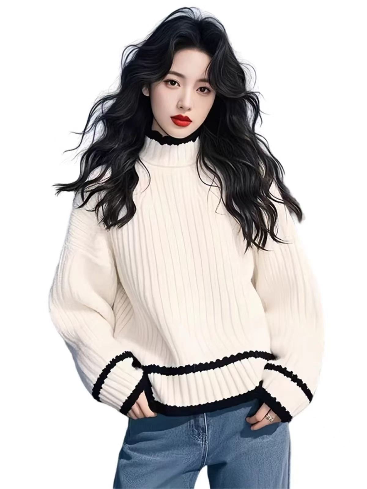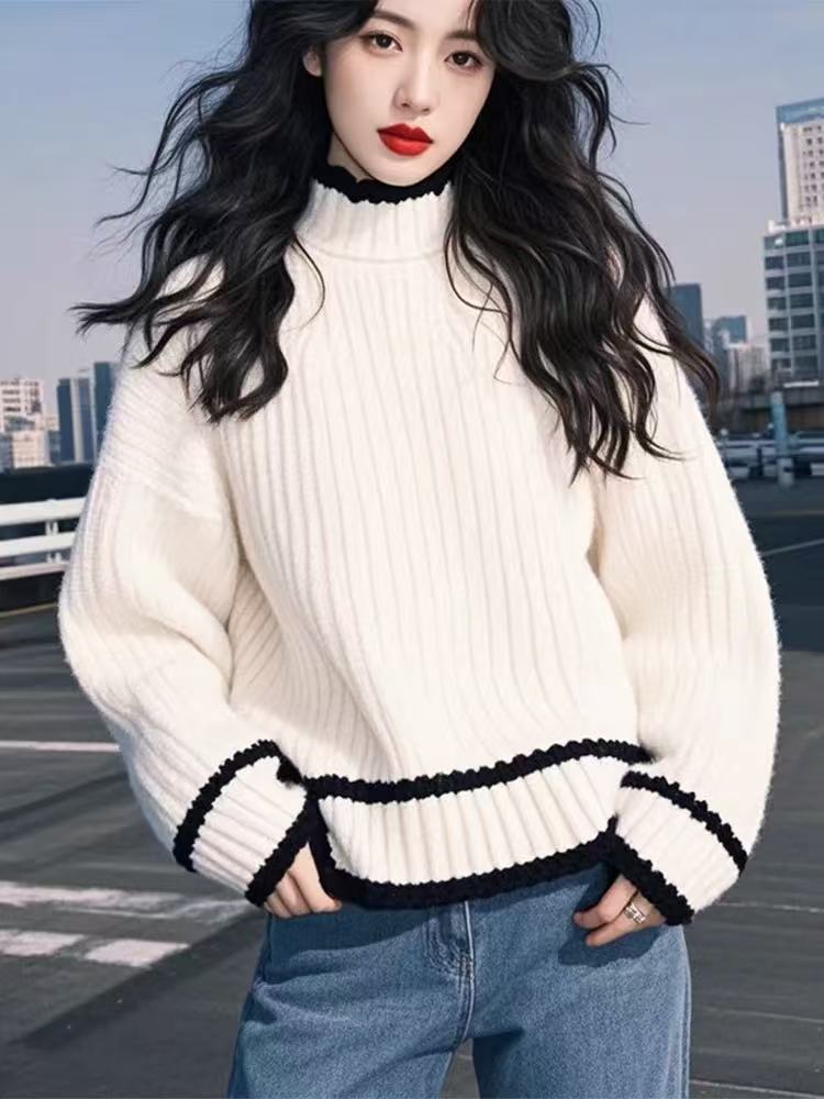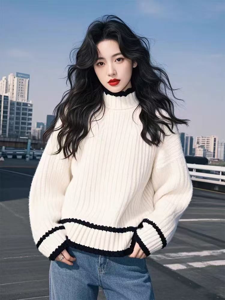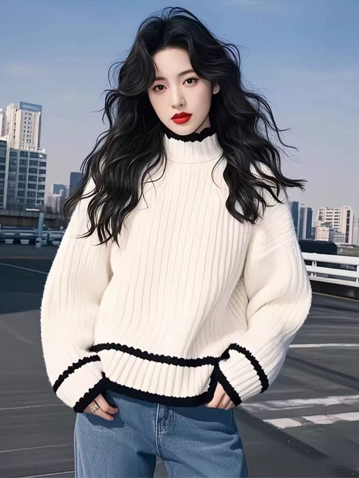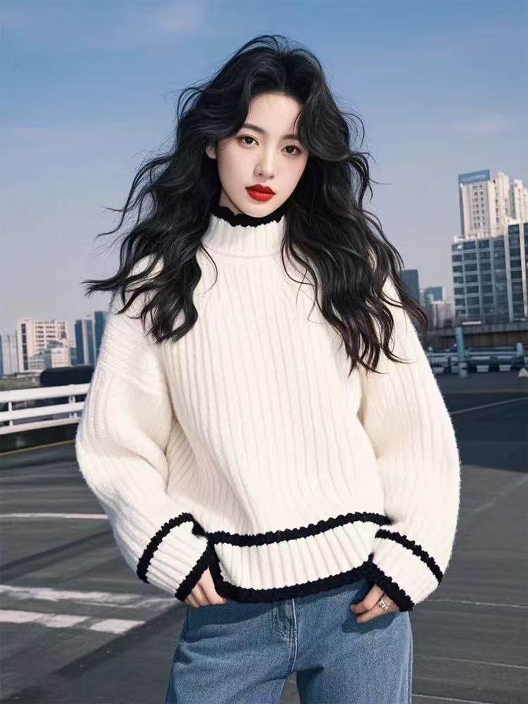 慵懒高级感超好看上衣韩系穿搭奶呼呼软糯白色高领针织毛衣女冬季