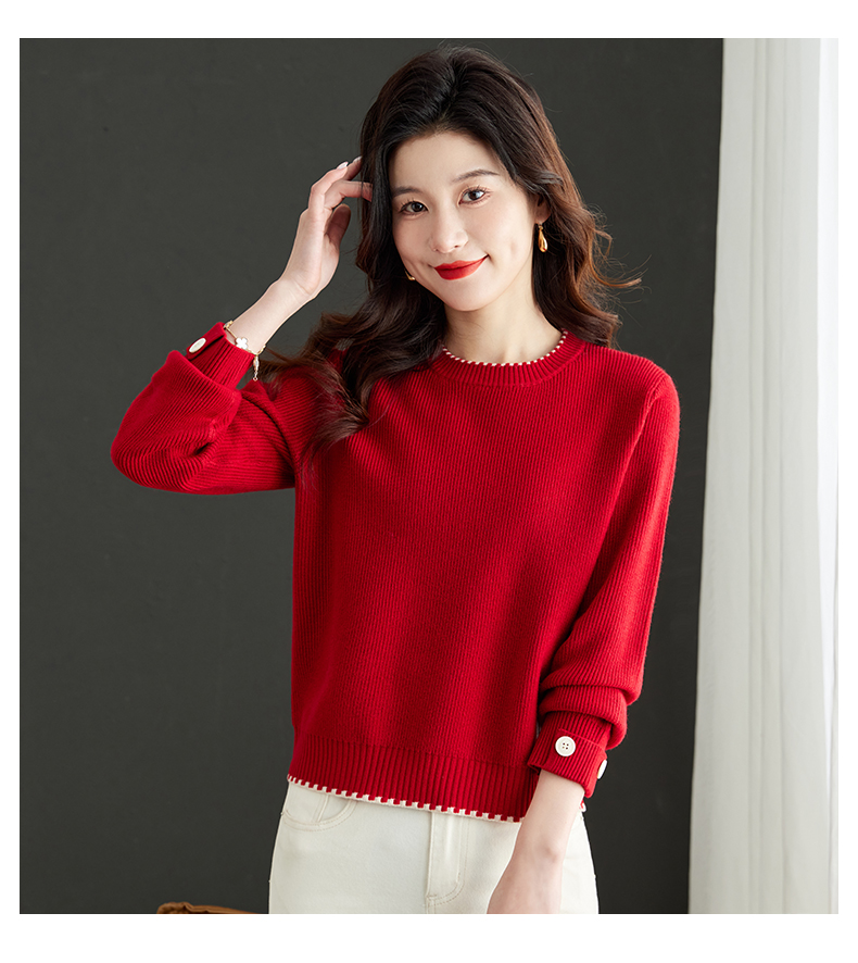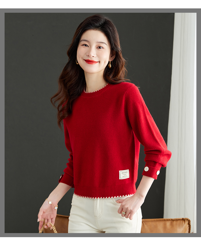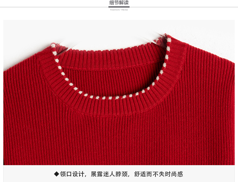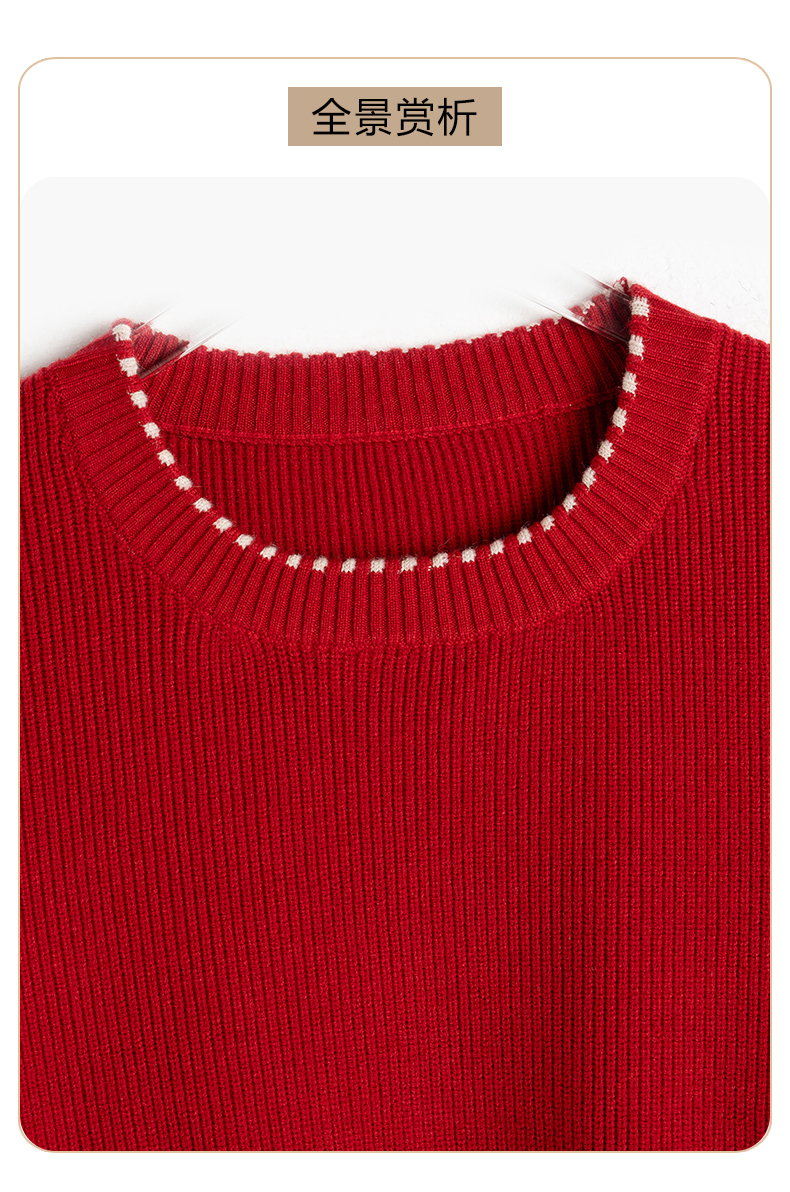 小个子羊毛衫女士红色毛衣时尚百搭圆领针织打底羊绒衫