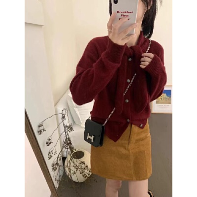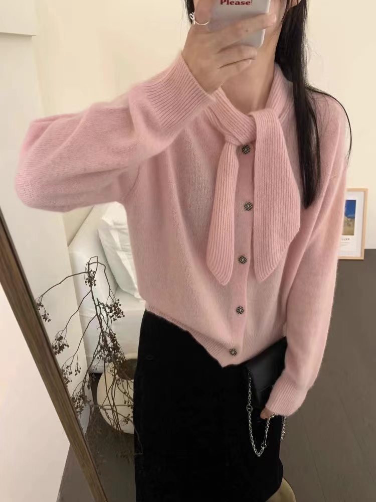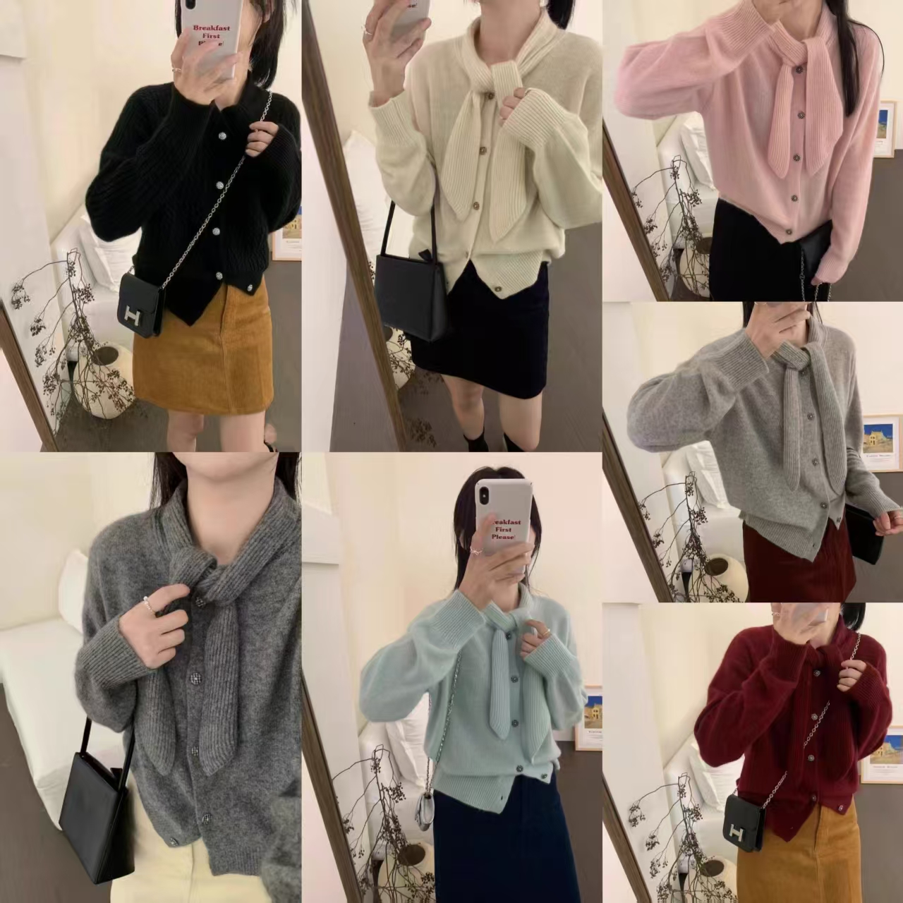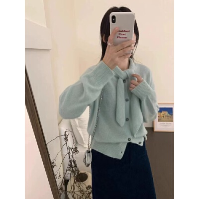 东大门灰色假两件领带针织衫外套女毛衣开衫上衣