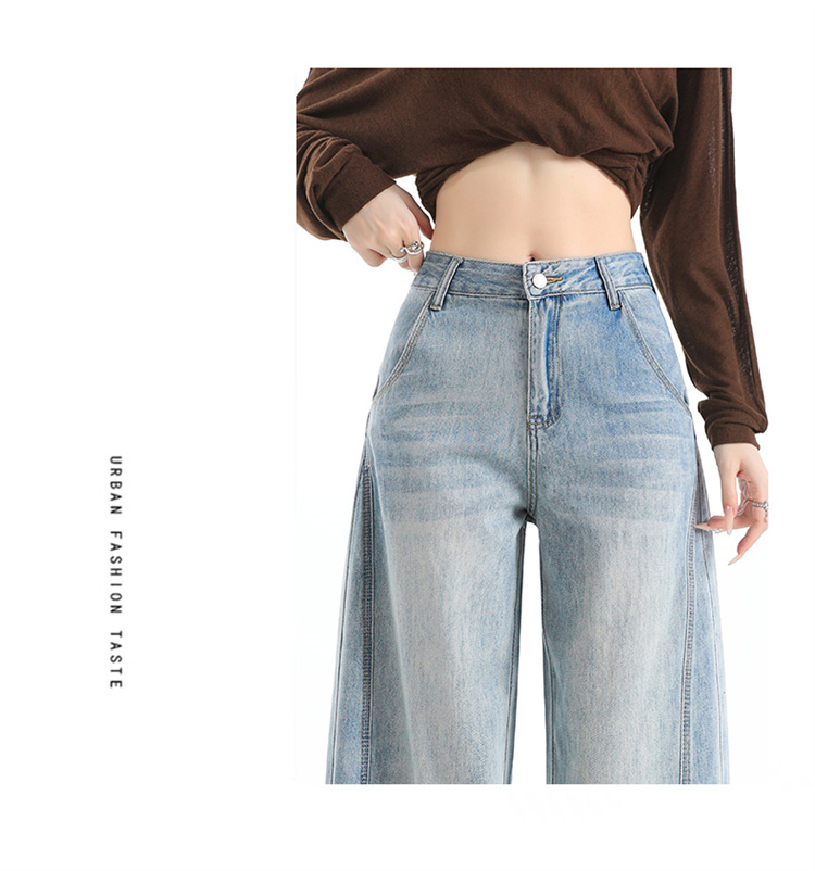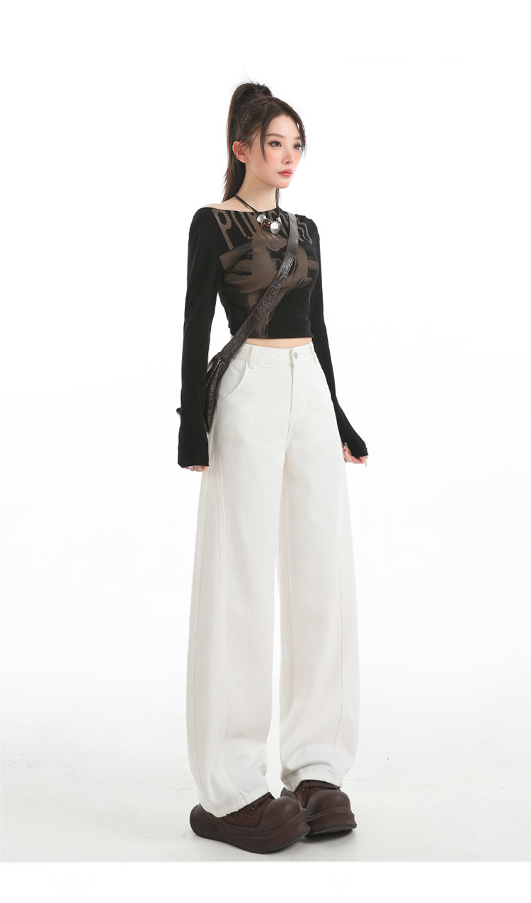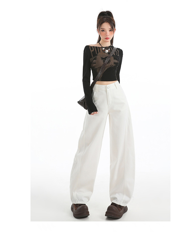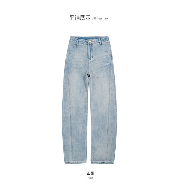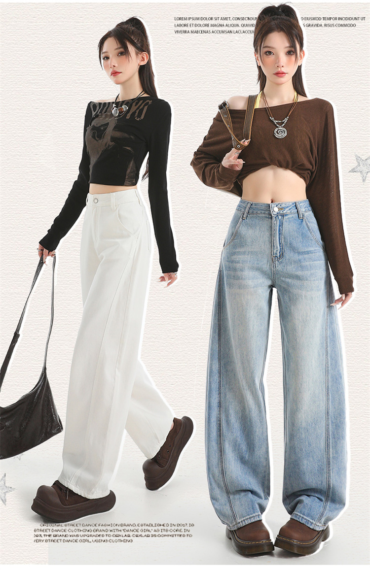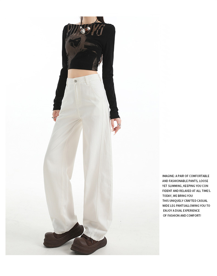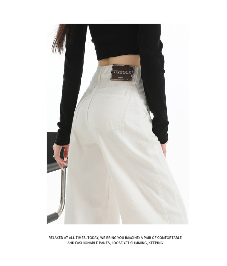 实拍2025秋新款米白棉质高腰纯色显瘦通勤牛仔裤女柔软百搭弯刀裤