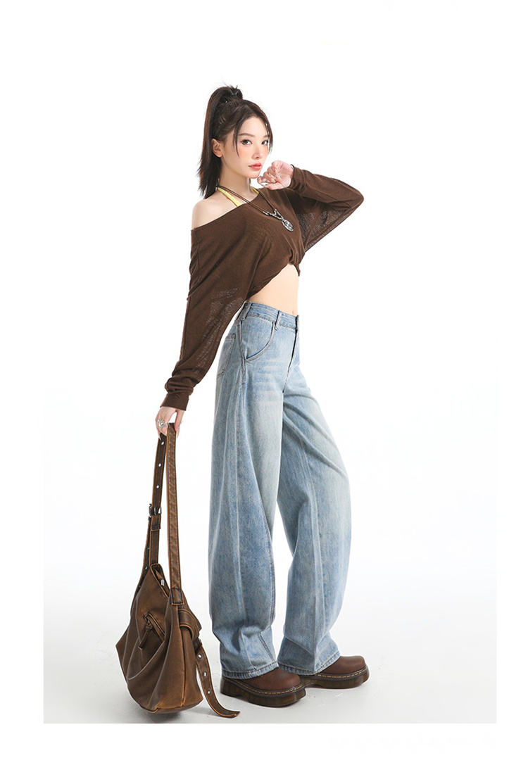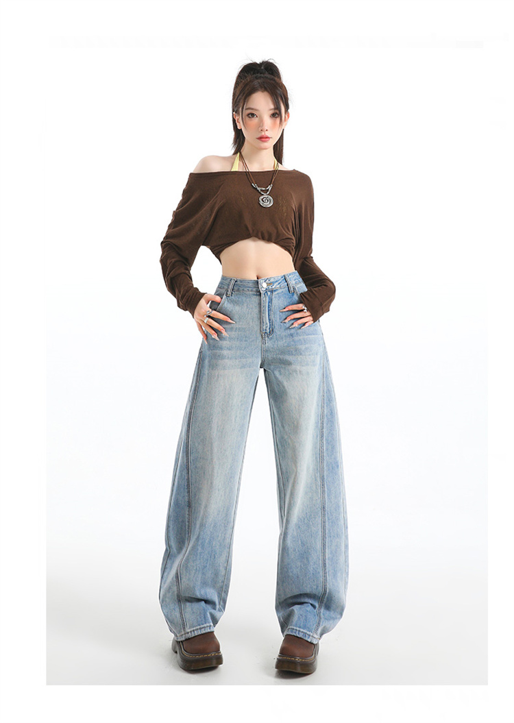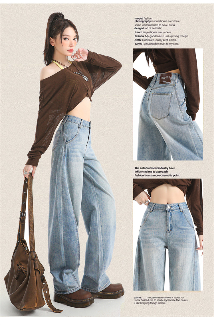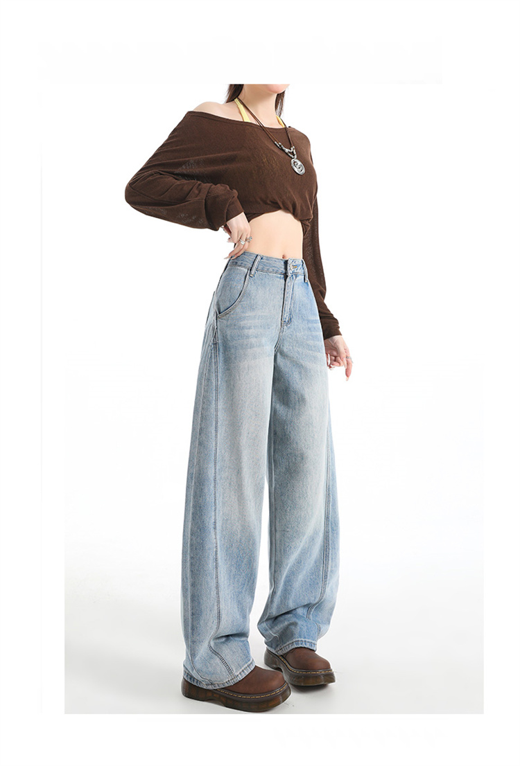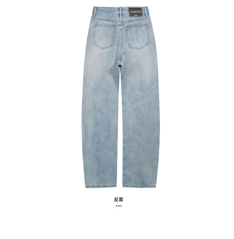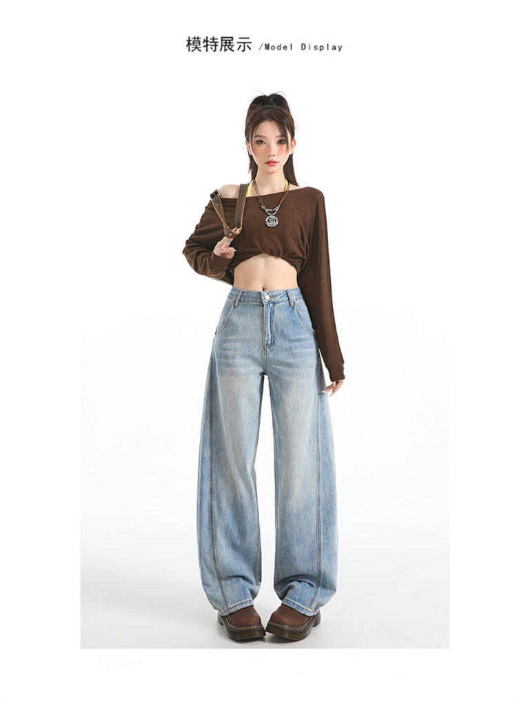 实拍2025秋新款米白棉质高腰纯色显瘦通勤牛仔裤女柔软百搭弯刀裤