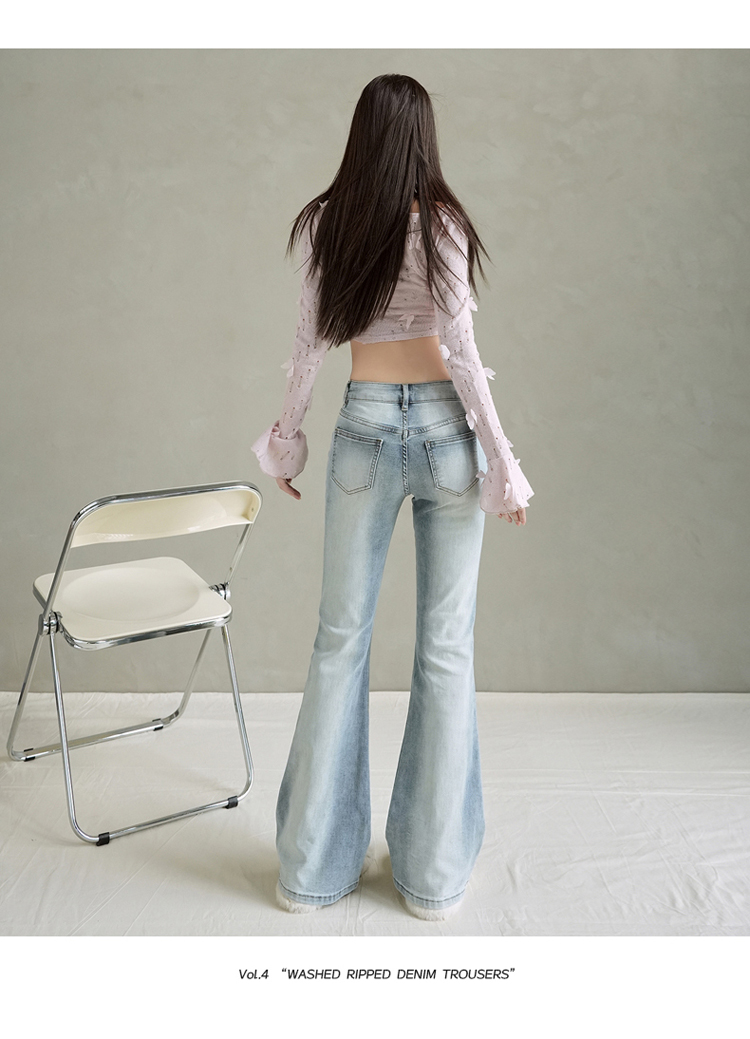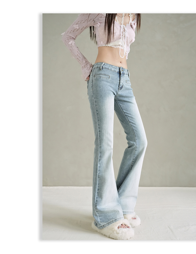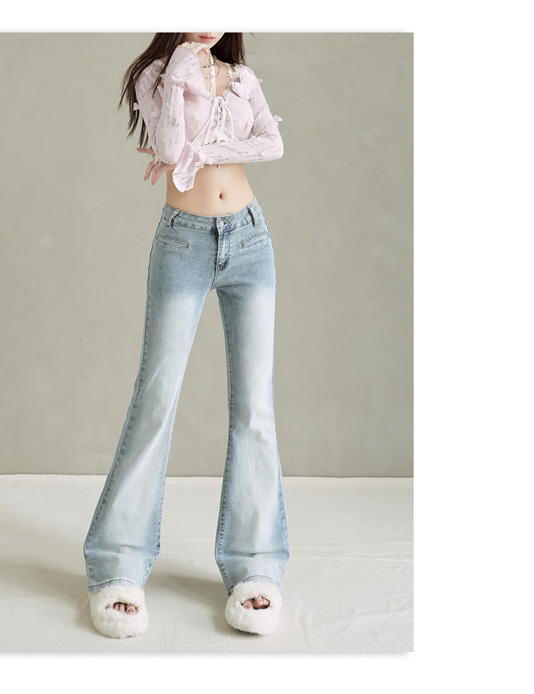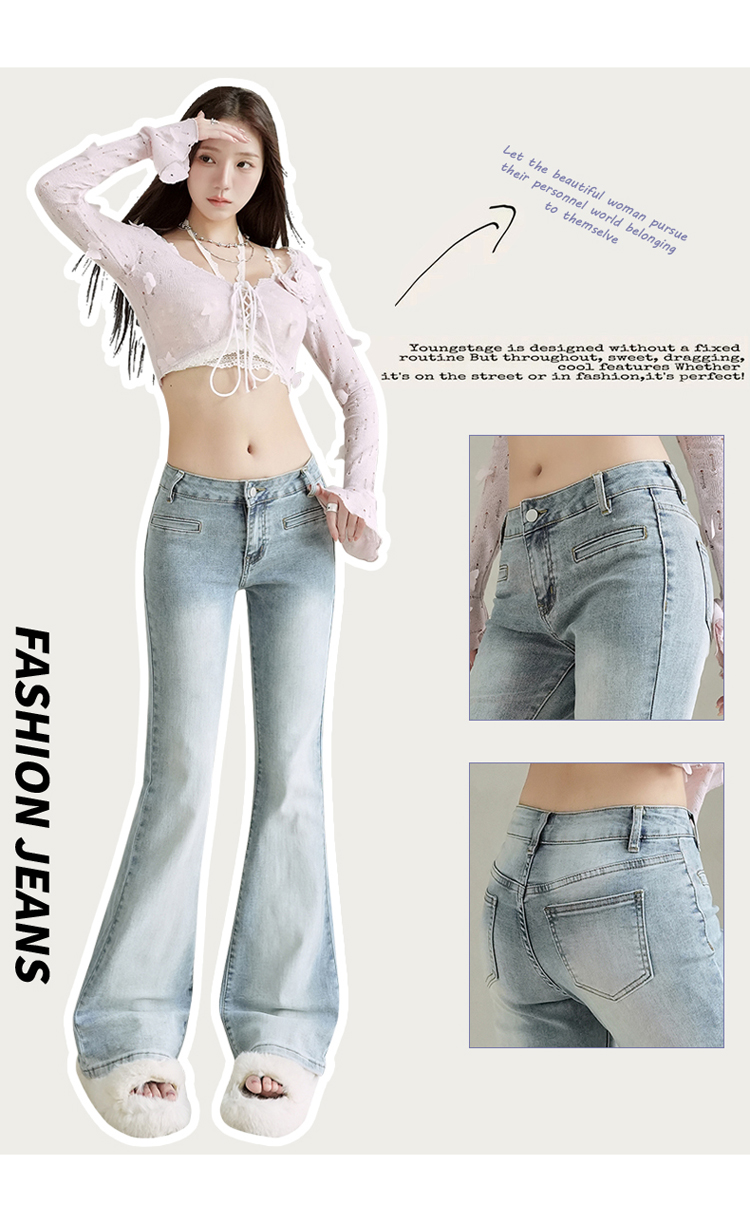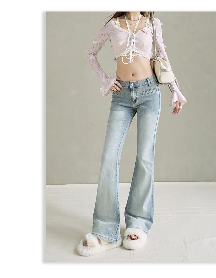 实拍美式复古低腰辣妹喇叭裤百搭显瘦牛仔裤女初秋新款&长裤加长