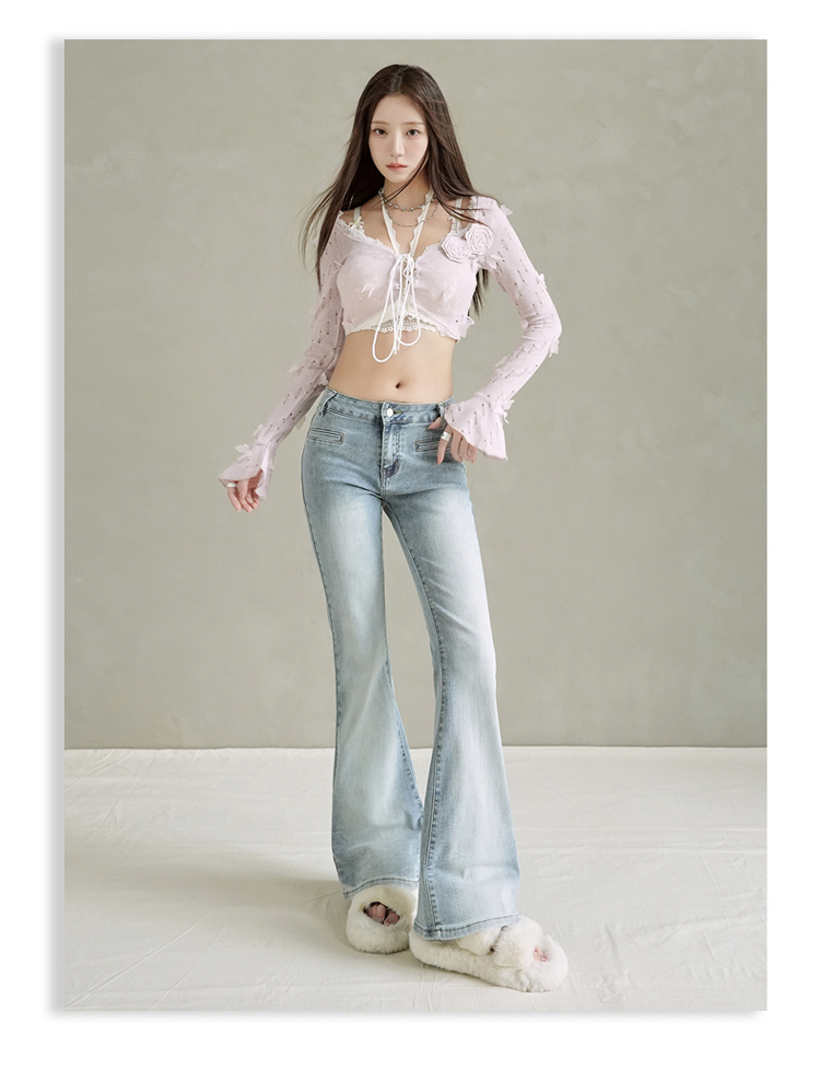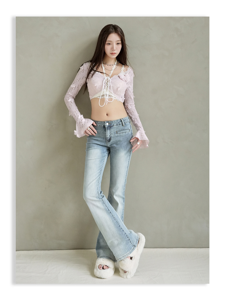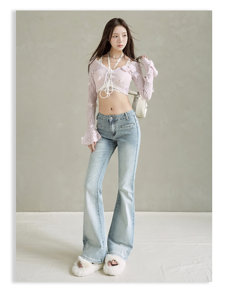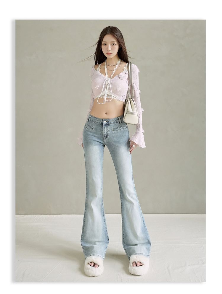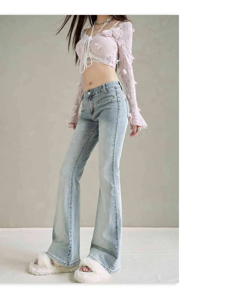 实拍美式复古低腰辣妹喇叭裤百搭显瘦牛仔裤女初秋新款&长裤加长