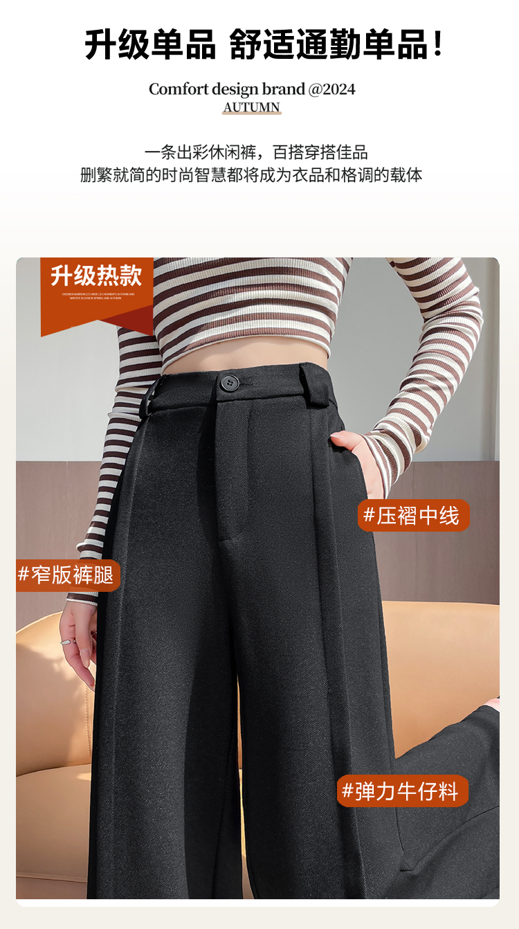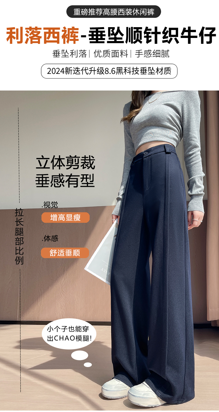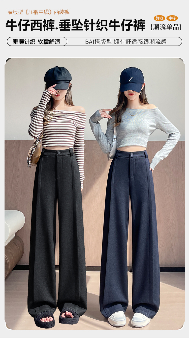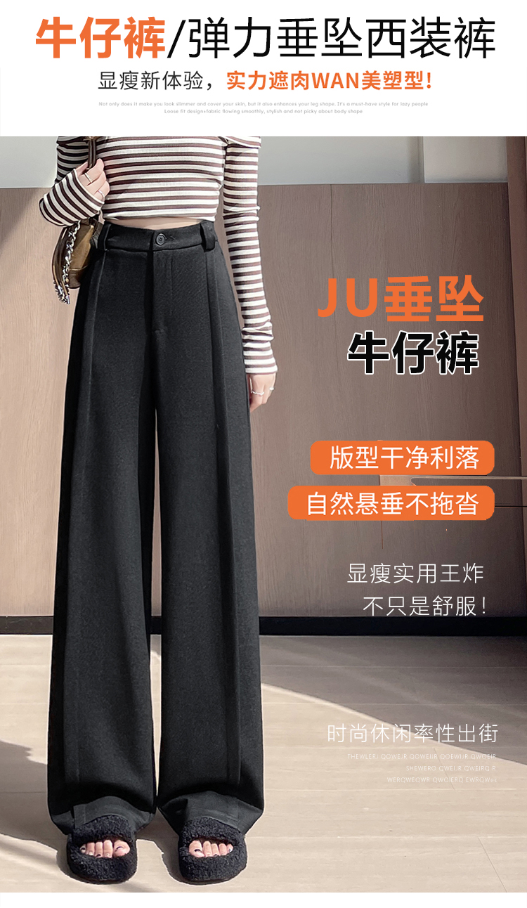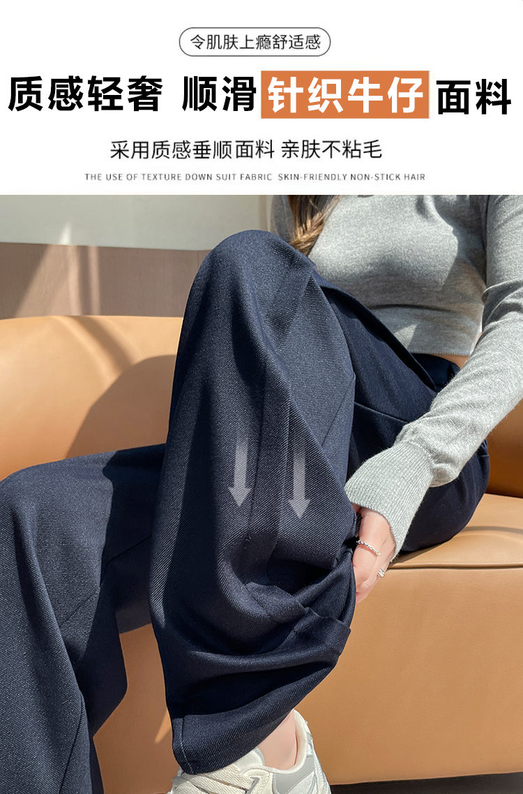 实拍#西装裤高级感垂感直筒牛仔阔腿裤女宽松慵懒风窄版休闲西裤
