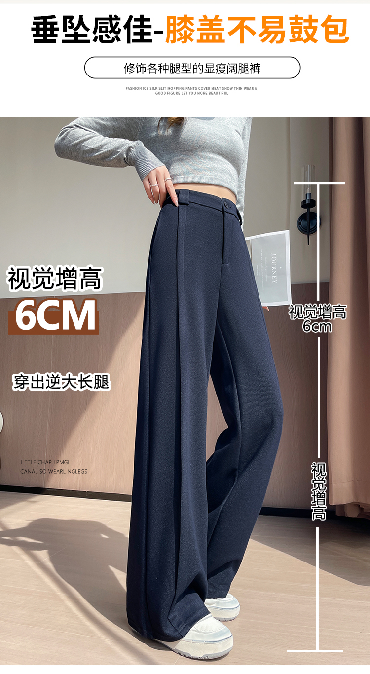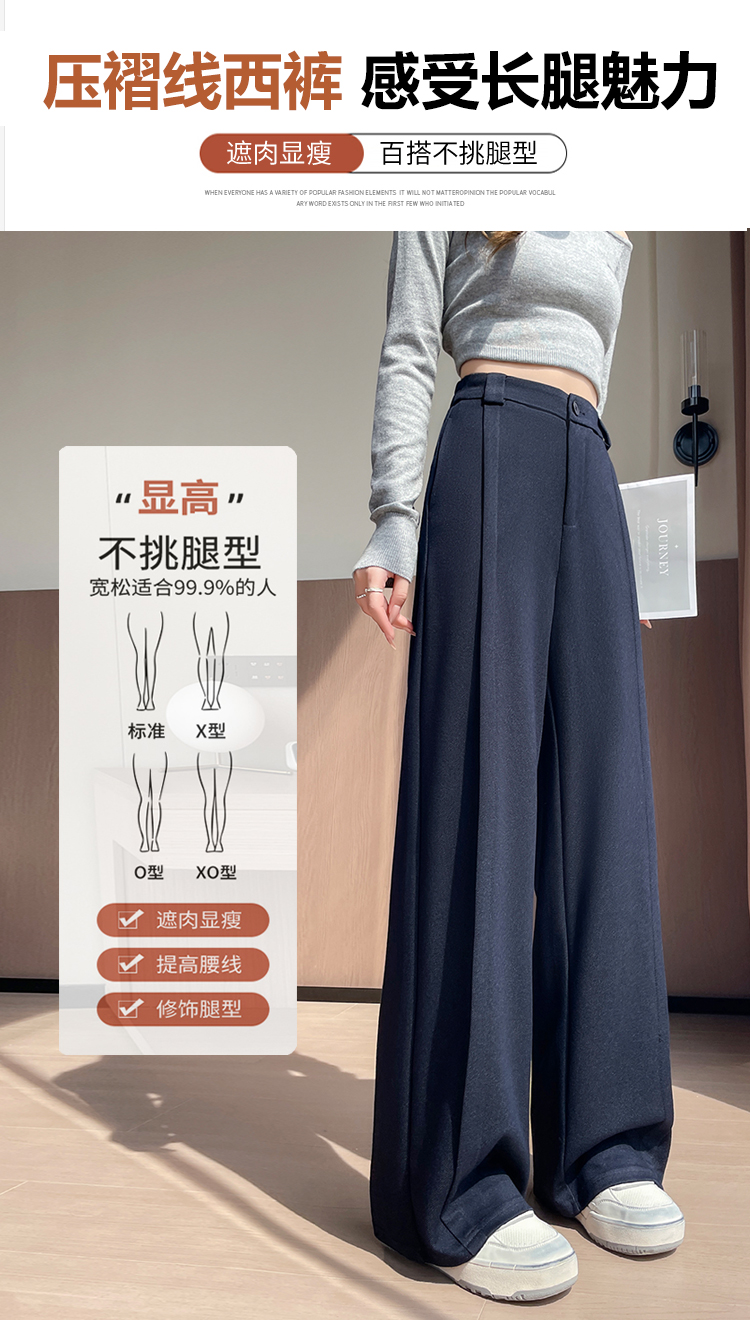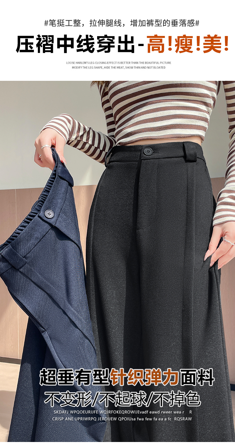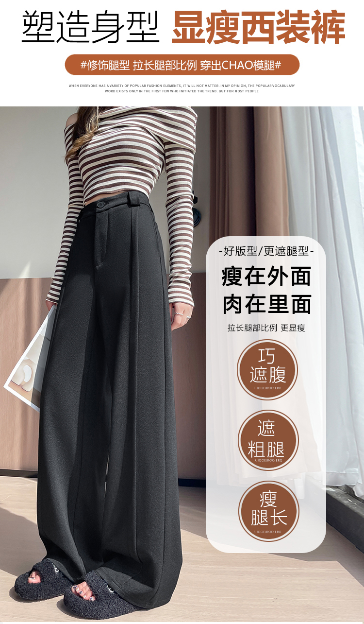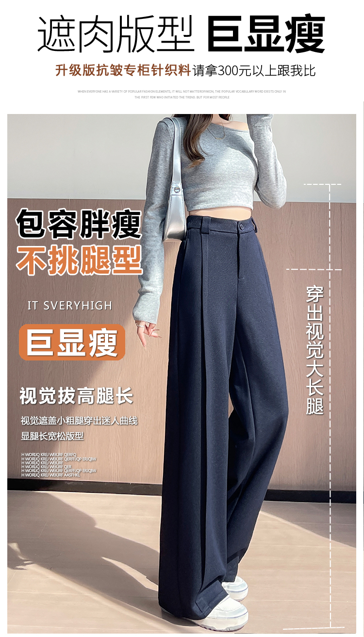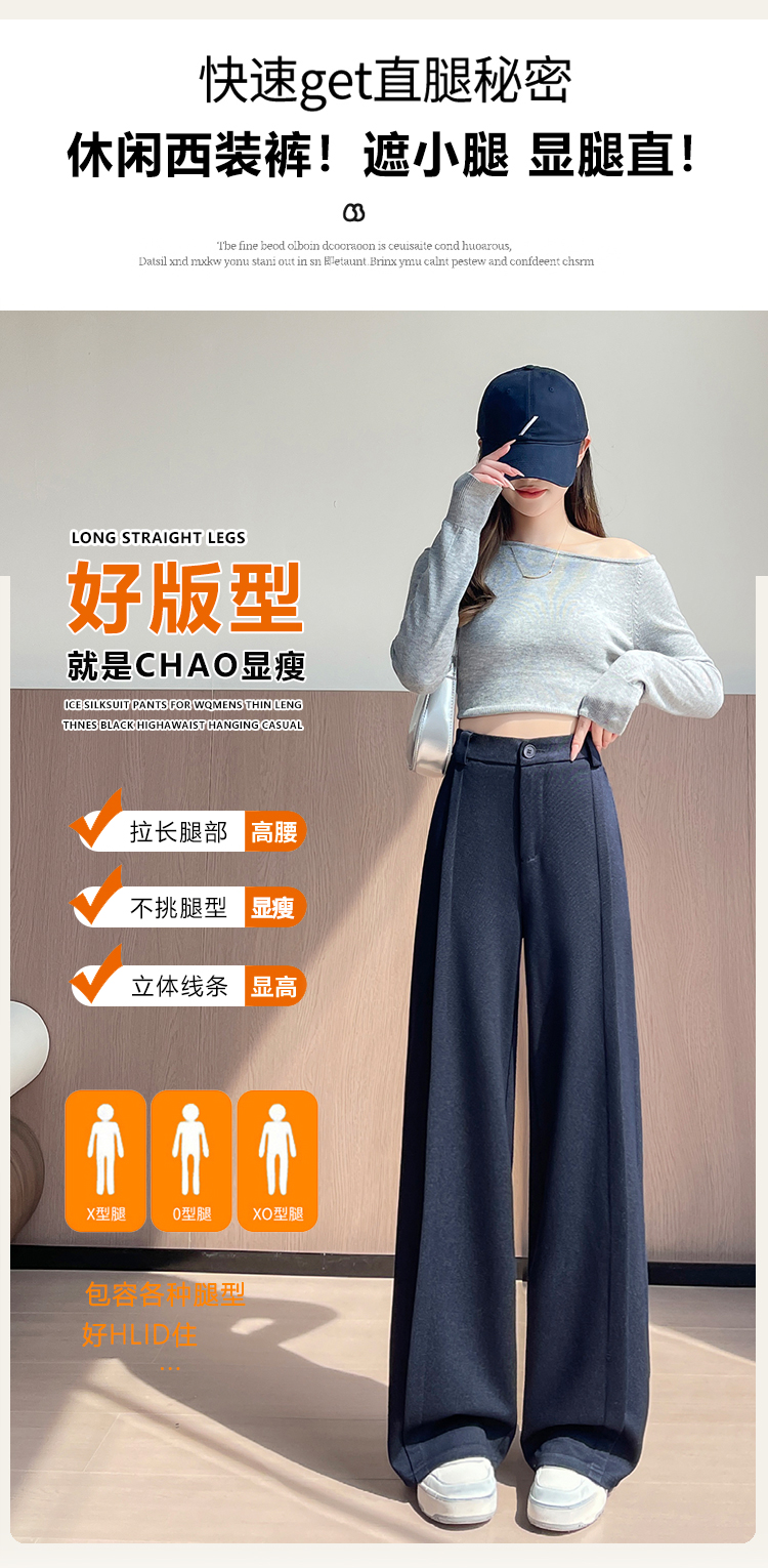 实拍#西装裤高级感垂感直筒牛仔阔腿裤女宽松慵懒风窄版休闲西裤