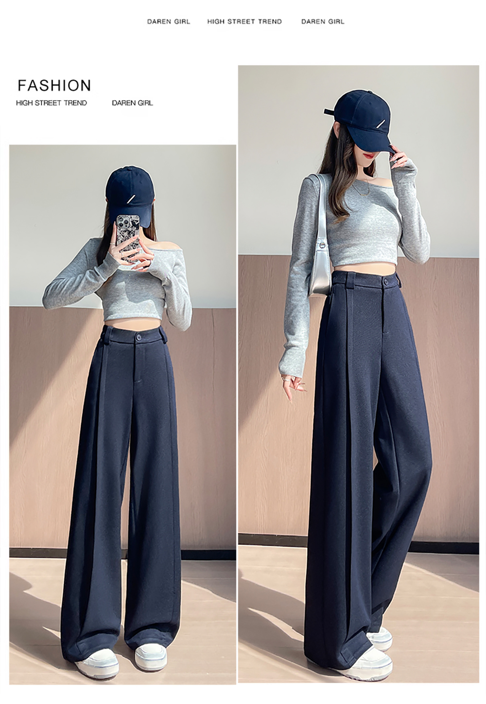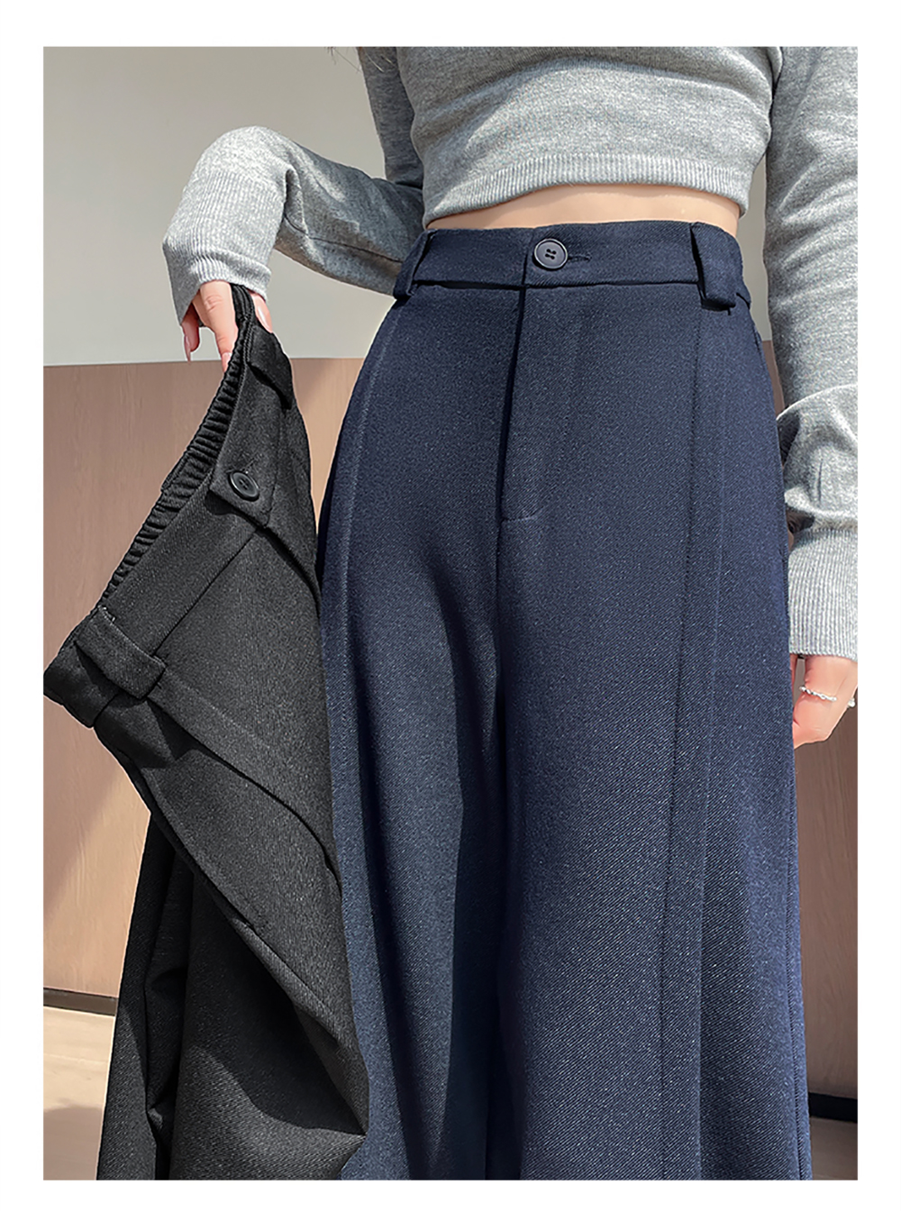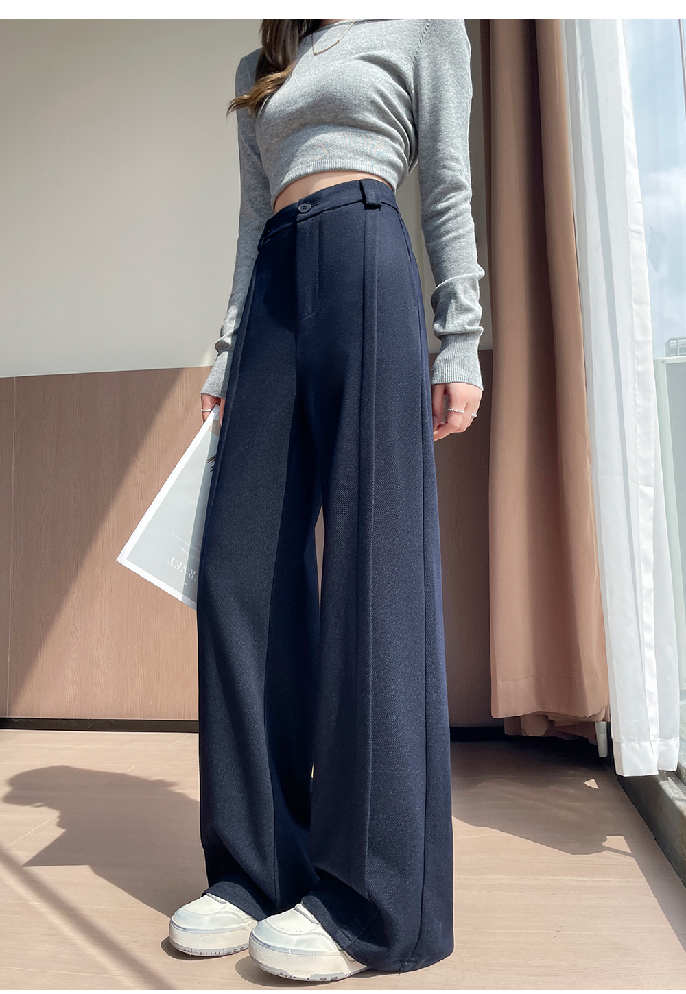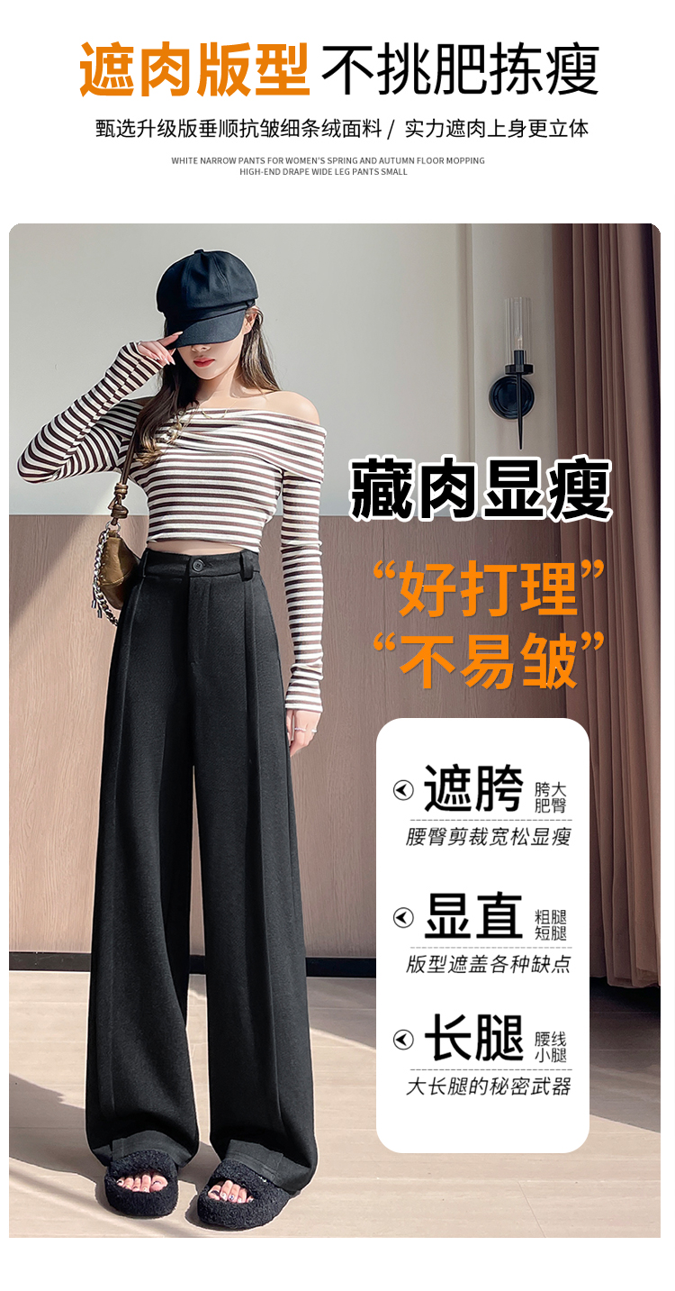 实拍#西装裤高级感垂感直筒牛仔阔腿裤女宽松慵懒风窄版休闲西裤