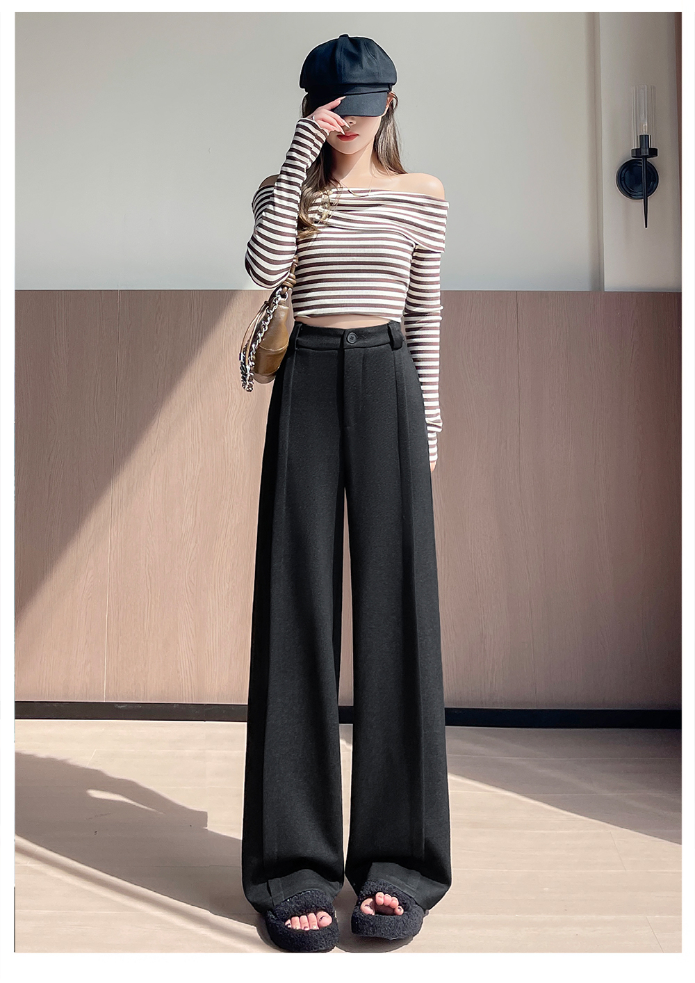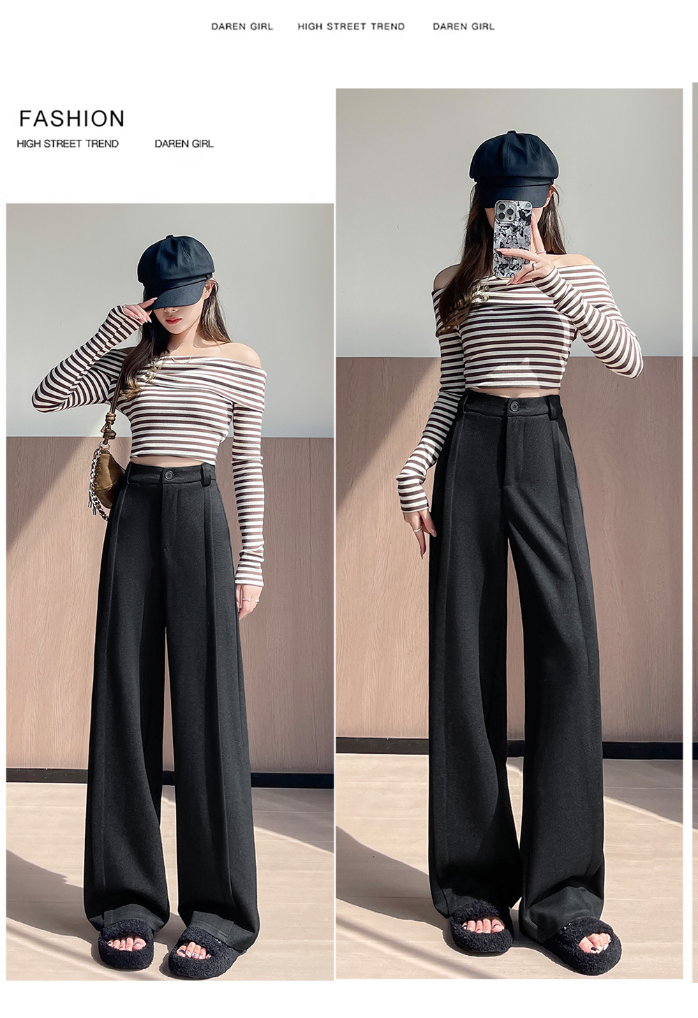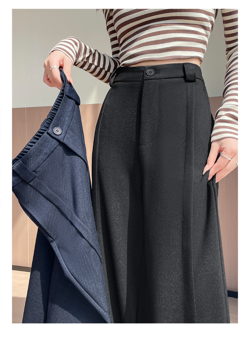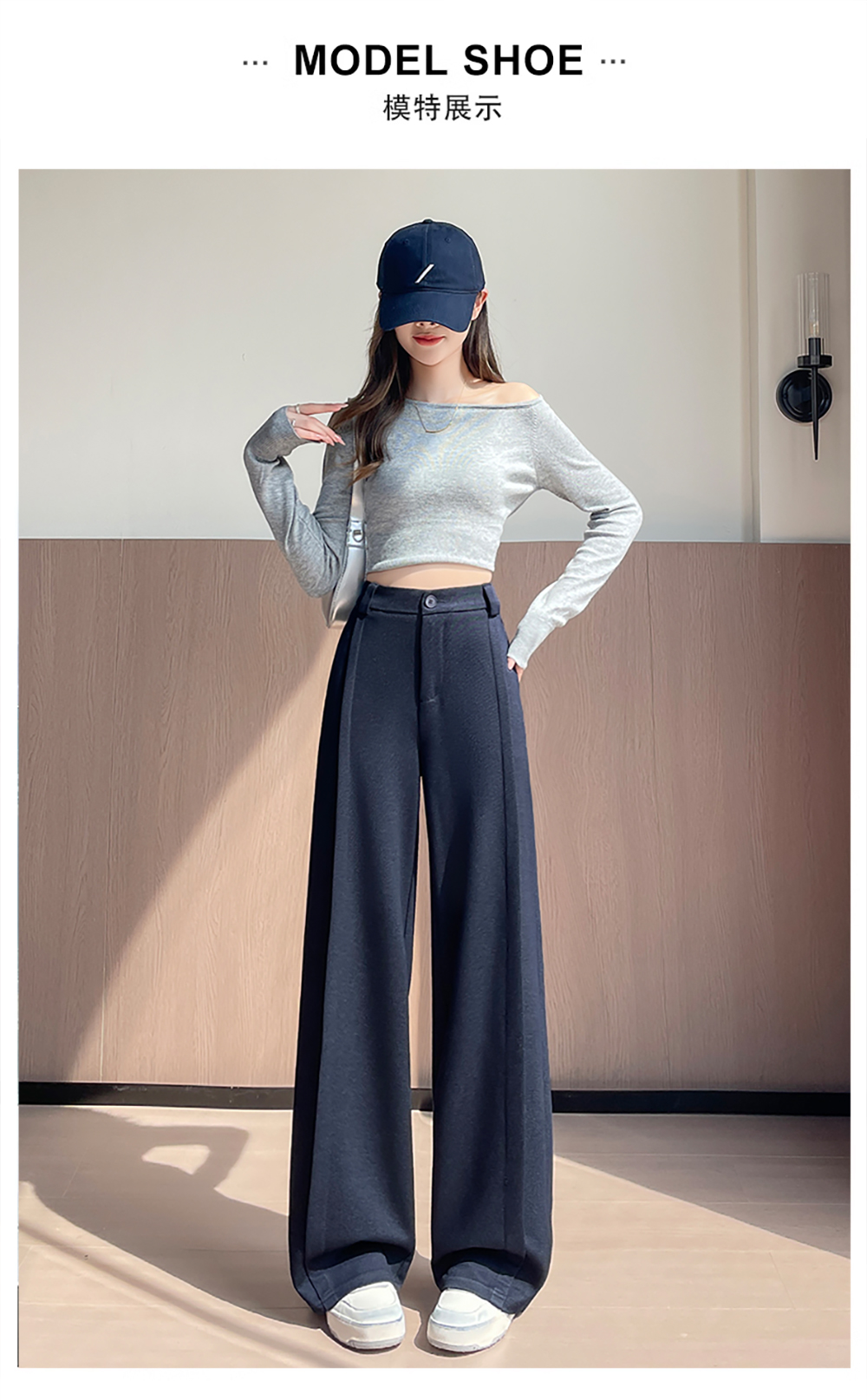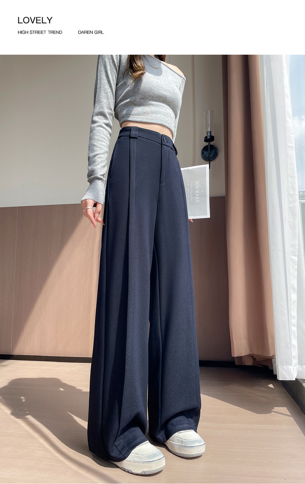 实拍#西装裤高级感垂感直筒牛仔阔腿裤女宽松慵懒风窄版休闲西裤