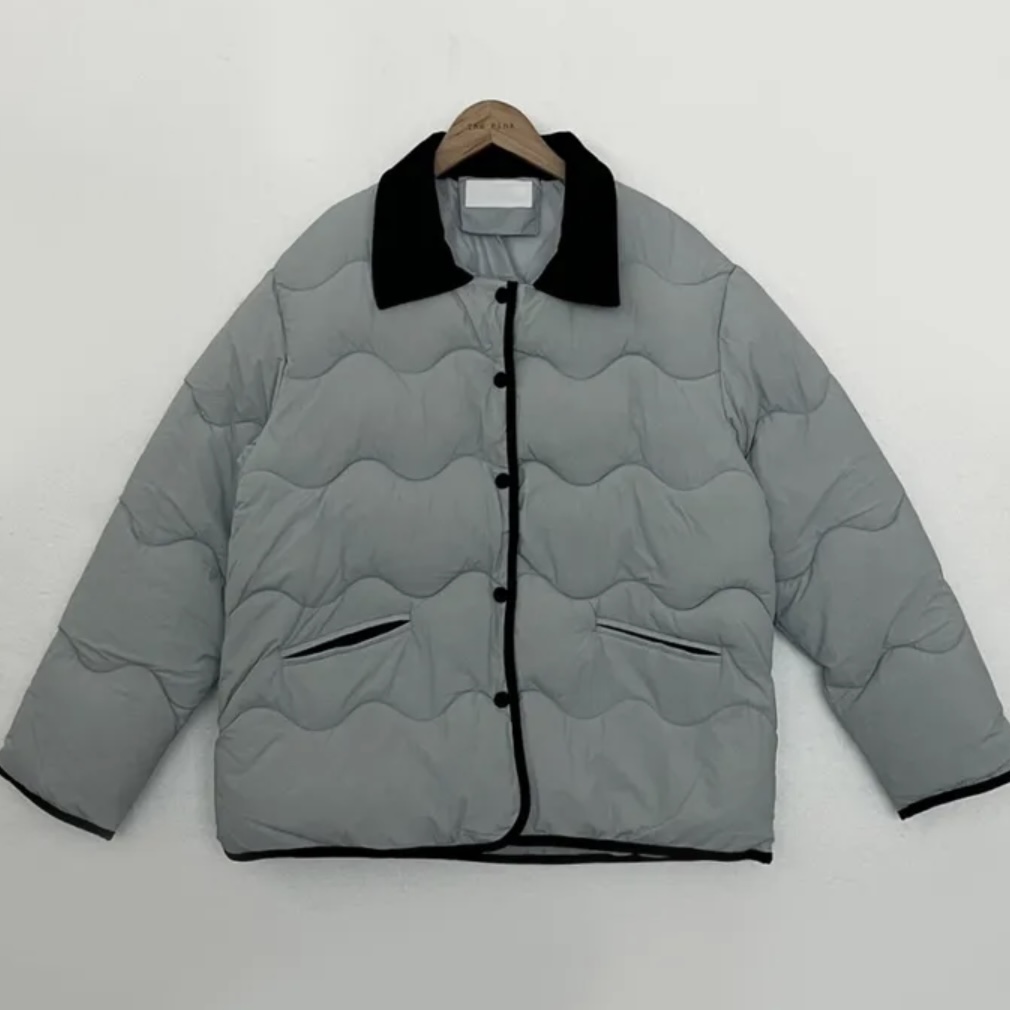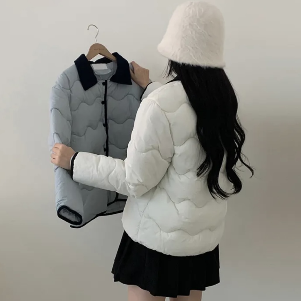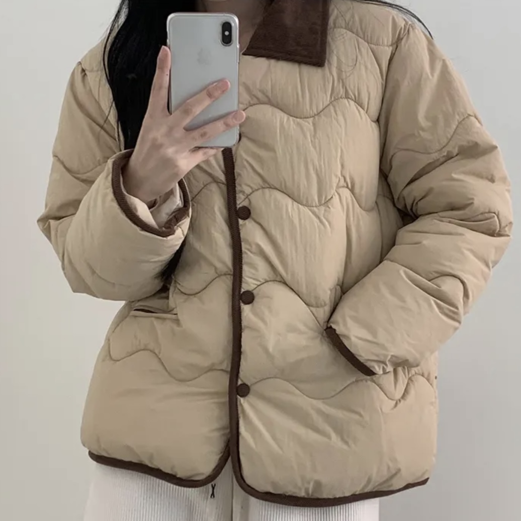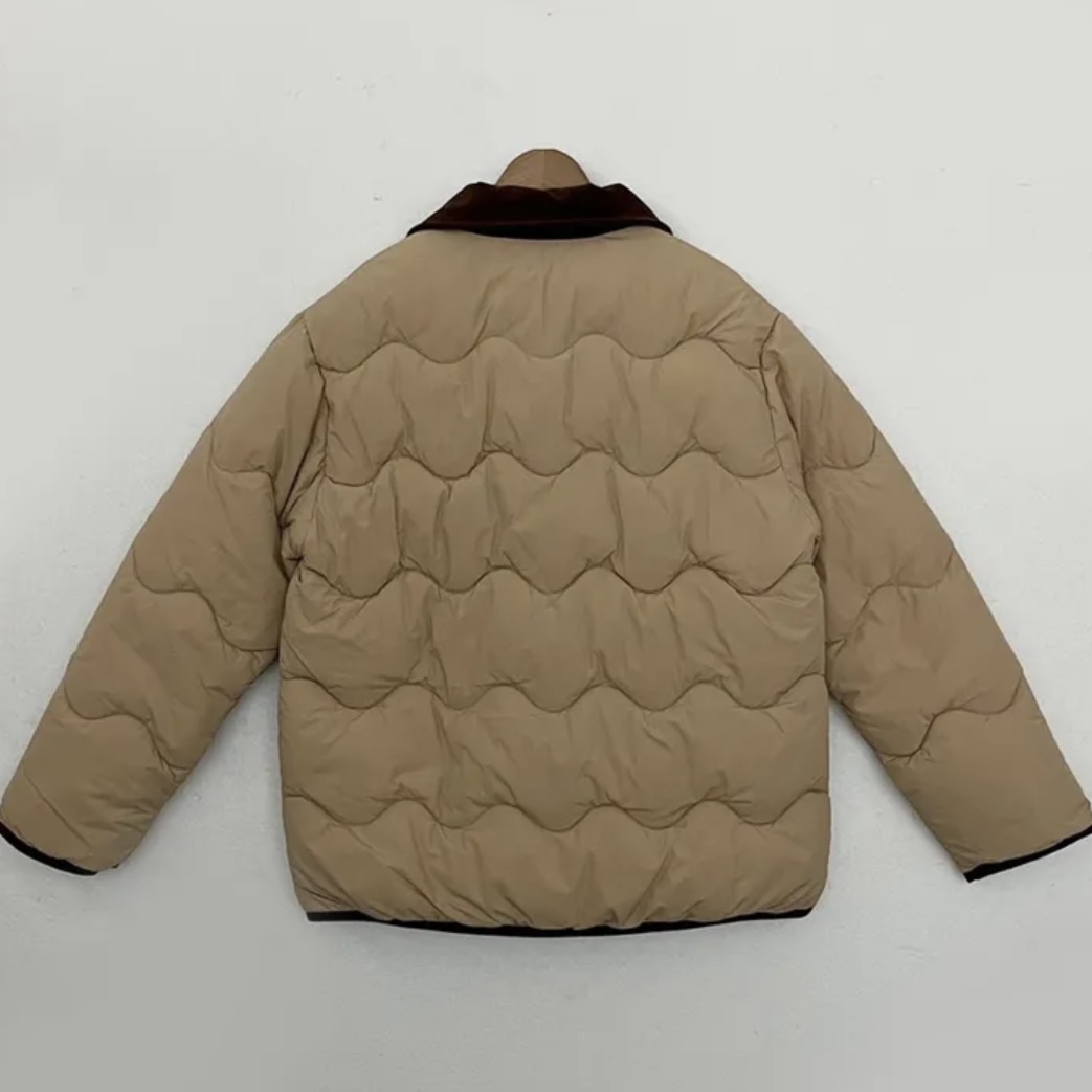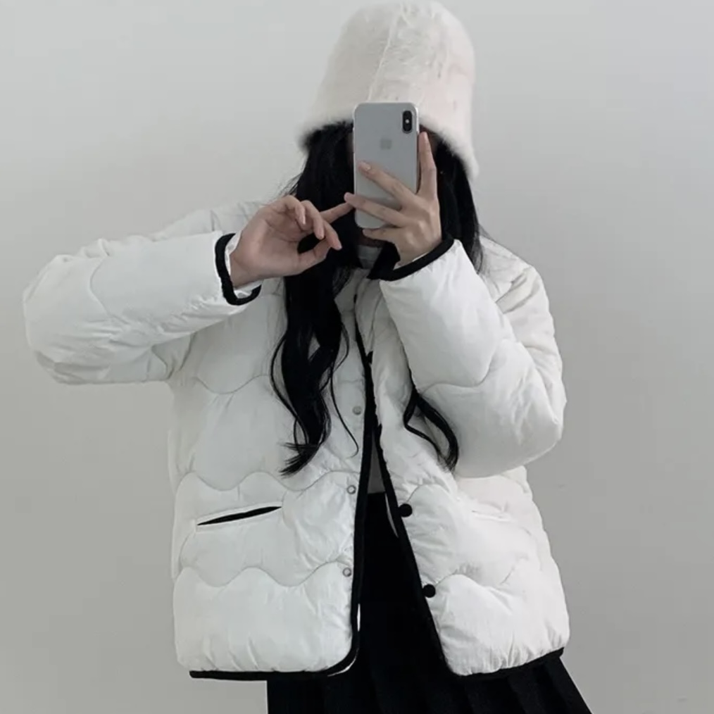 有货 韩国chic灯芯绒翻领棉服轻薄羽绒服女短款小香风时尚外套