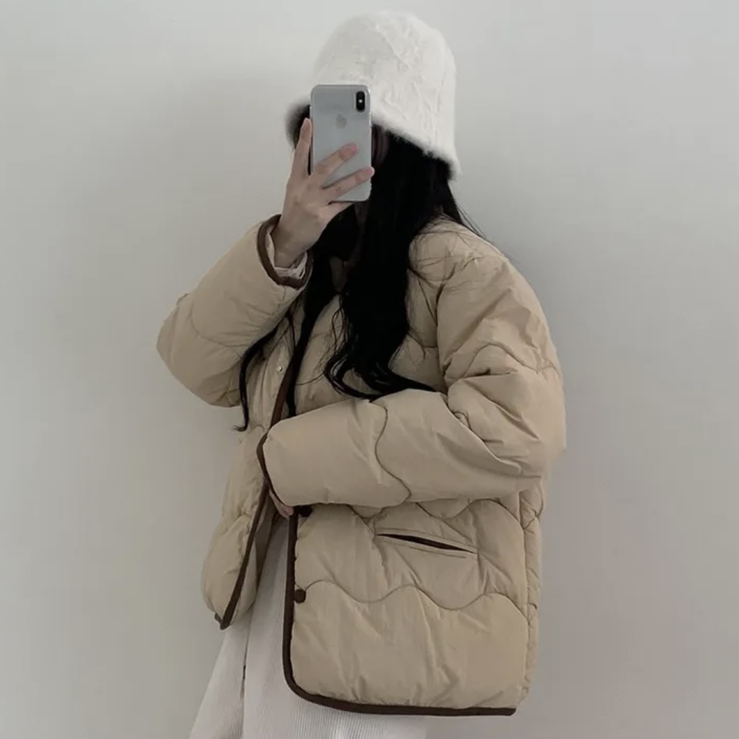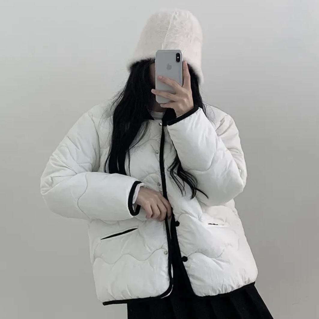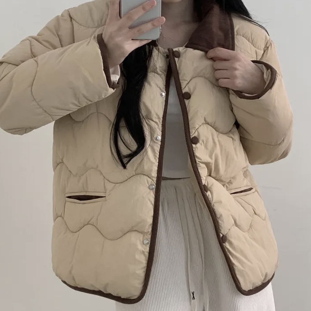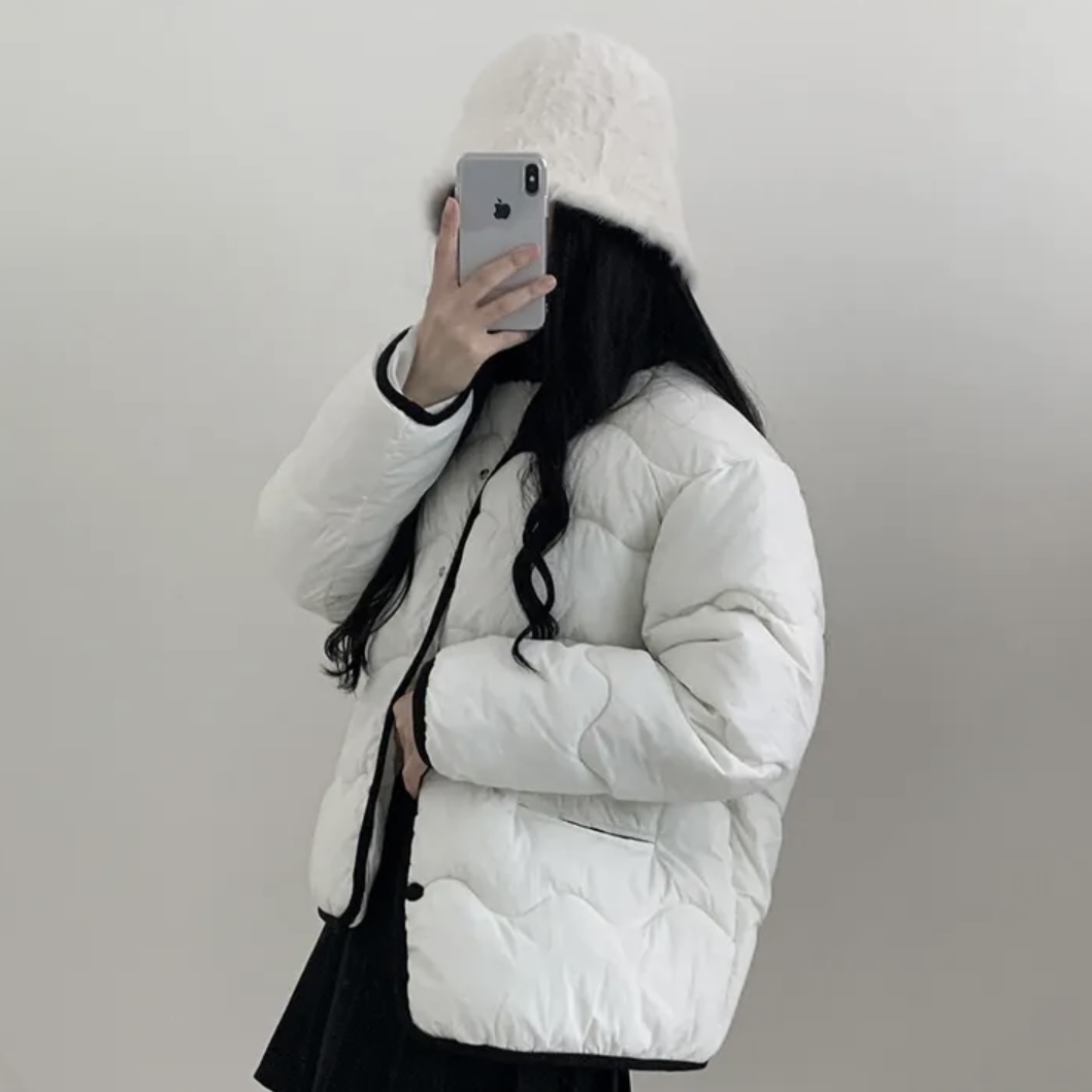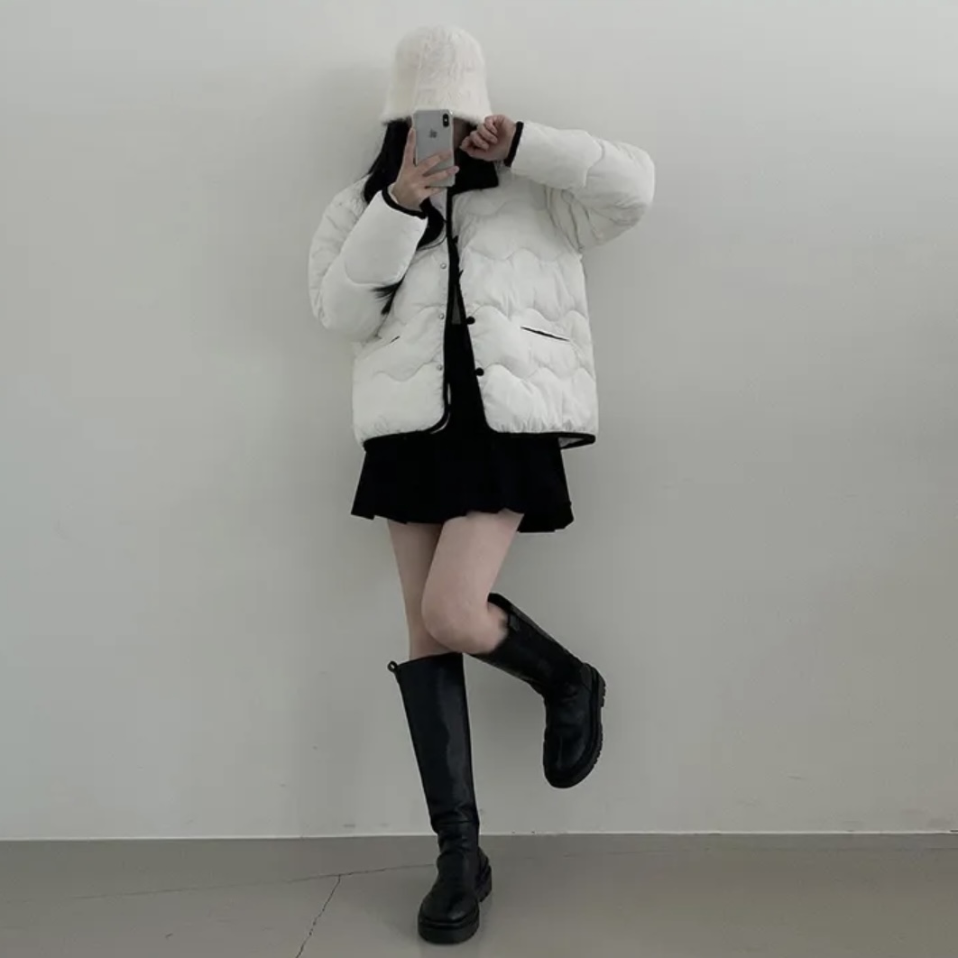 有货 韩国chic灯芯绒翻领棉服轻薄羽绒服女短款小香风时尚外套
