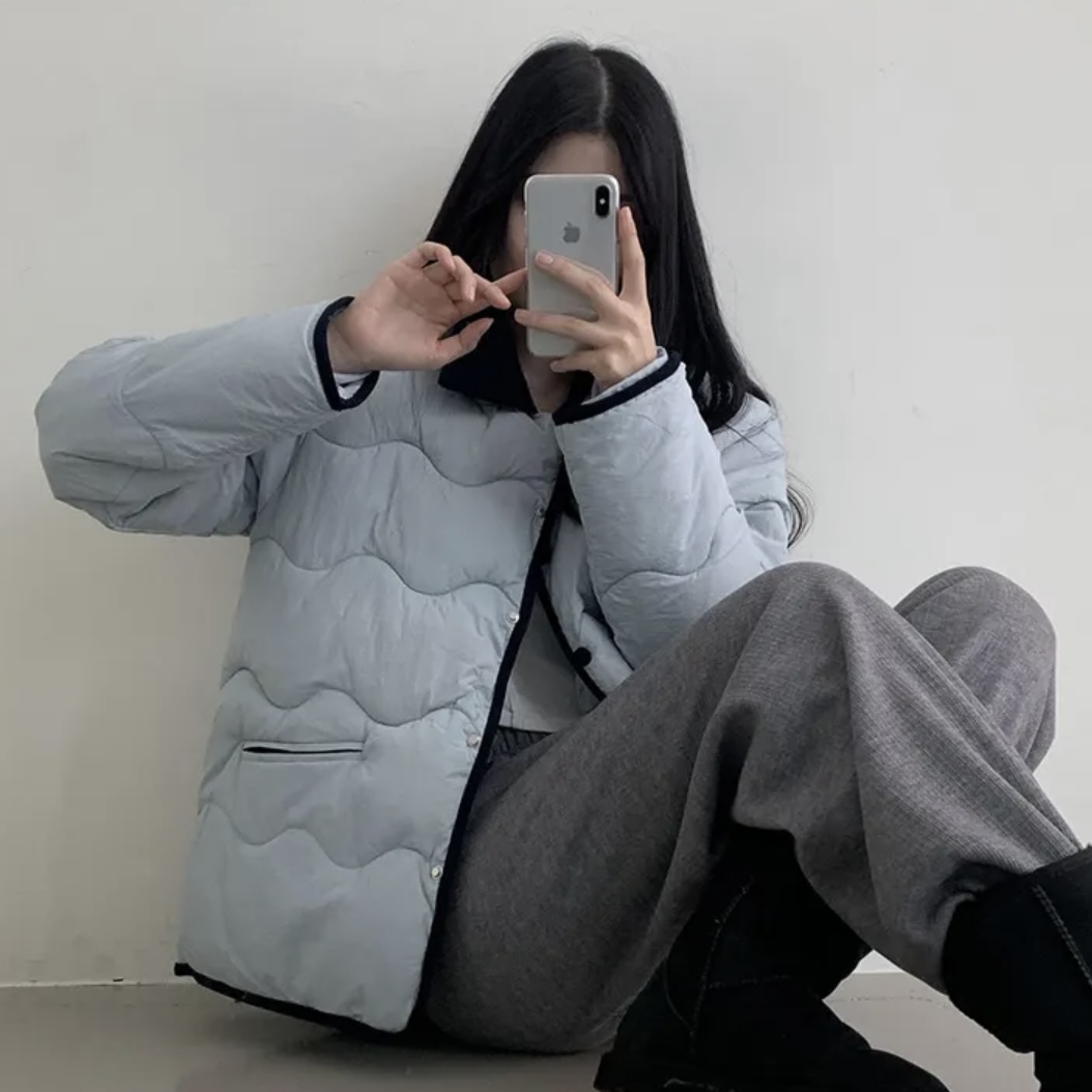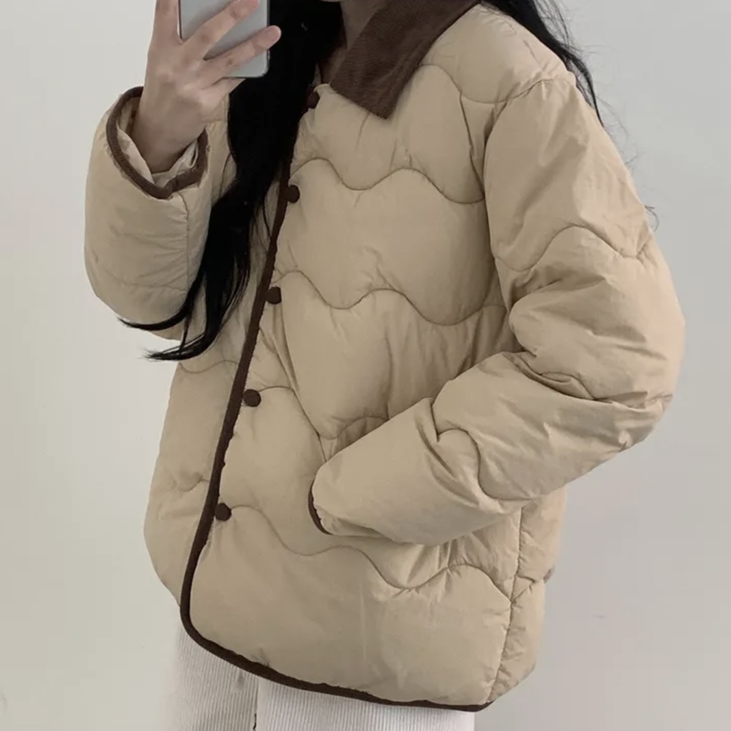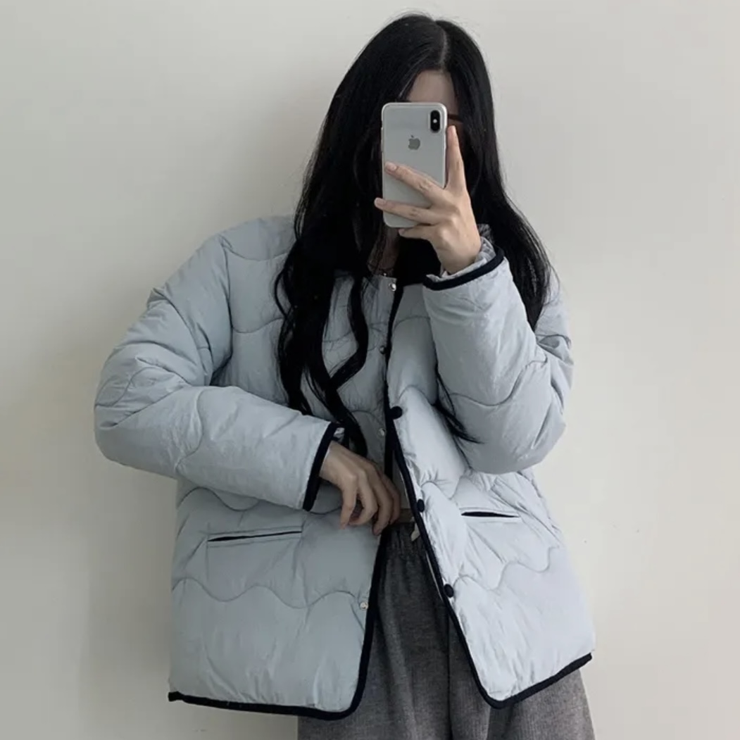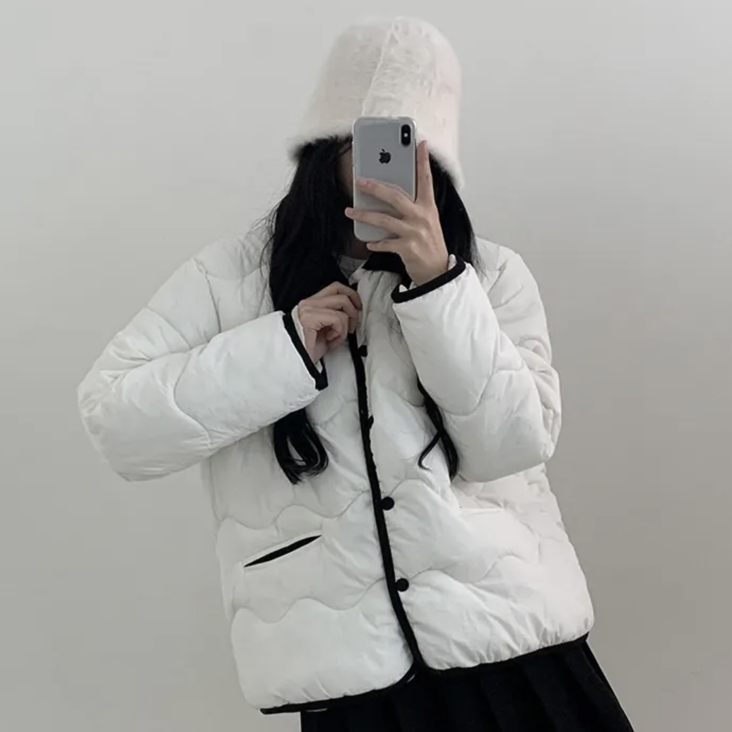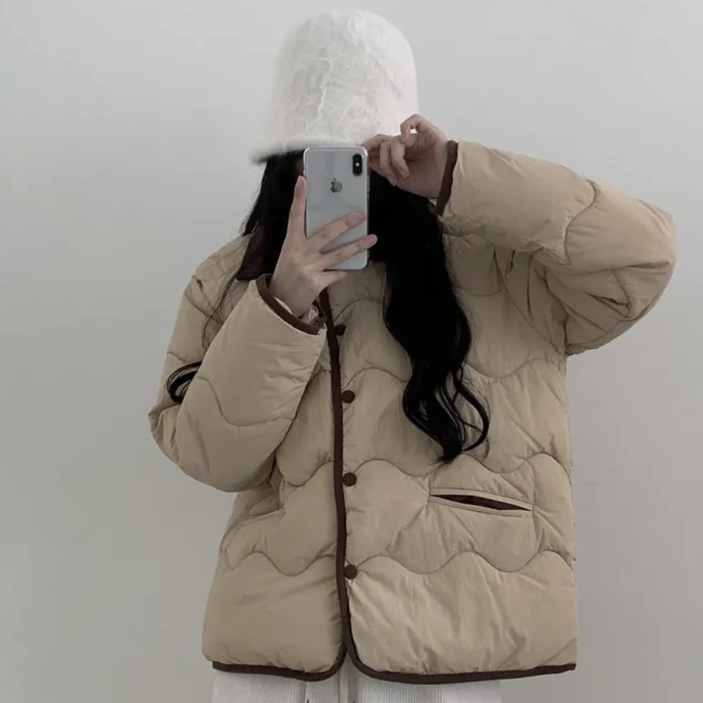 有货 韩国chic灯芯绒翻领棉服轻薄羽绒服女短款小香风时尚外套