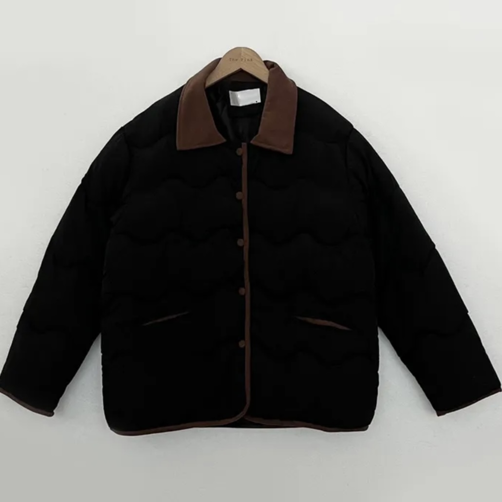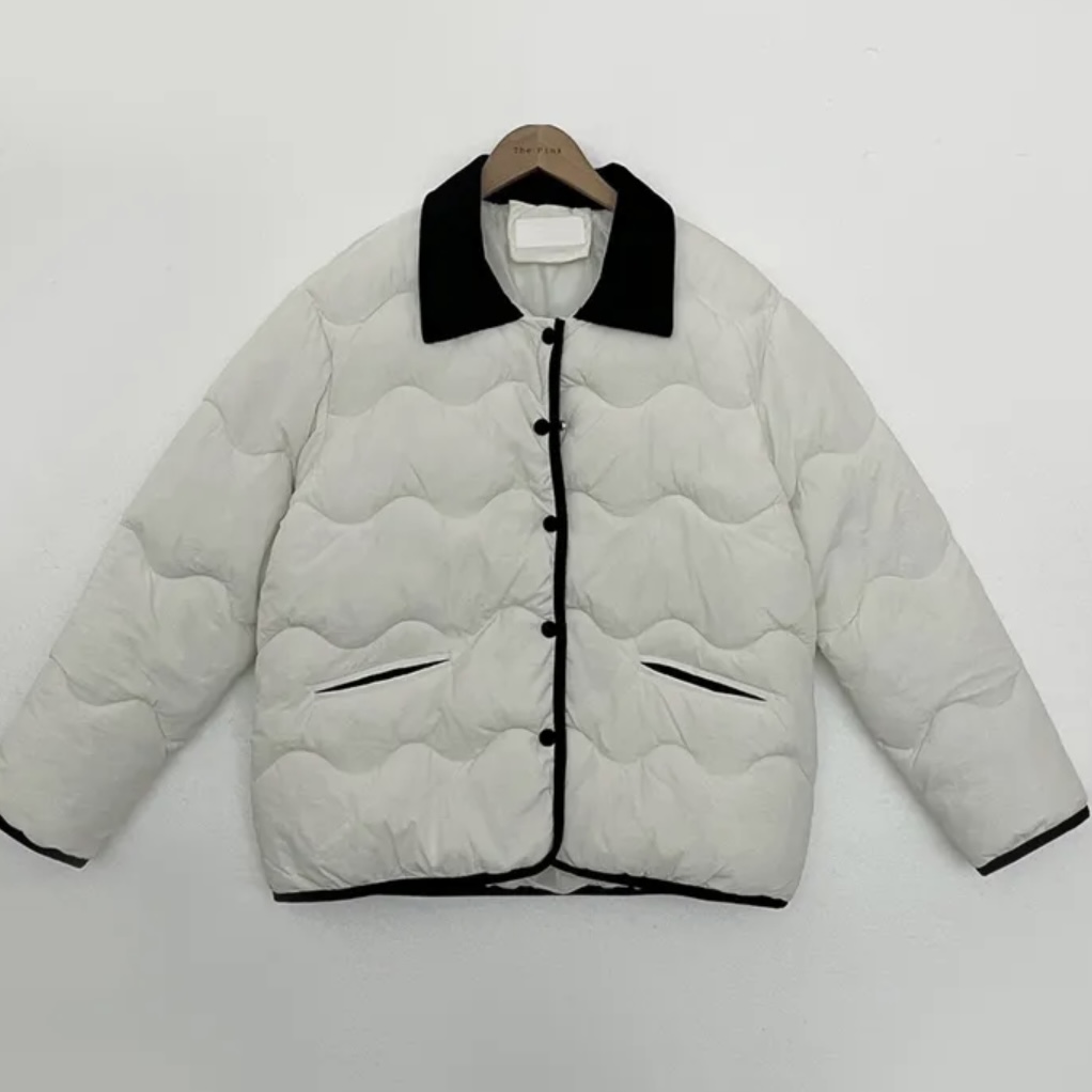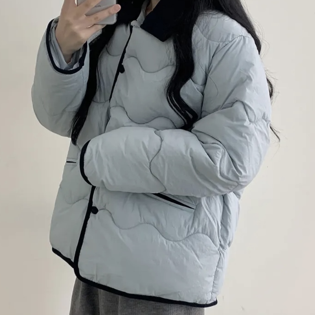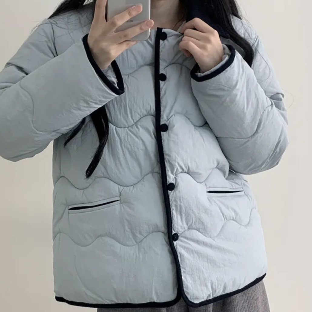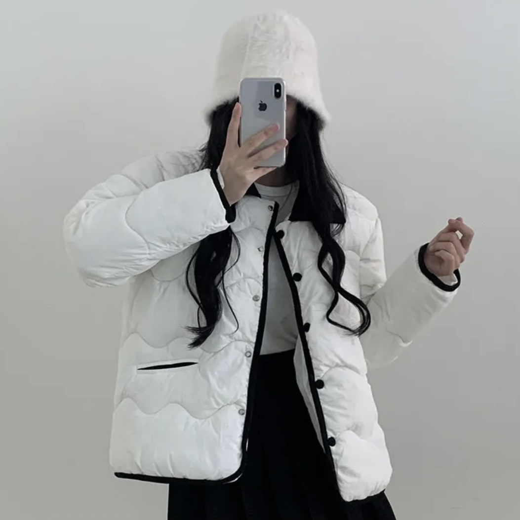 有货 韩国chic灯芯绒翻领棉服轻薄羽绒服女短款小香风时尚外套