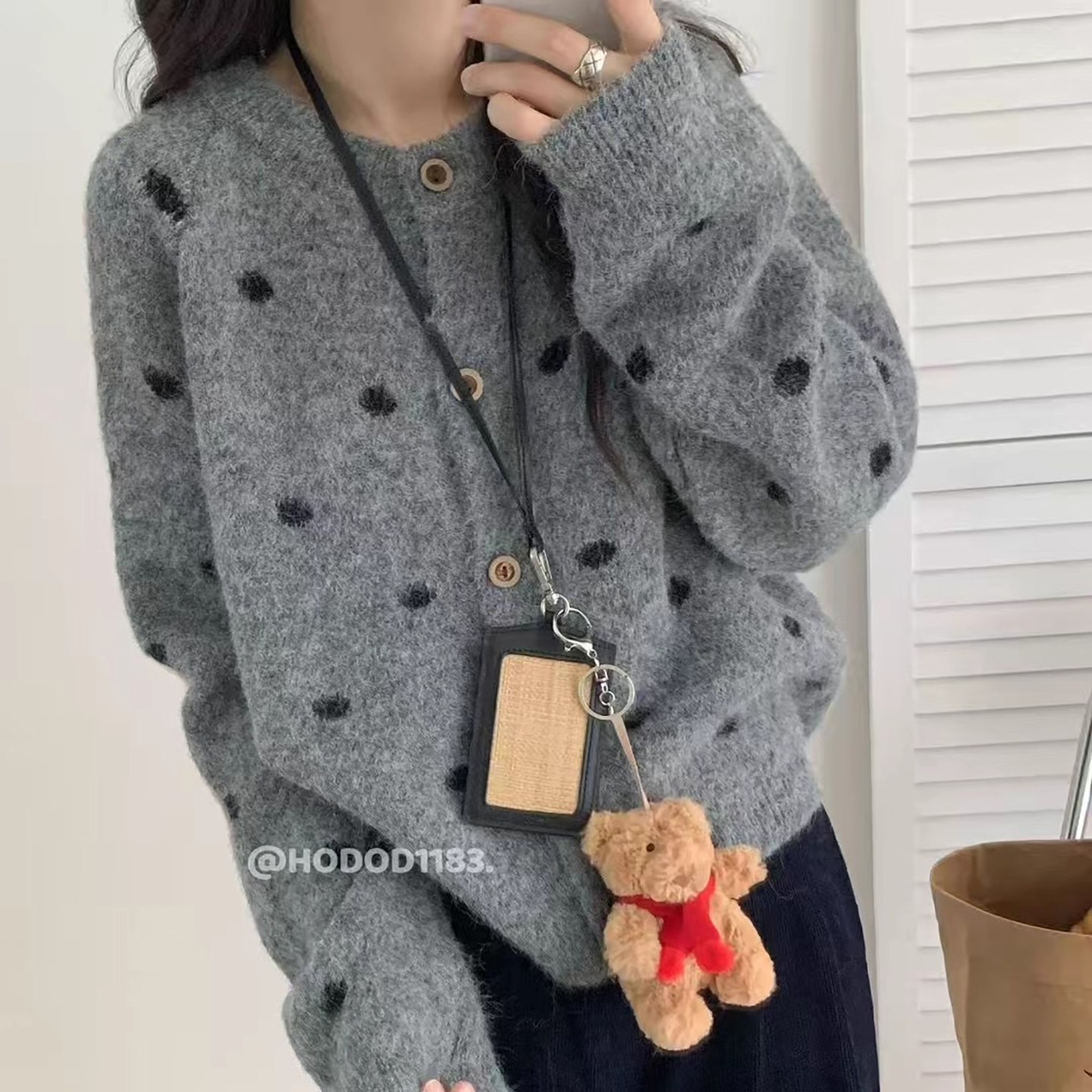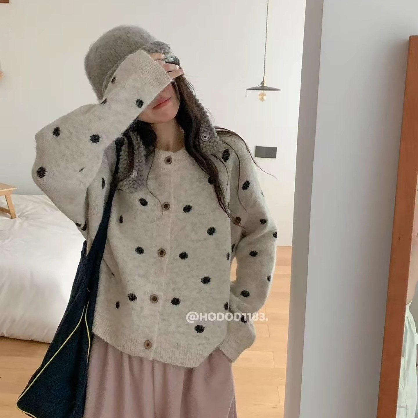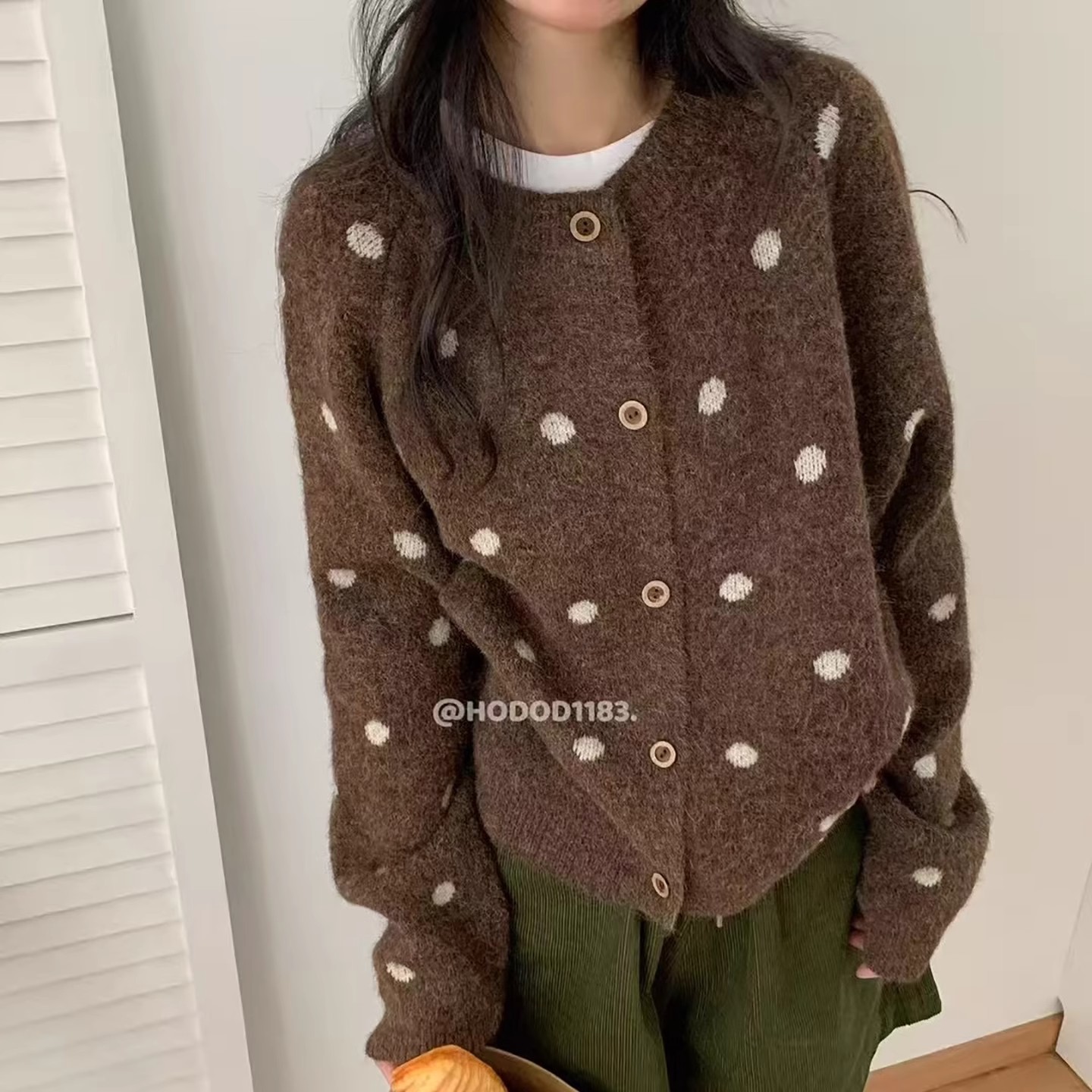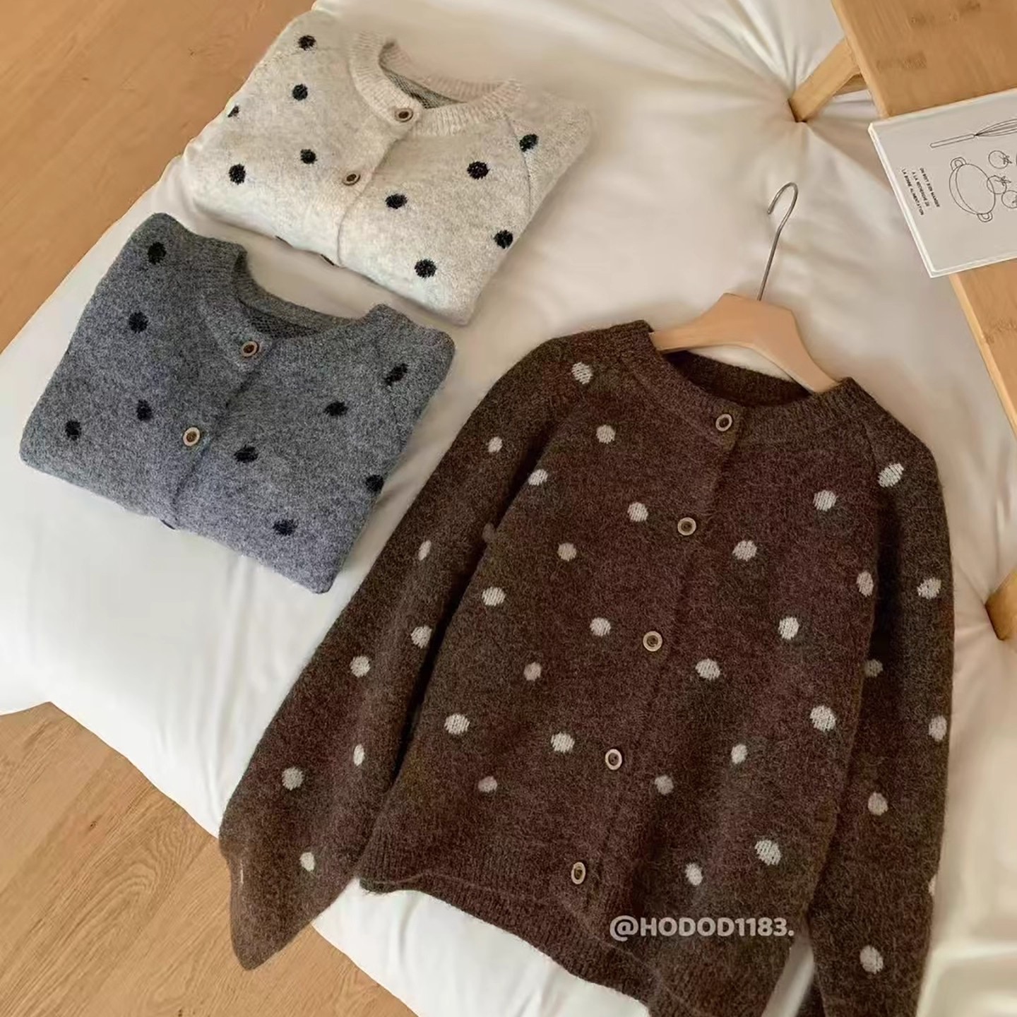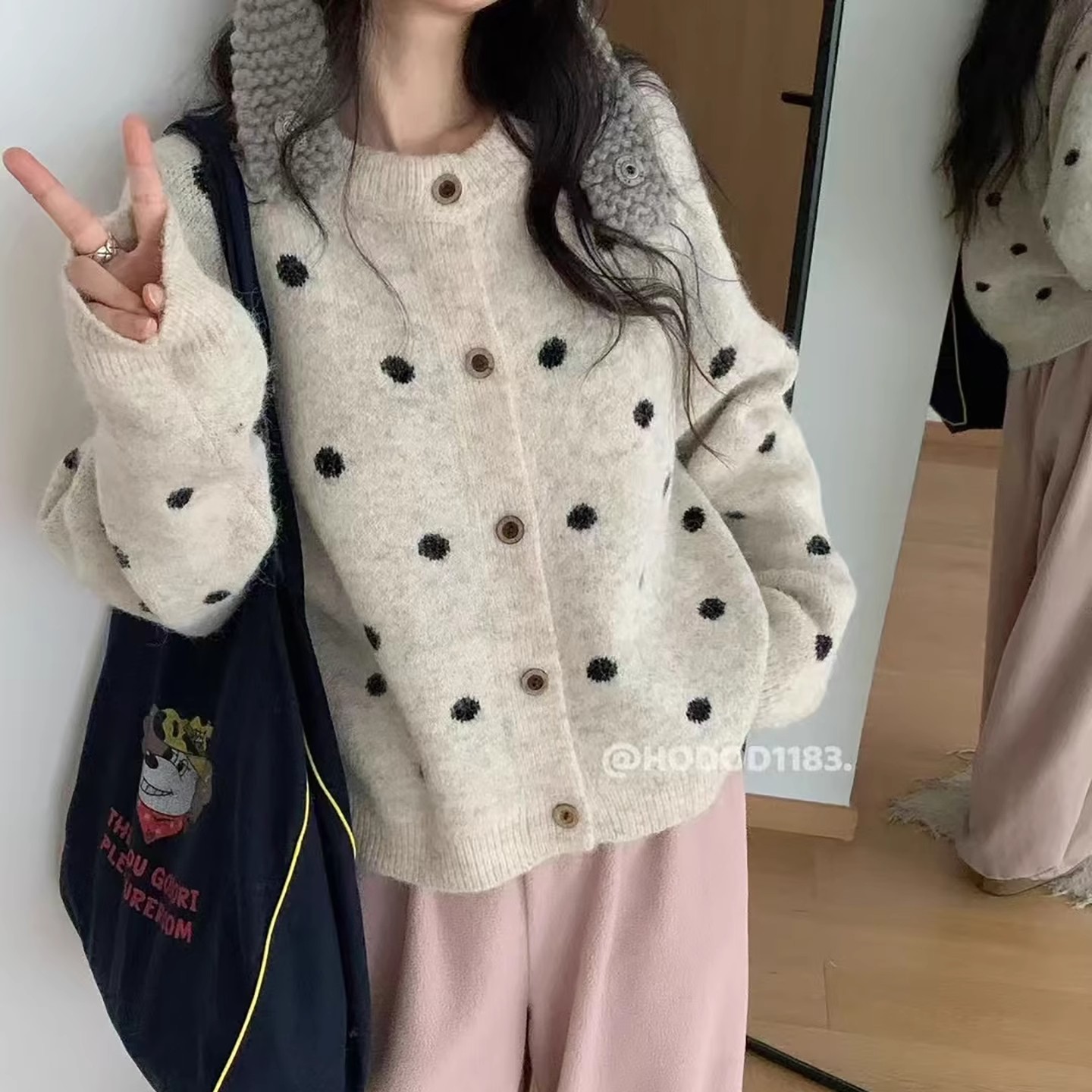 复古撞色波点韩系圆领针织开衫女2025秋冬季宽松显瘦百搭毛衣外套