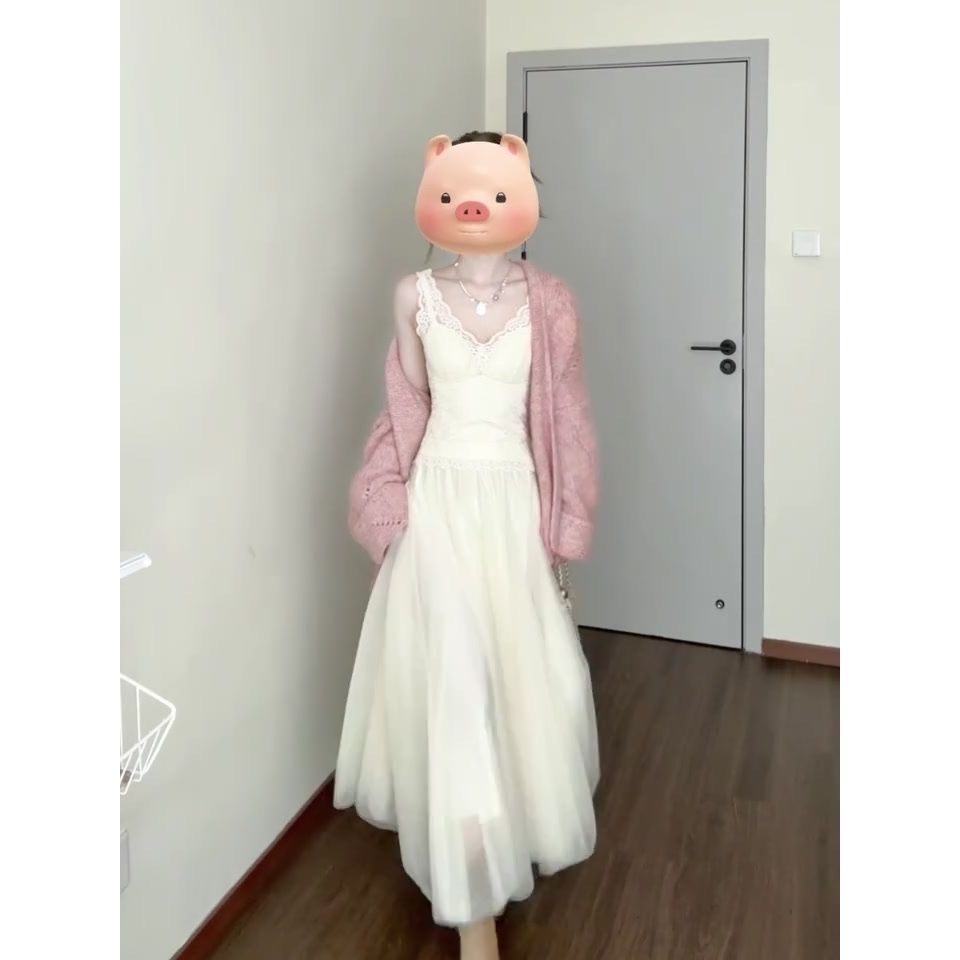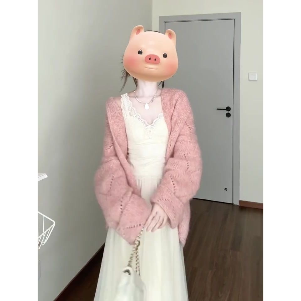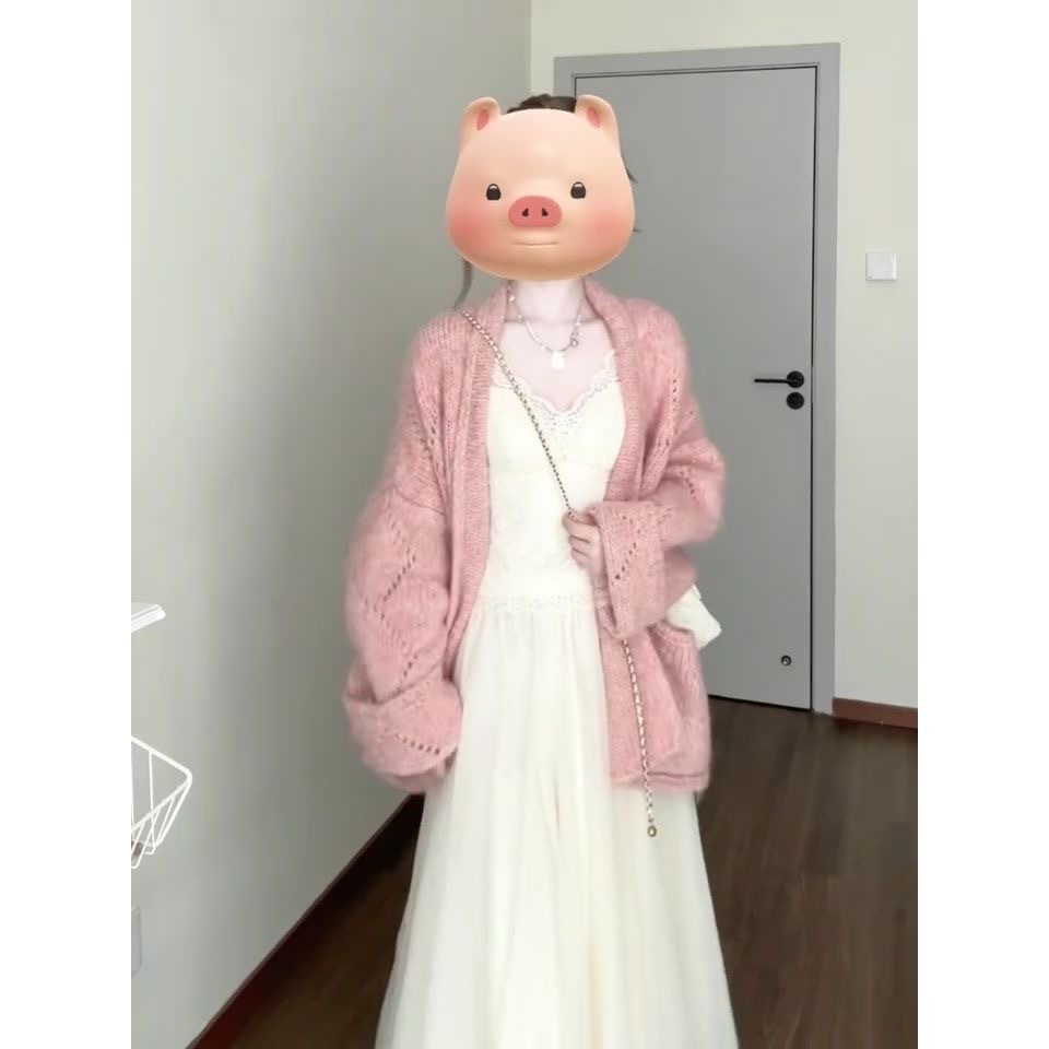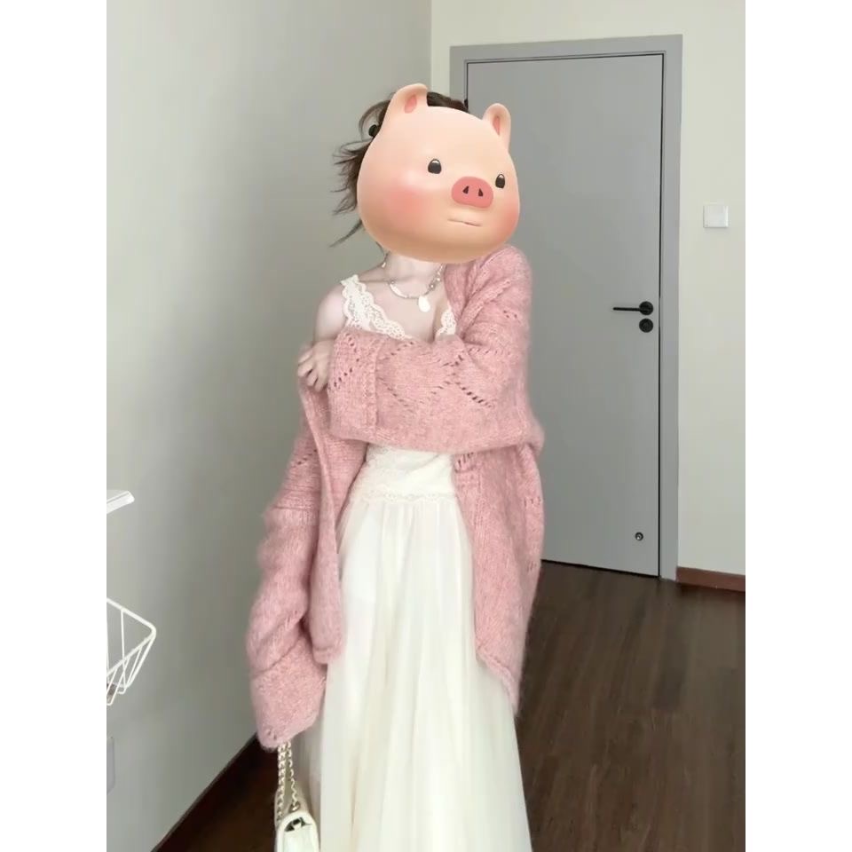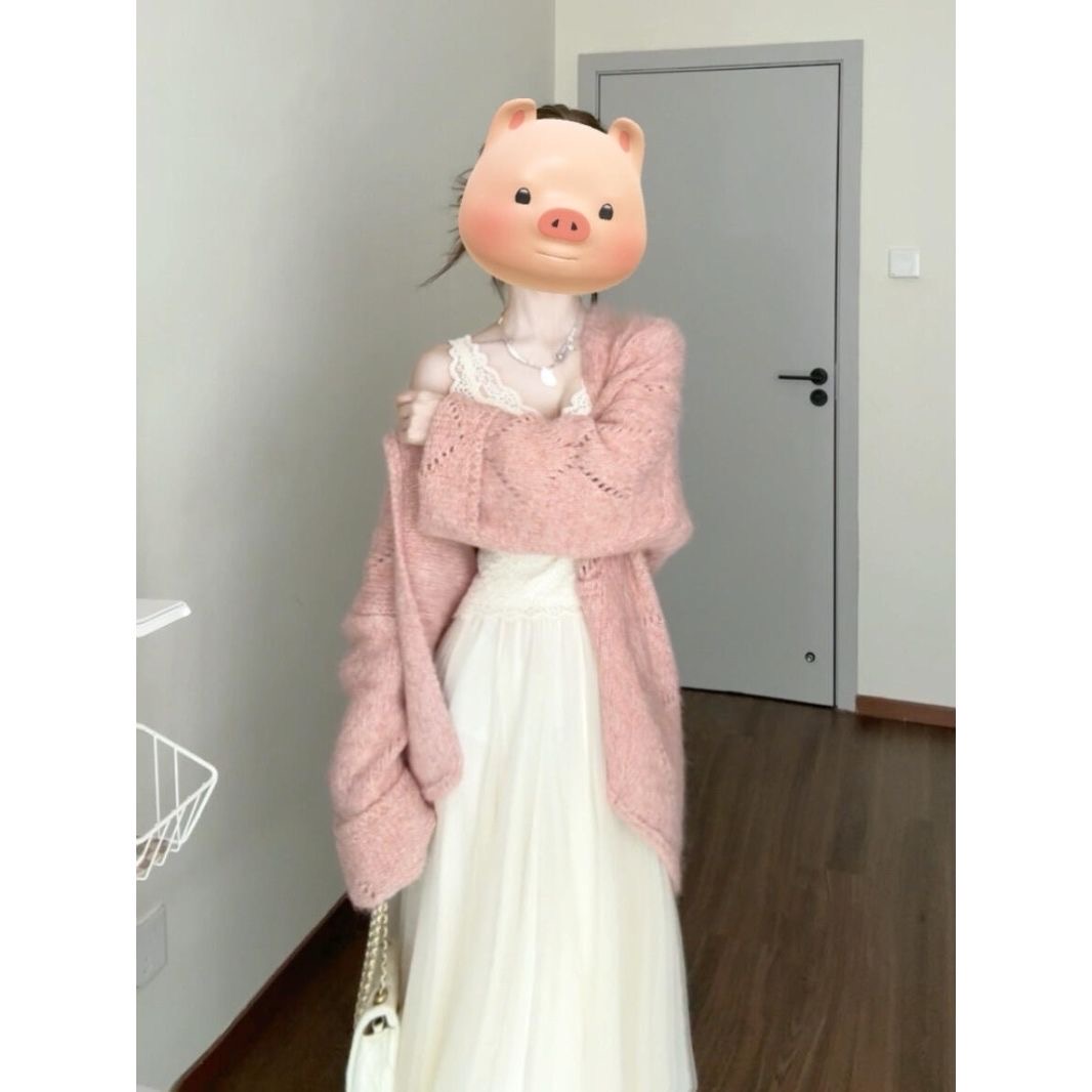 韩系粉色针织开衫毛衣外套女早秋季2025新款氛围感宽松中长款上衣