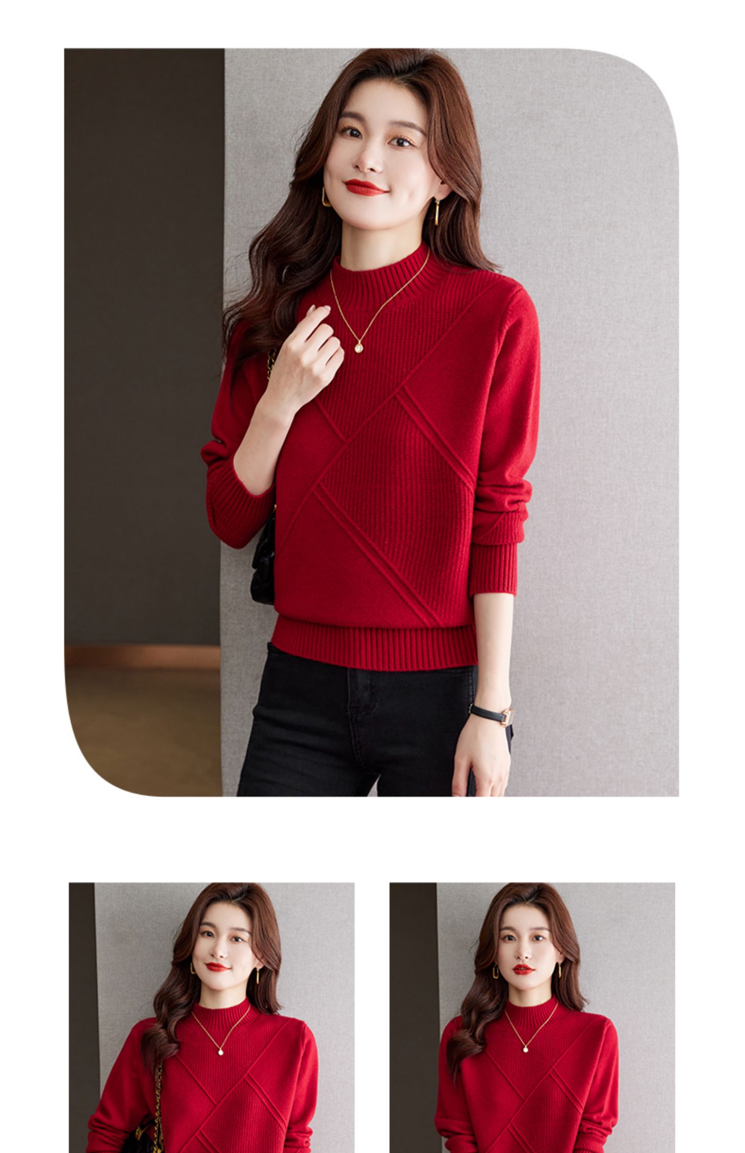 高级感红色半高领加厚毛衣女春秋大码时尚洋气针织打底衫内搭上衣