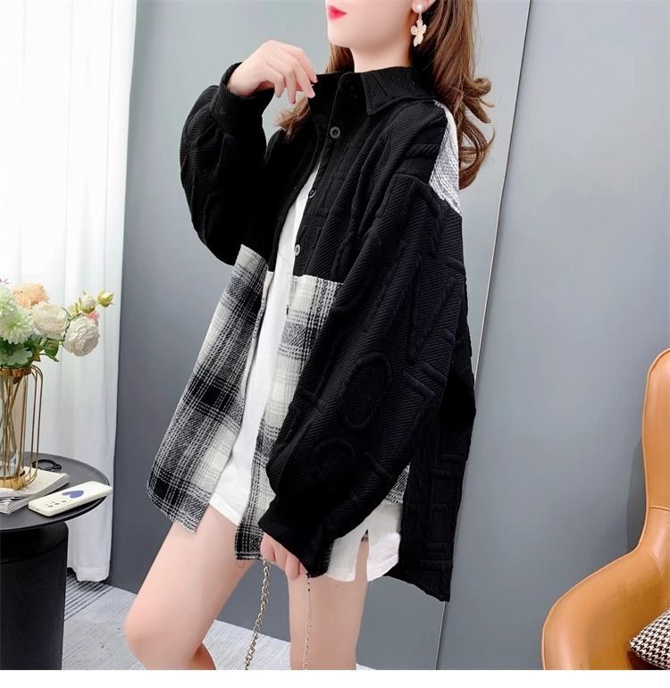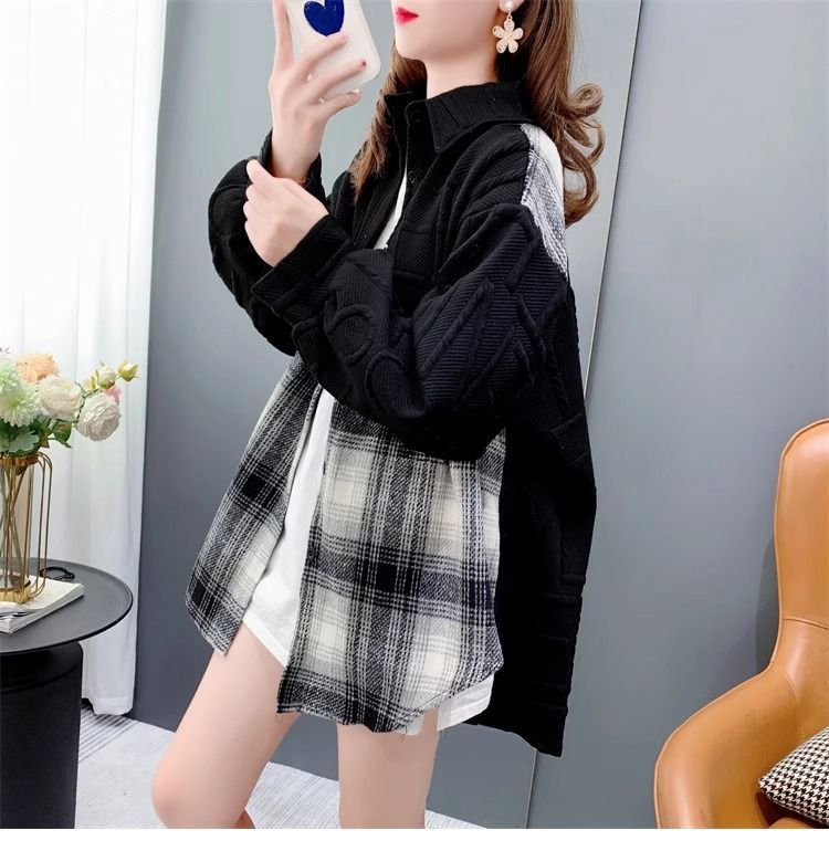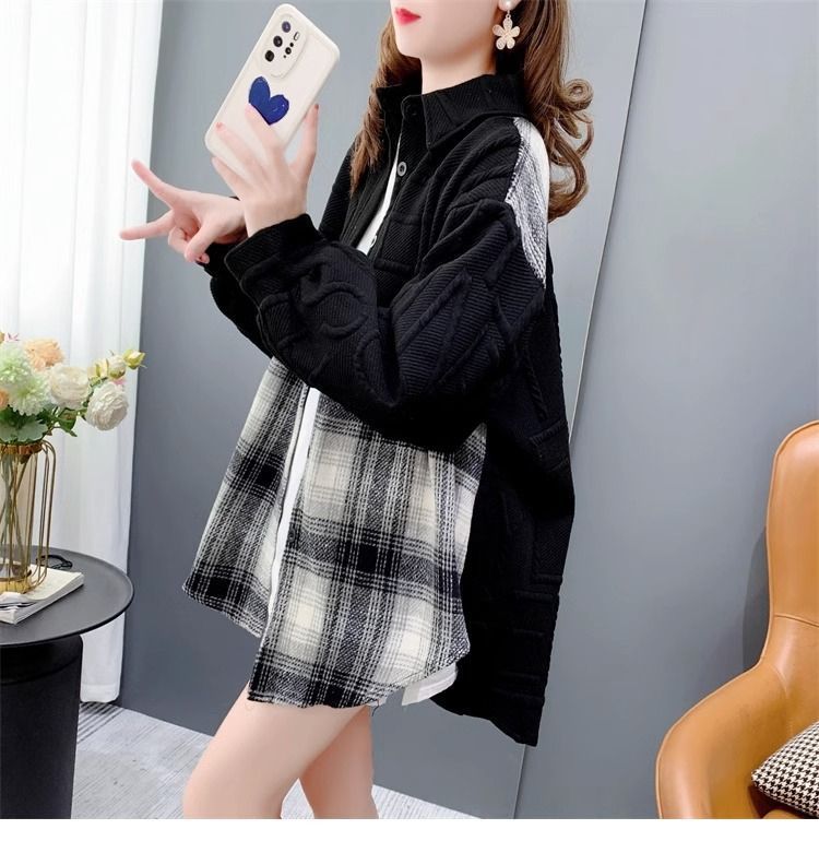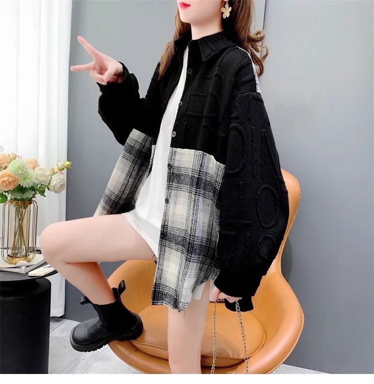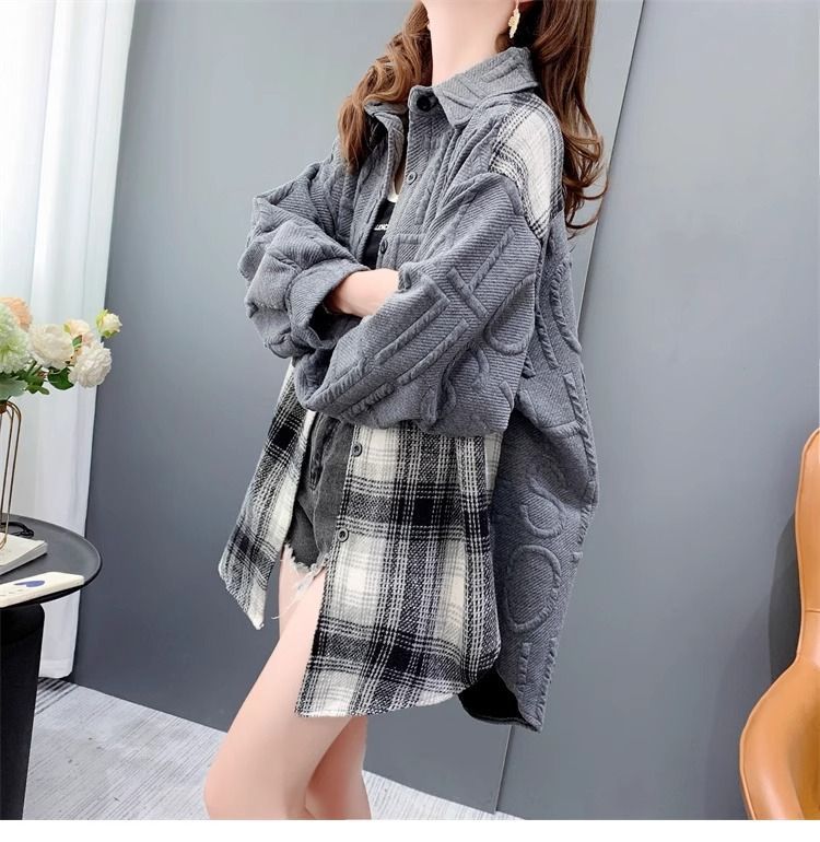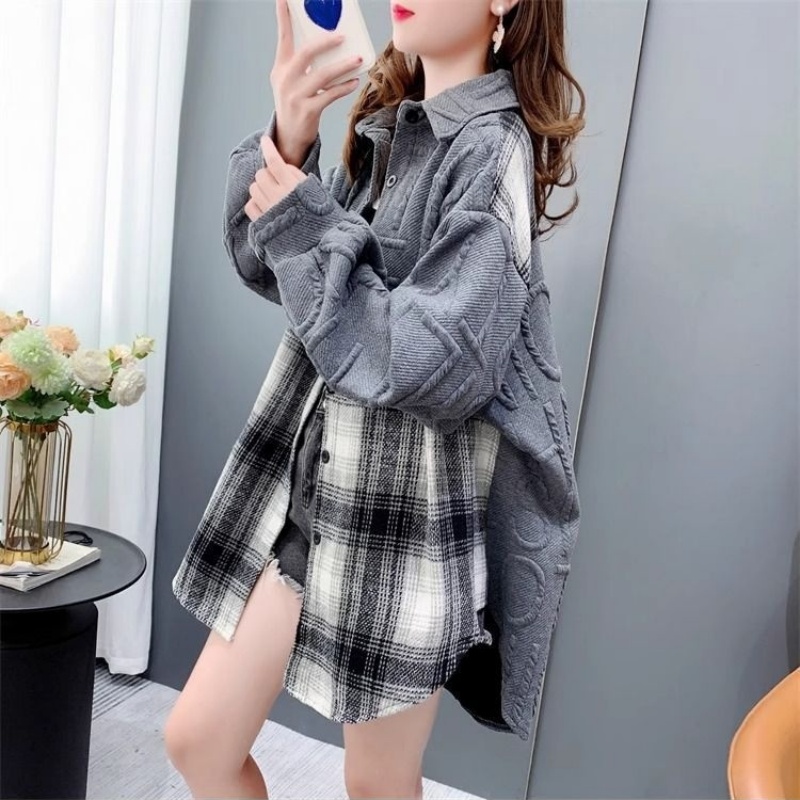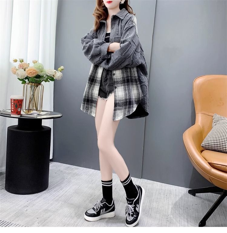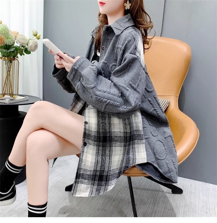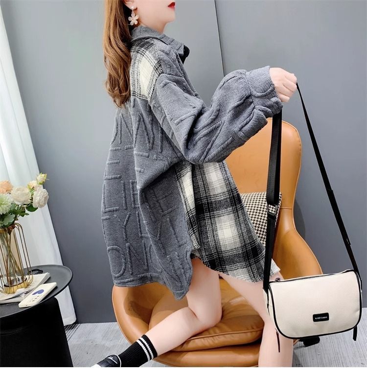 复合真超慵懒风宽松2025秋冬加绒格子衬衫外套
