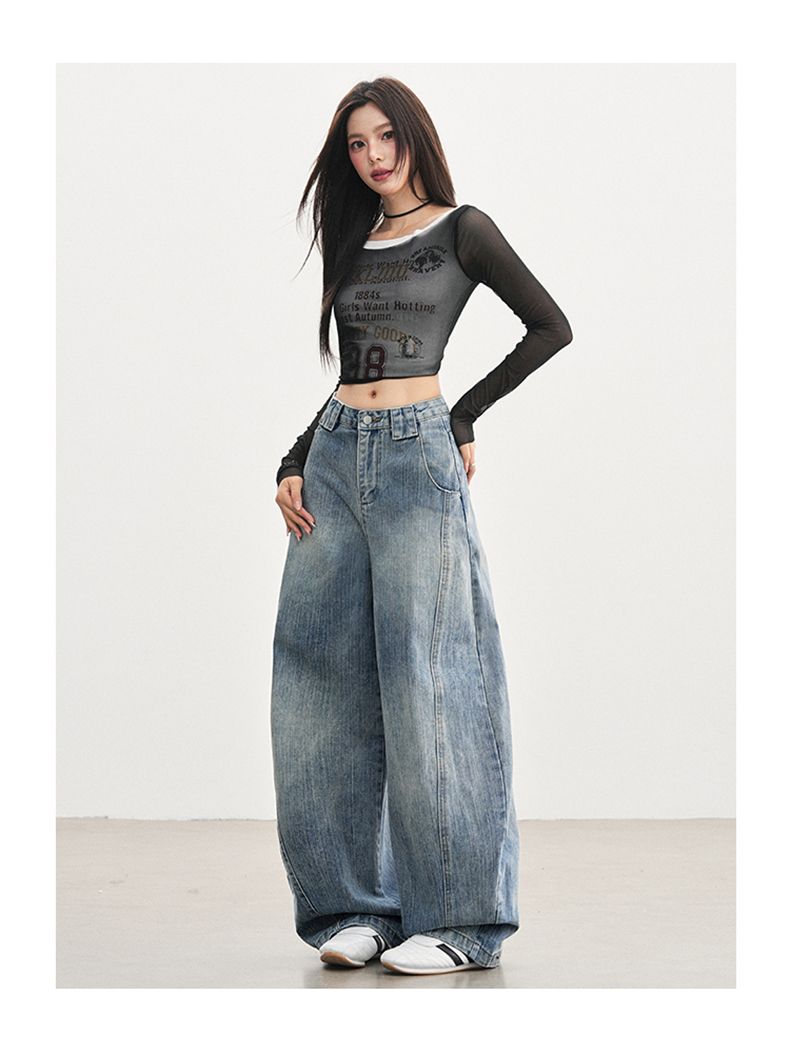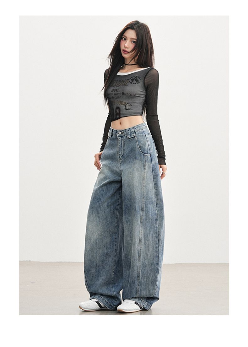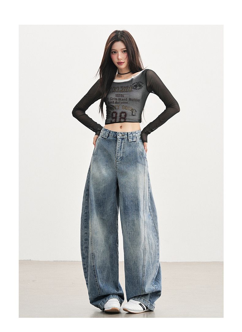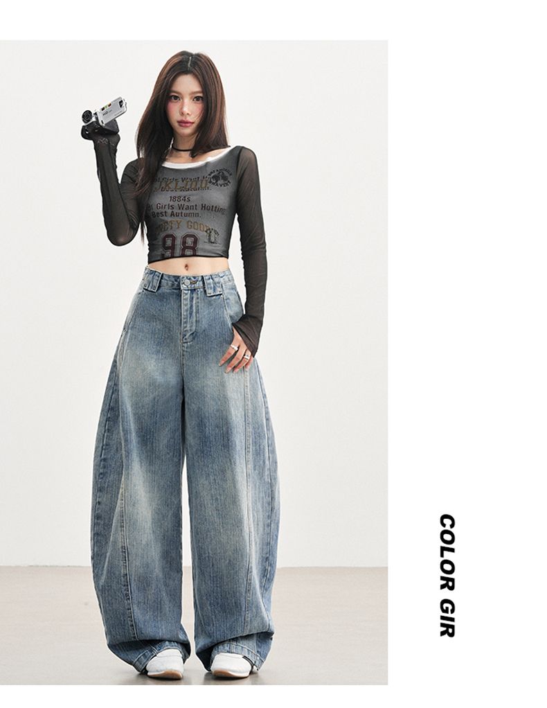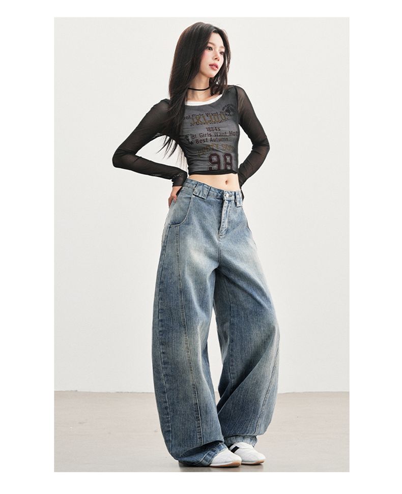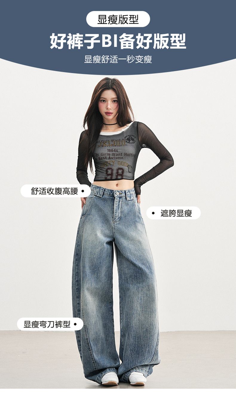 实拍街头百搭|炫酷辣妹|初秋潮女街头弯刀牛仔裤