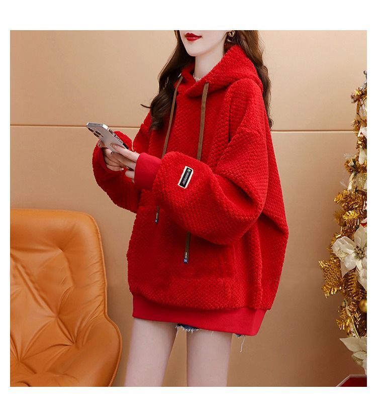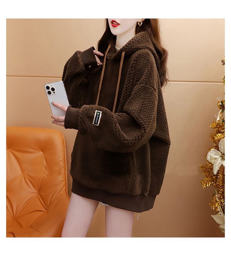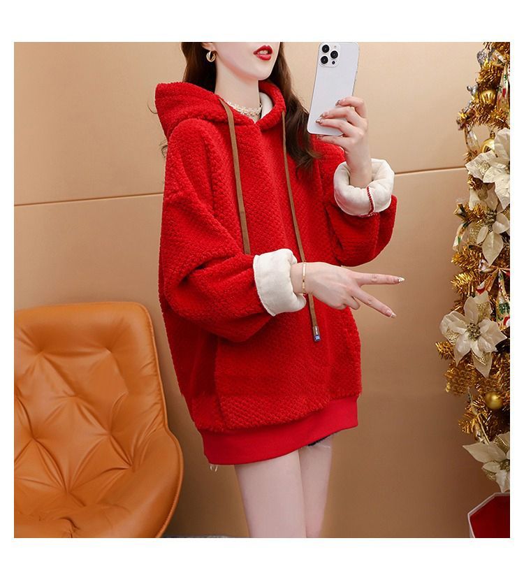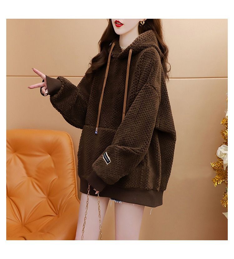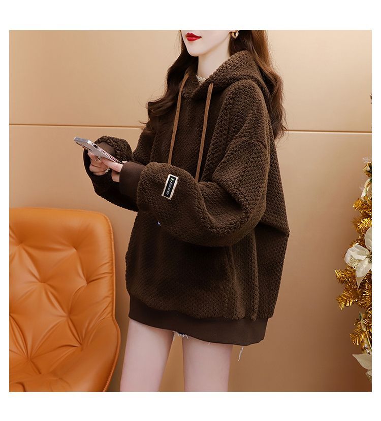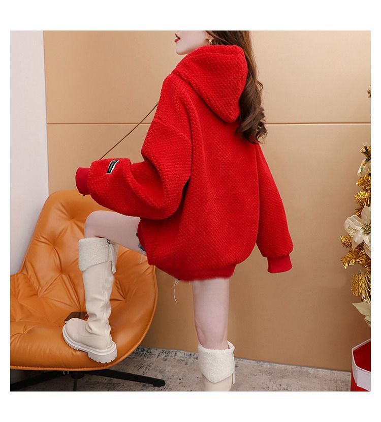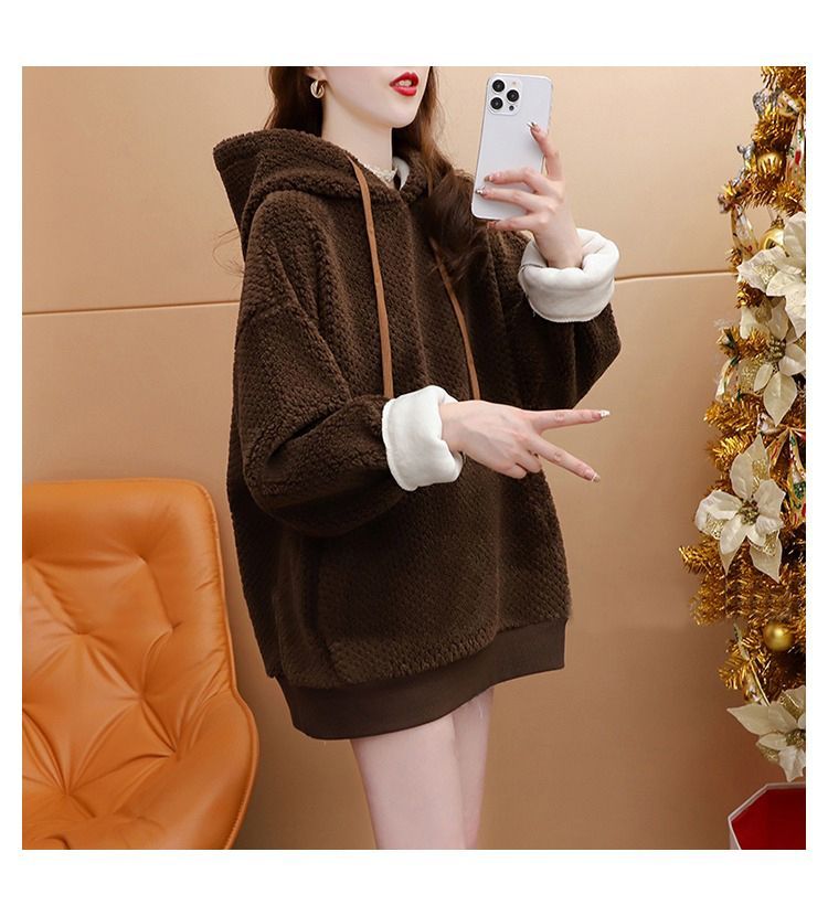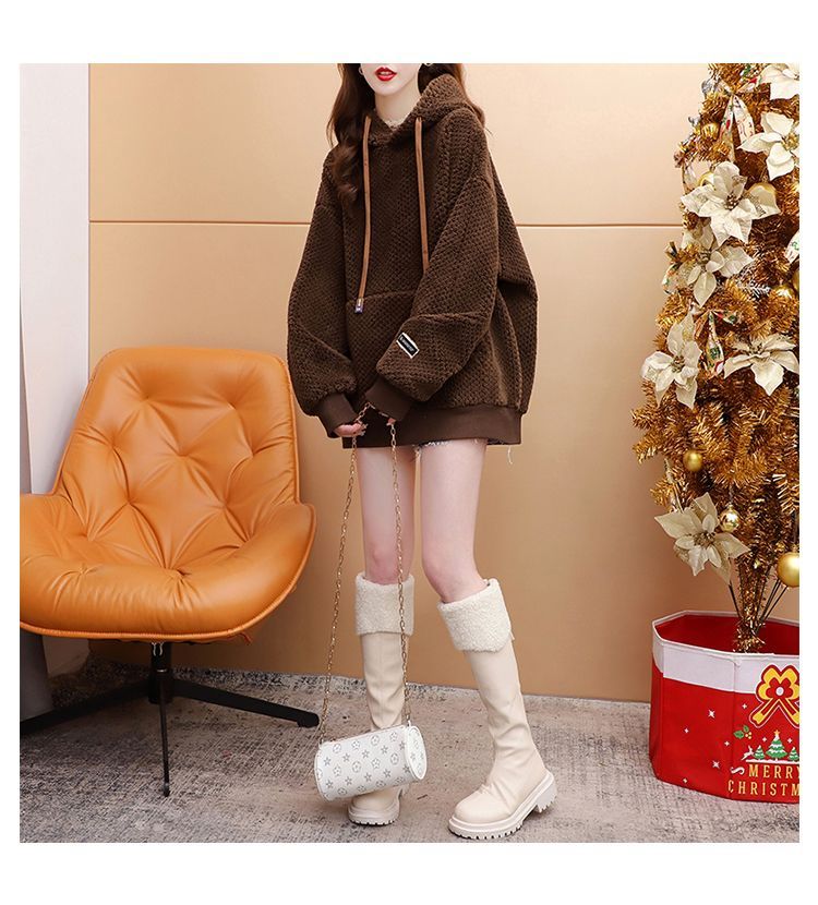 菠萝格复合真超 2025新款秋冬加绒加厚洋气大码连帽卫衣女