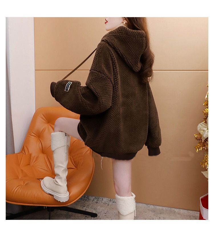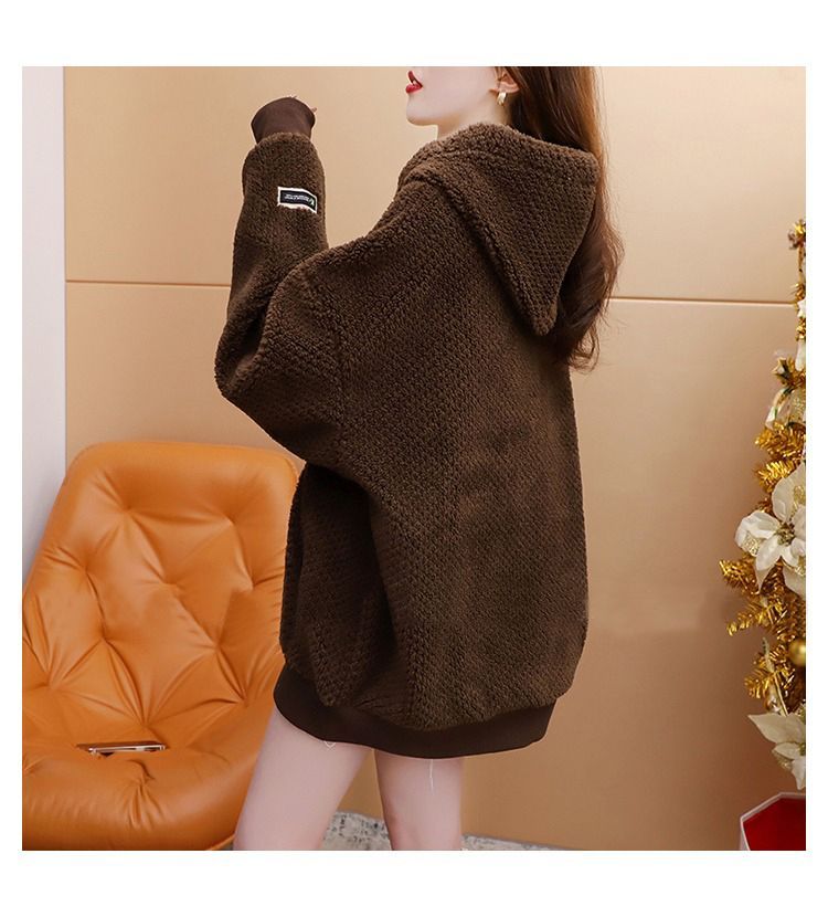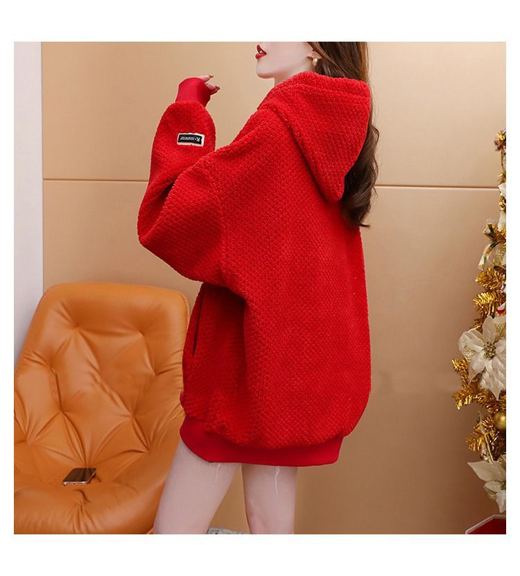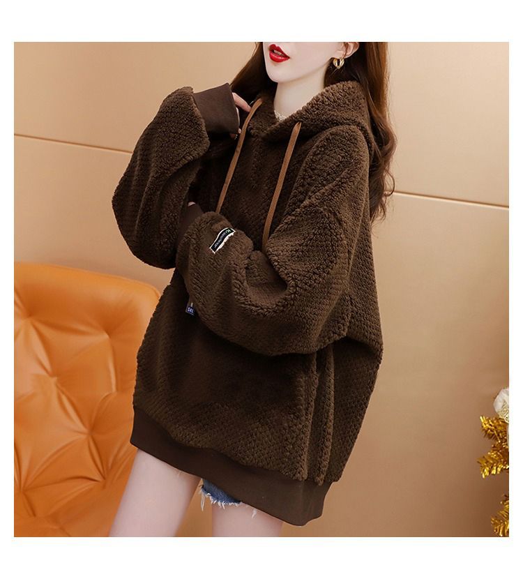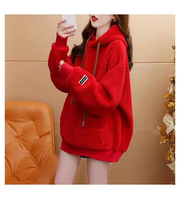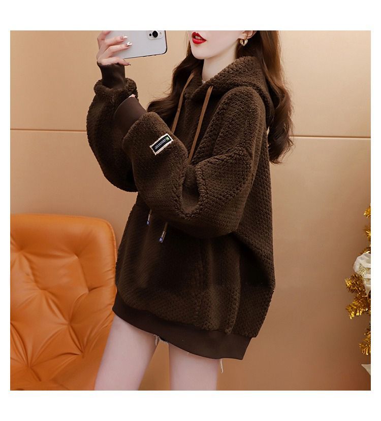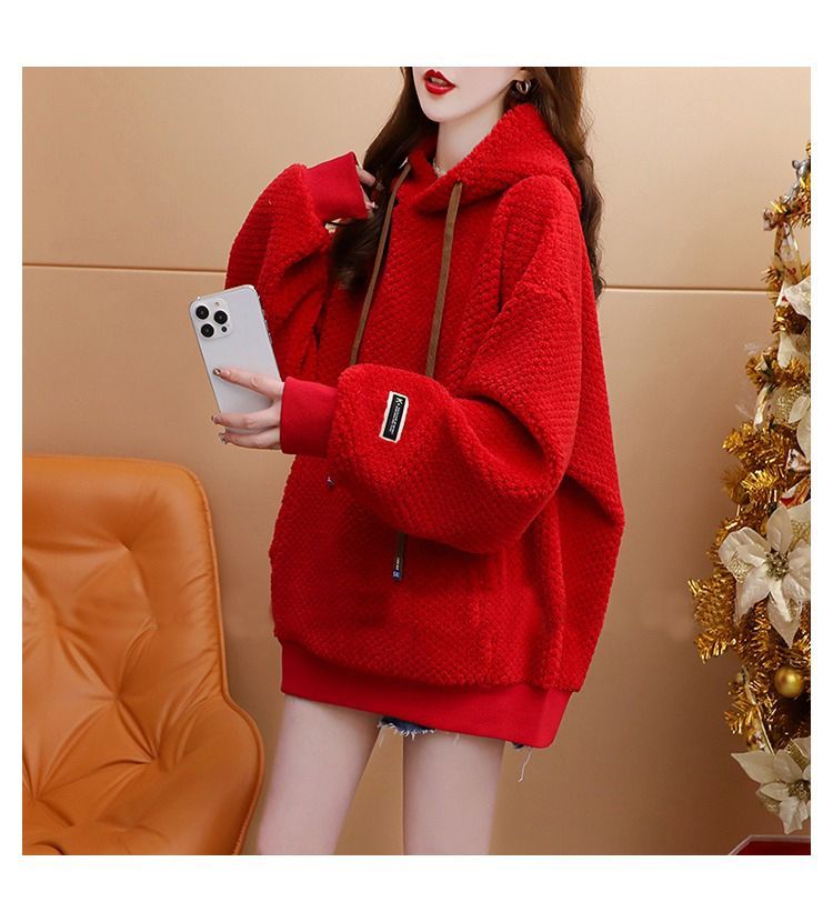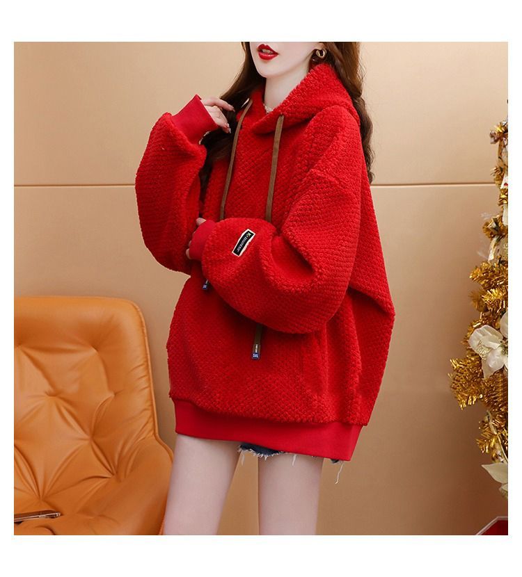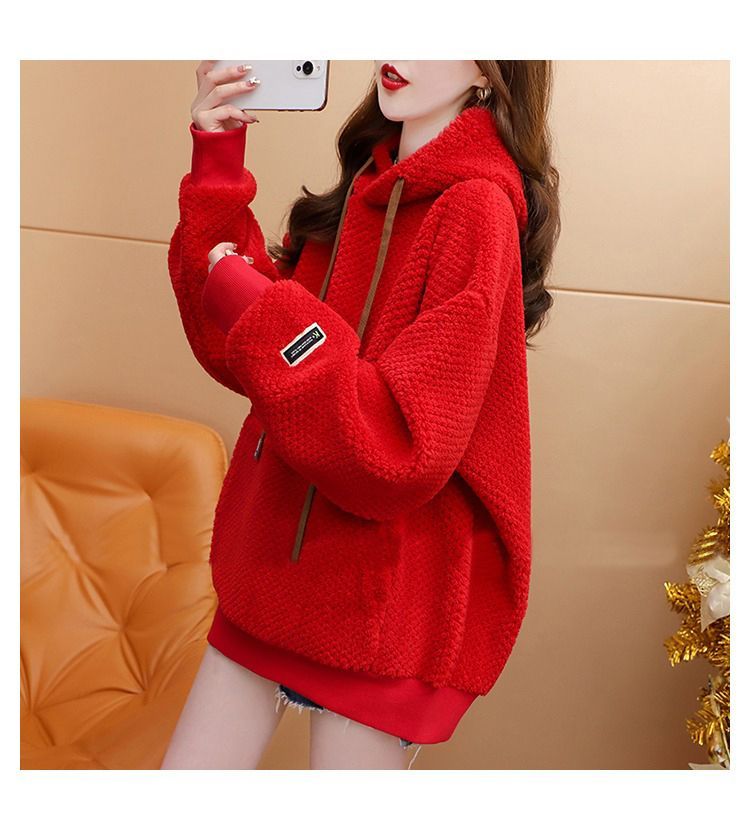 菠萝格复合真超 2025新款秋冬加绒加厚洋气大码连帽卫衣女