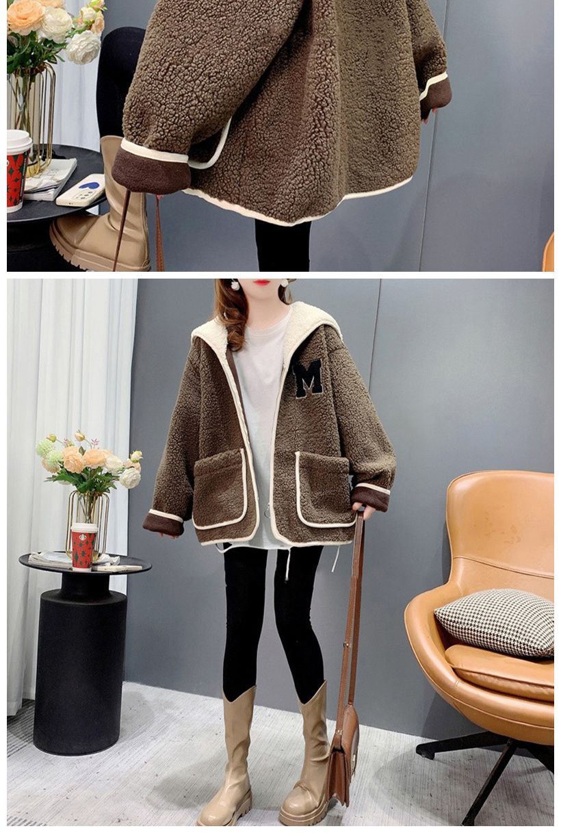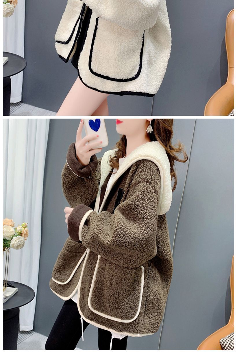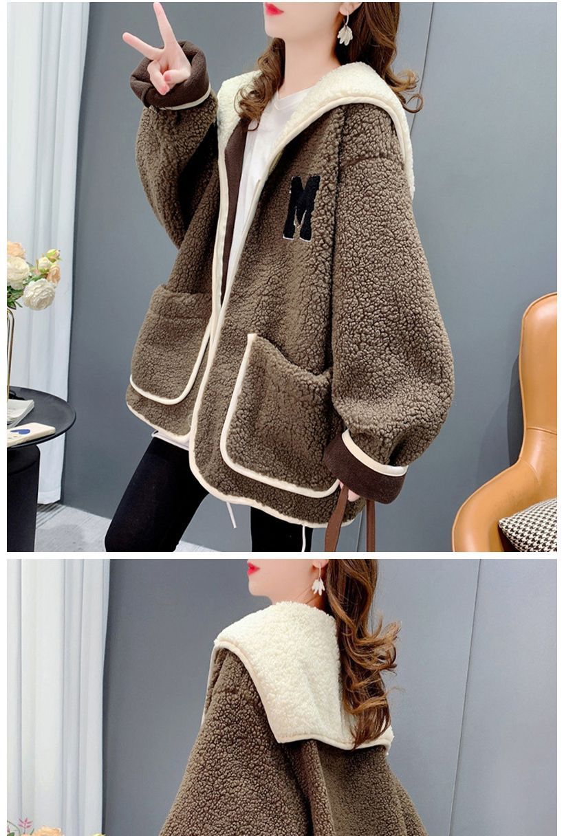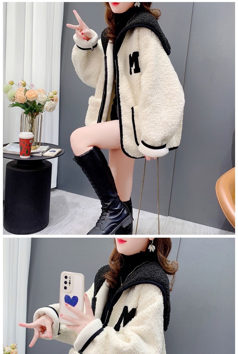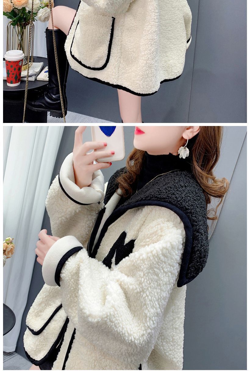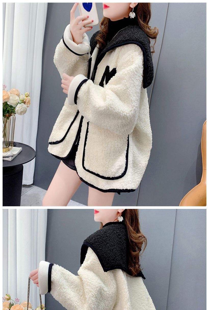 米粒绒复合贝贝绒秋冬加绒海军领拼色设计感外套