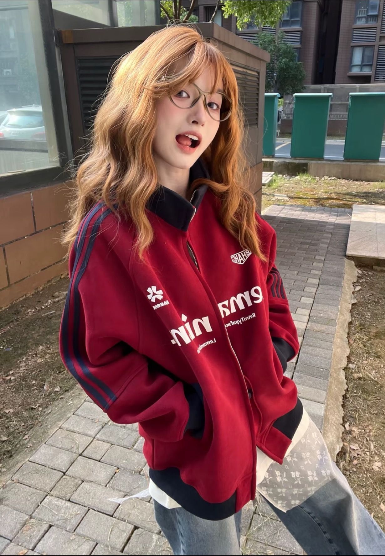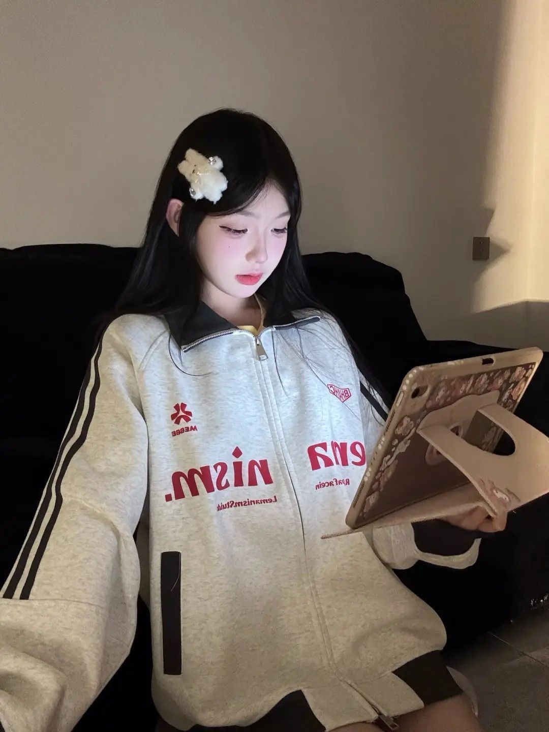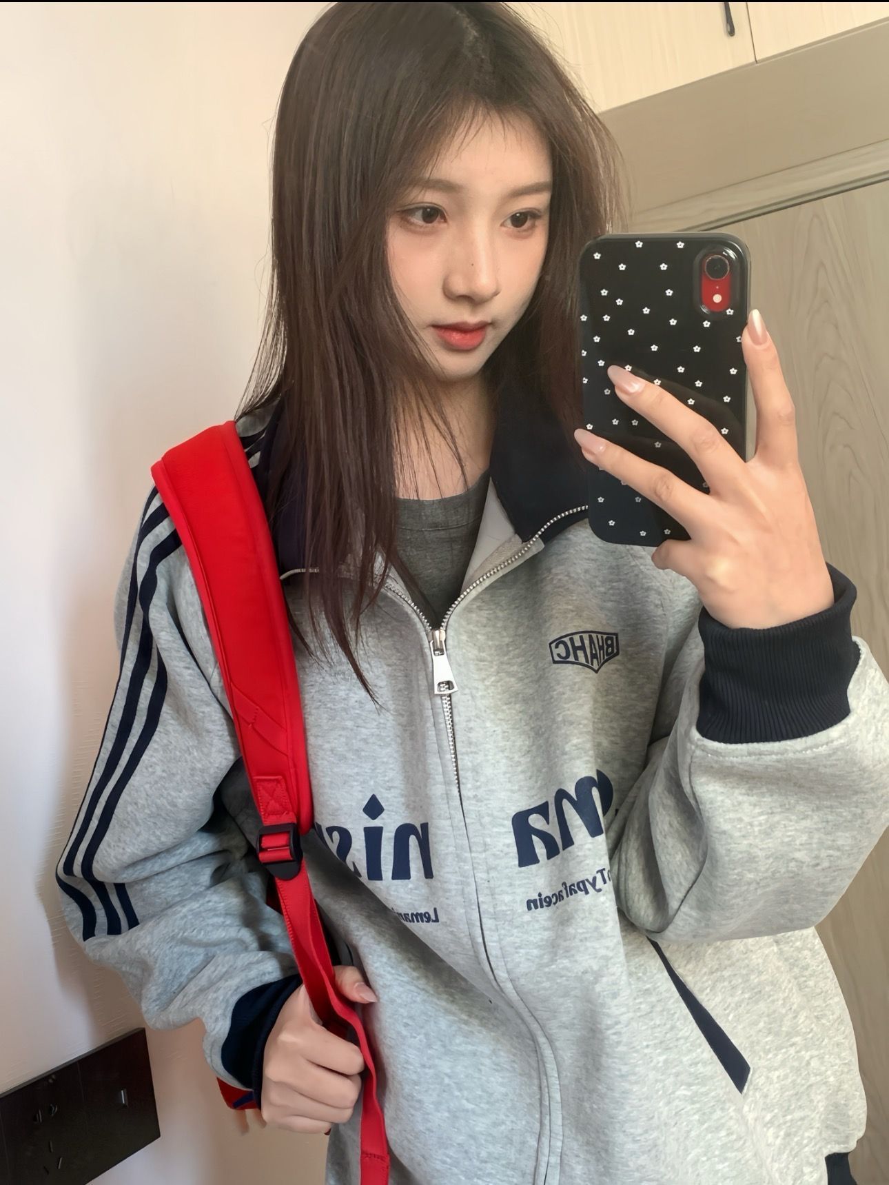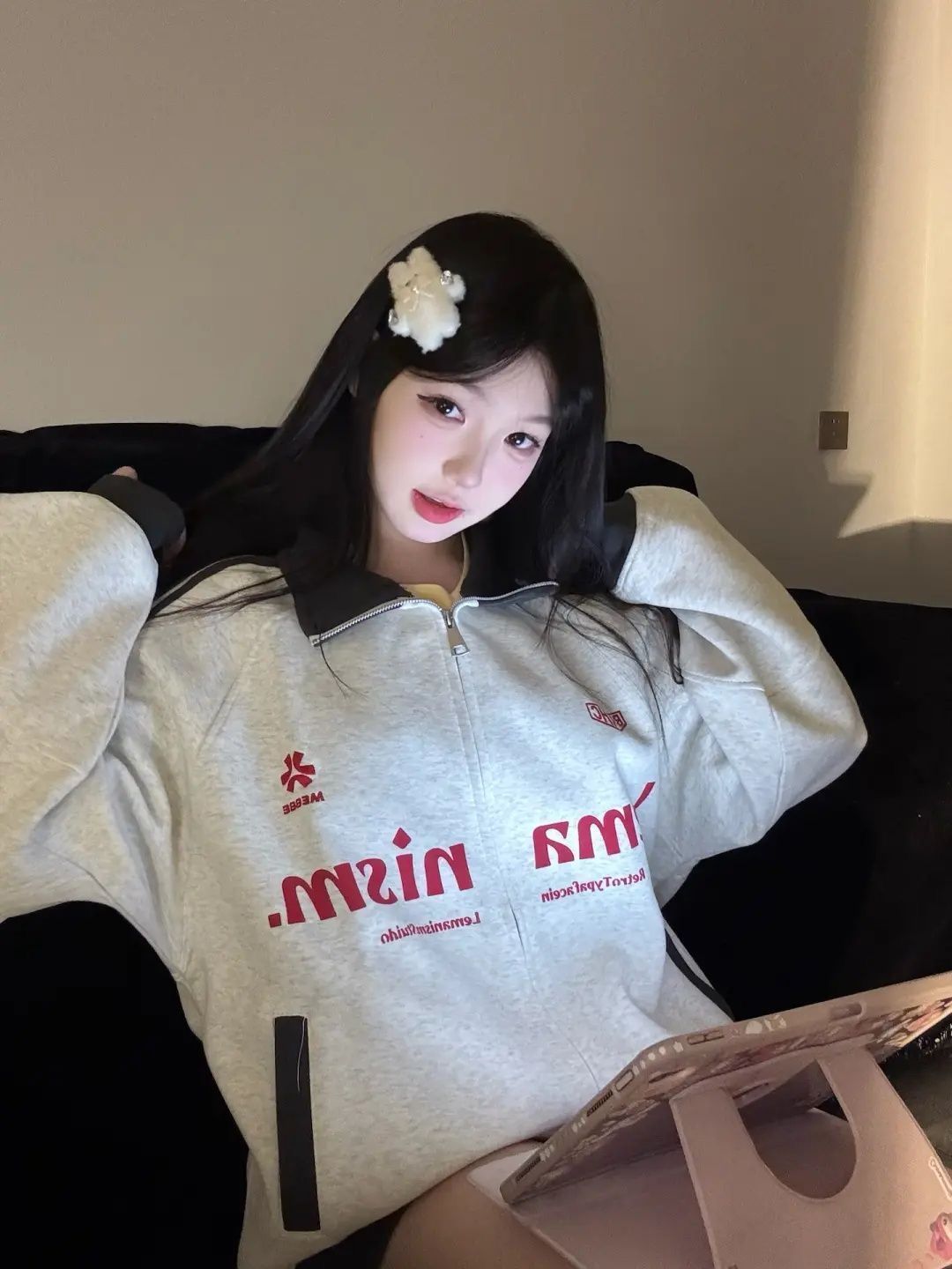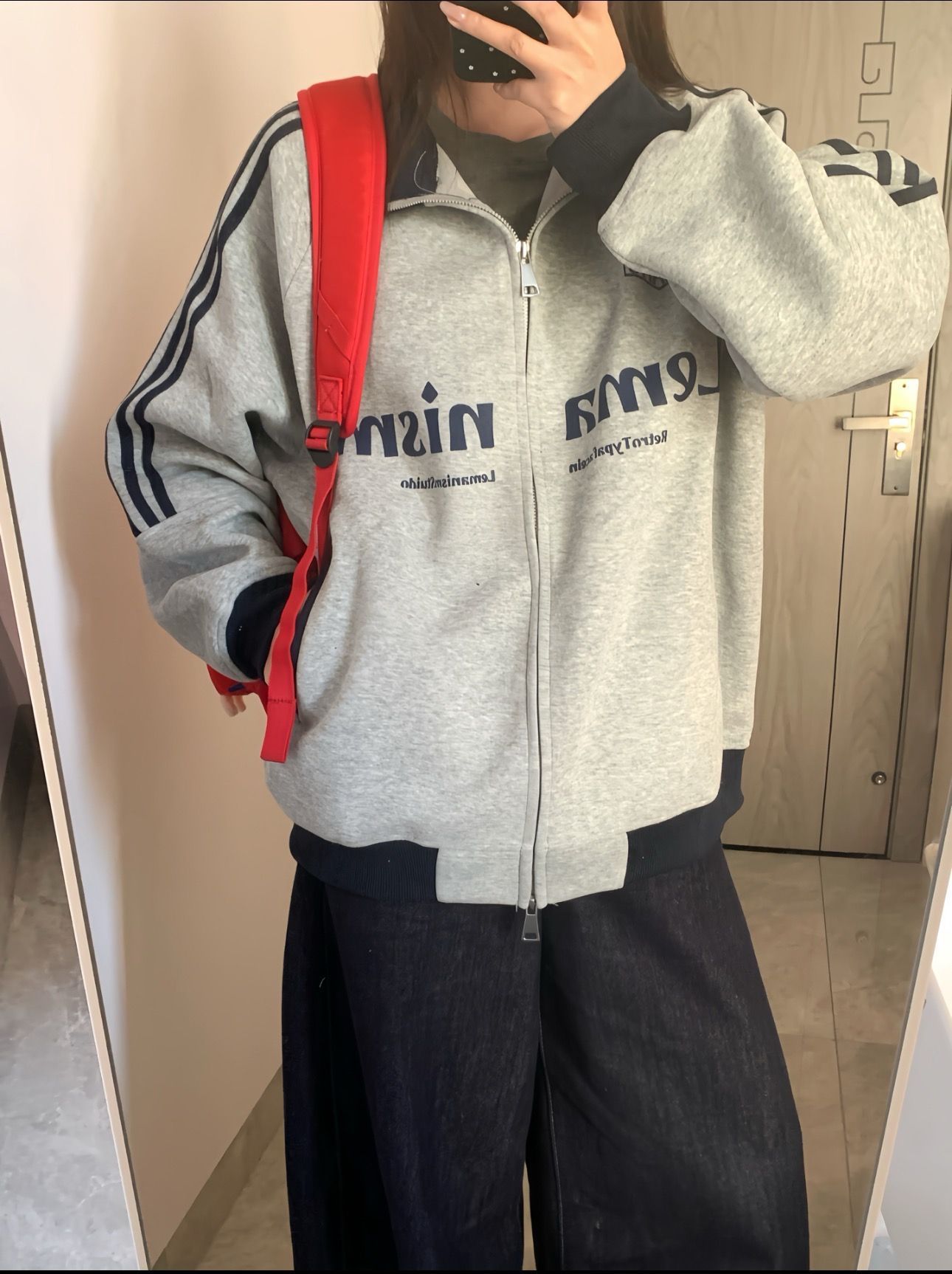 华棉复合牛奶丝春秋薄款学院风拼色设计立领卫衣