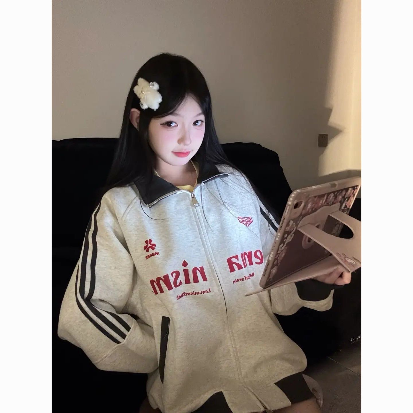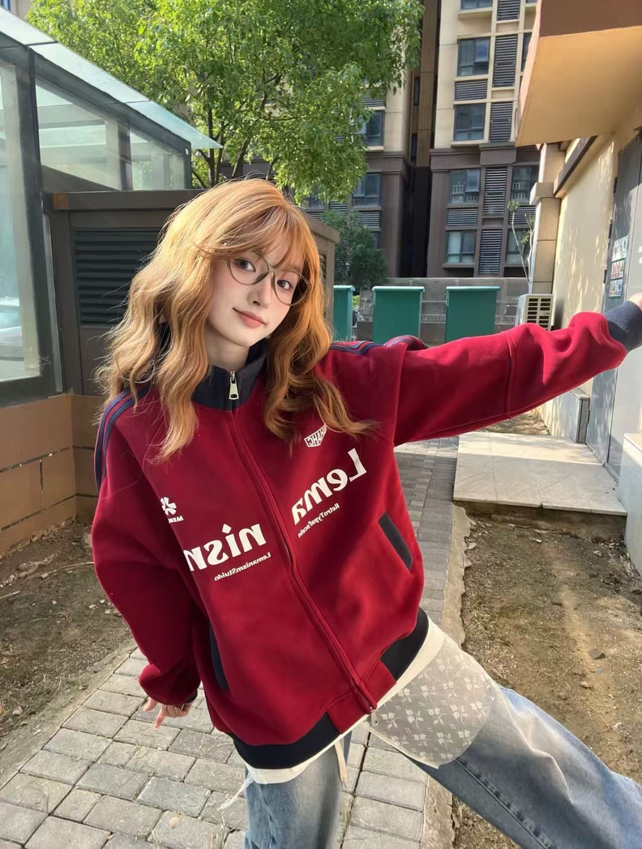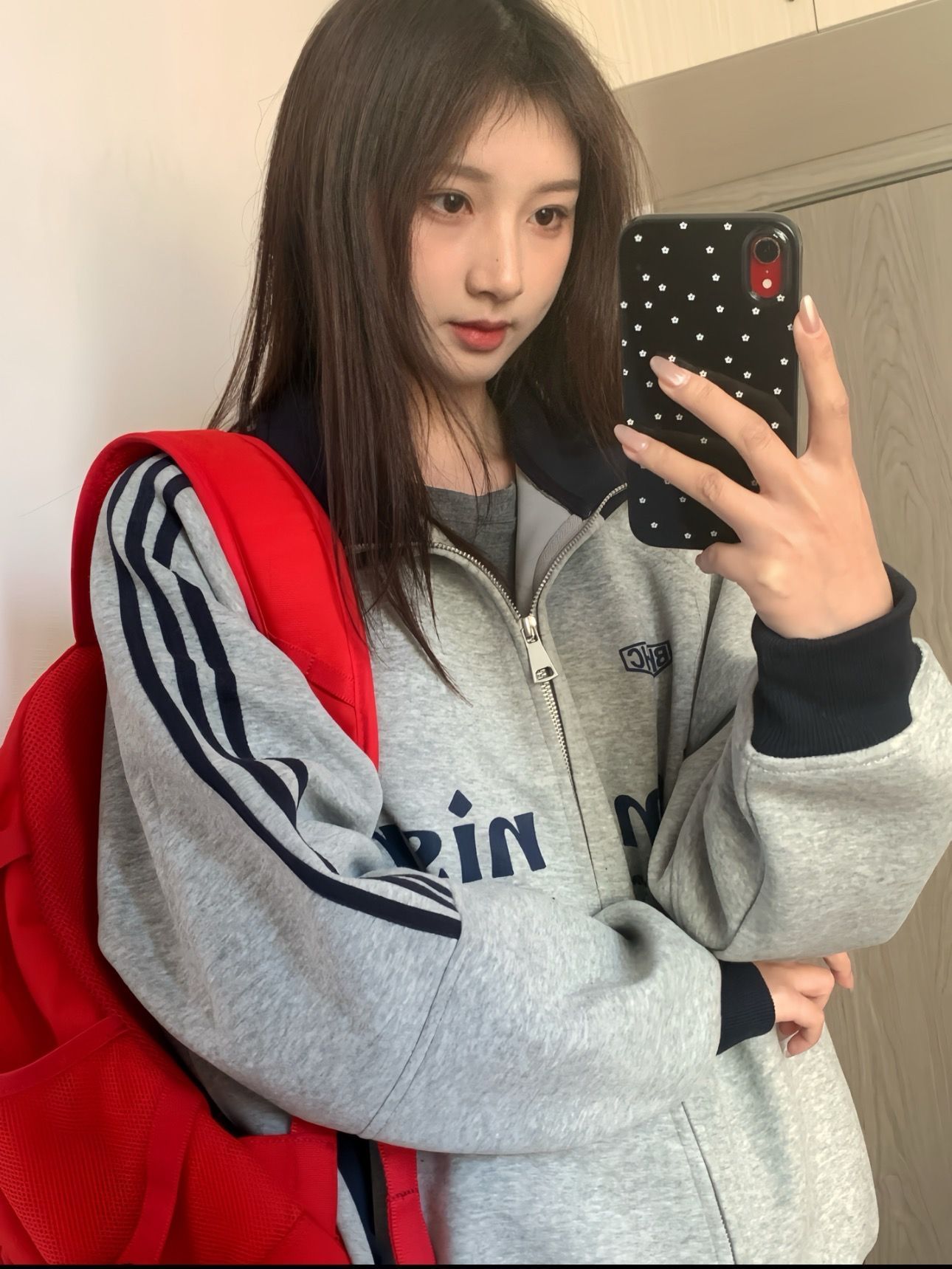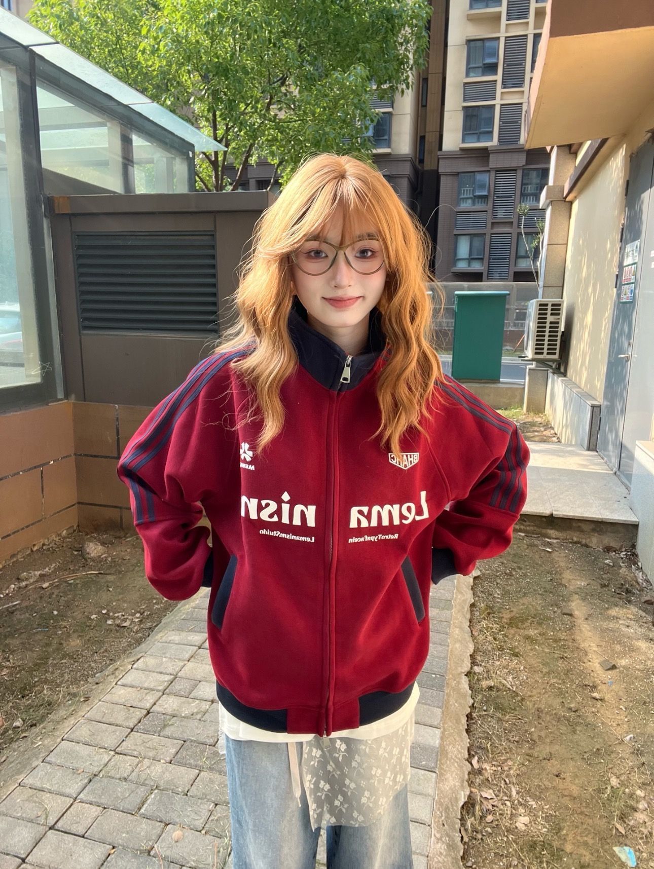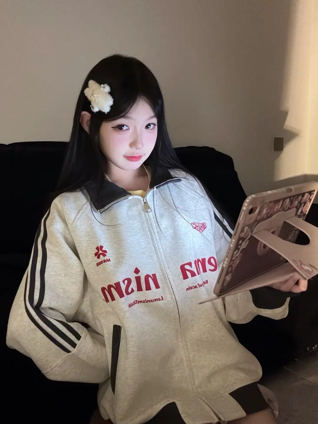 华棉复合牛奶丝春秋薄款学院风拼色设计立领卫衣