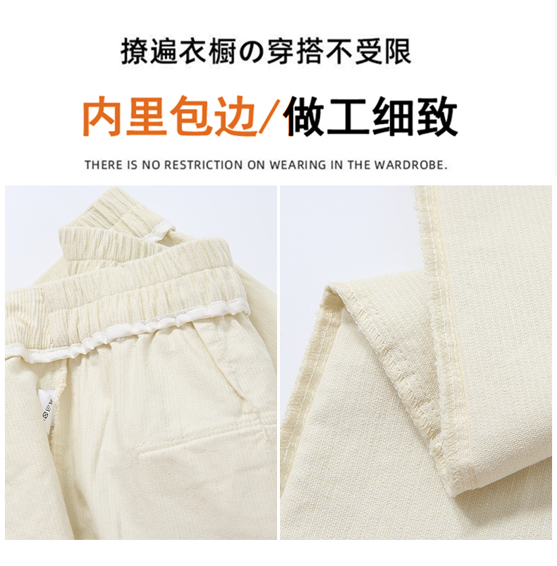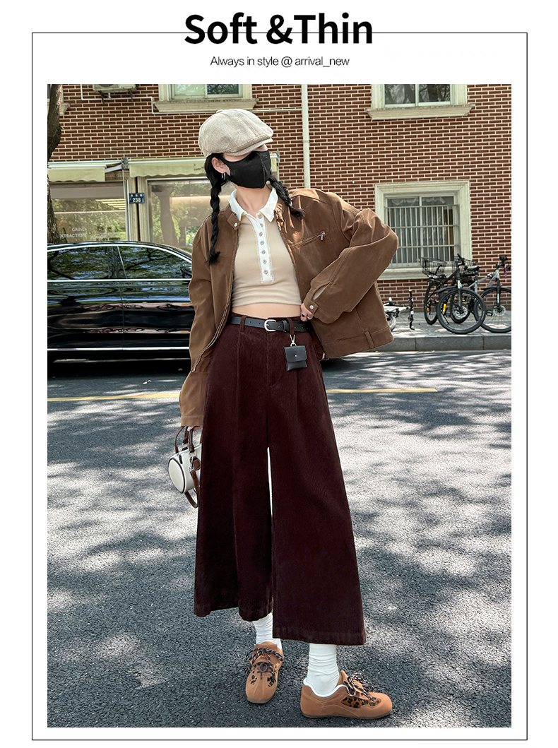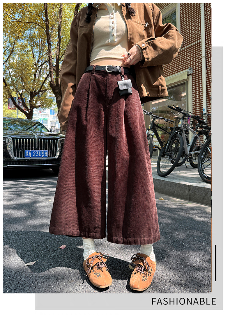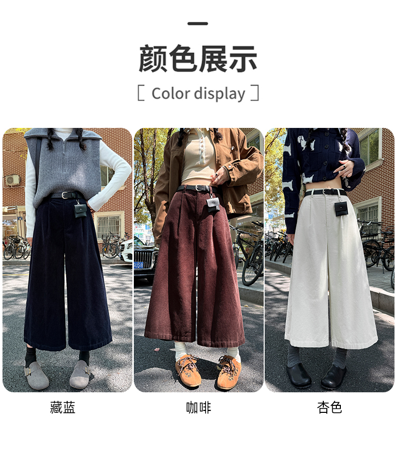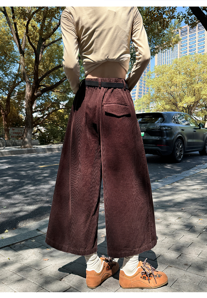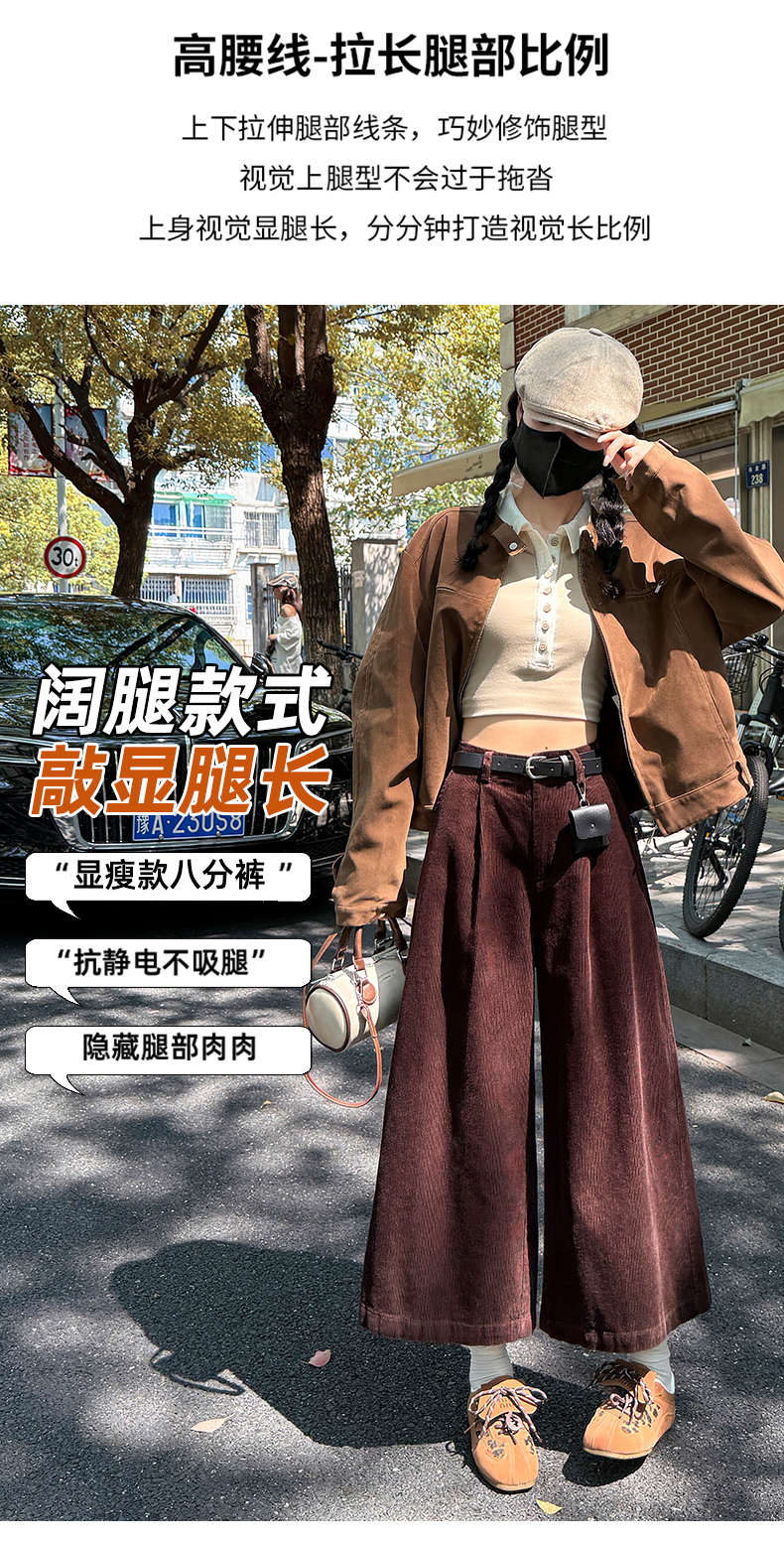 实拍复古灯芯绒阔腿八分裤2025秋季纯色百搭半松紧腰头显瘦休闲裤