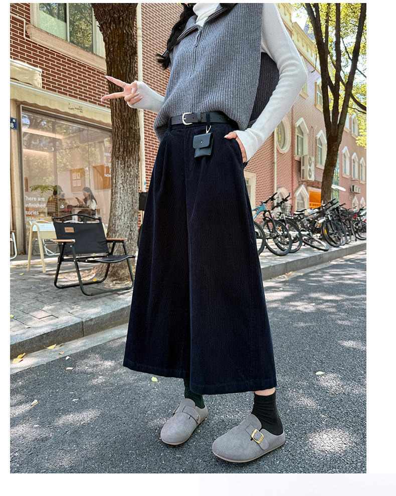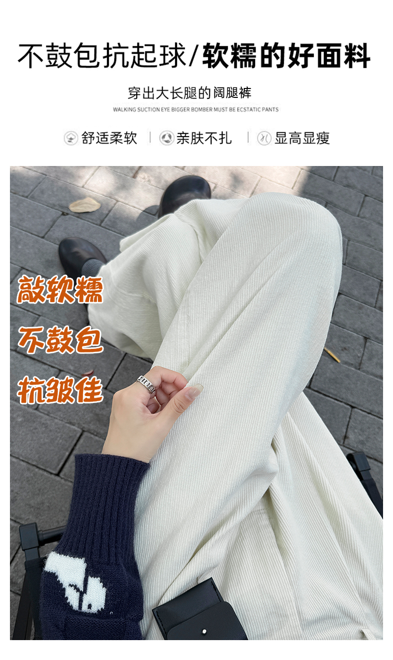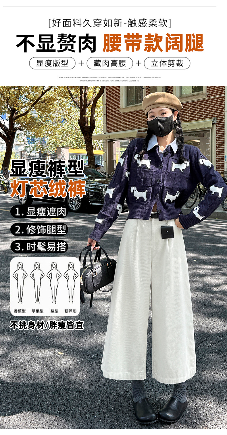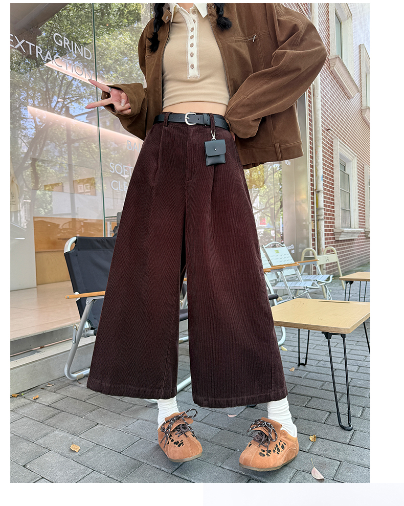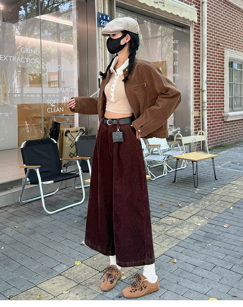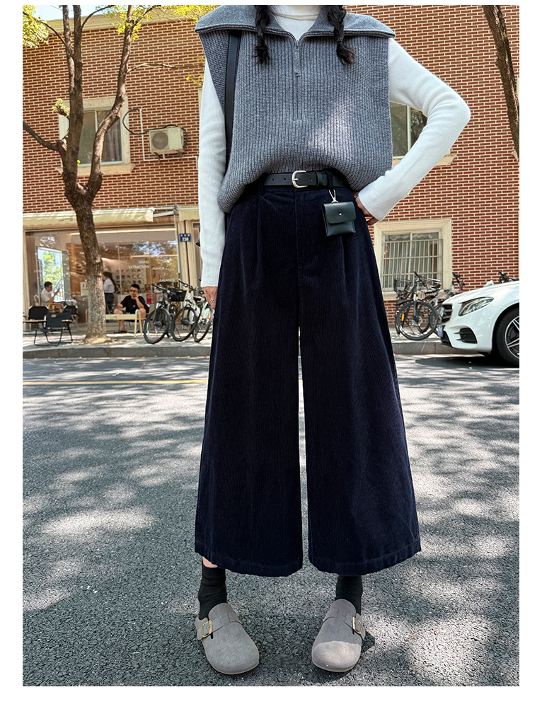 实拍复古灯芯绒阔腿八分裤2025秋季纯色百搭半松紧腰头显瘦休闲裤