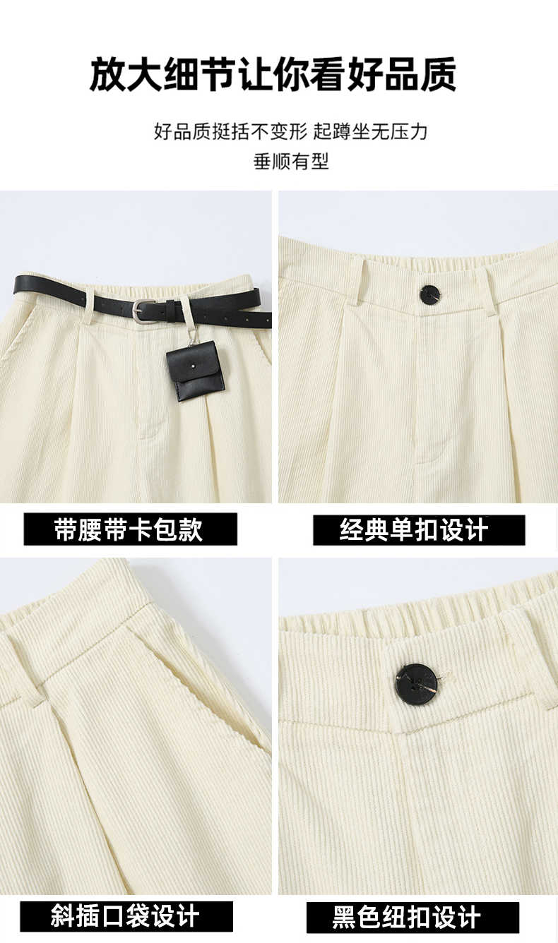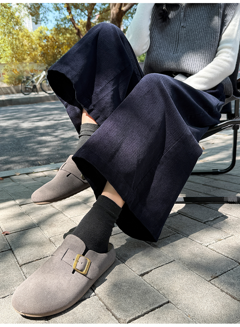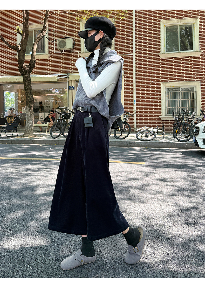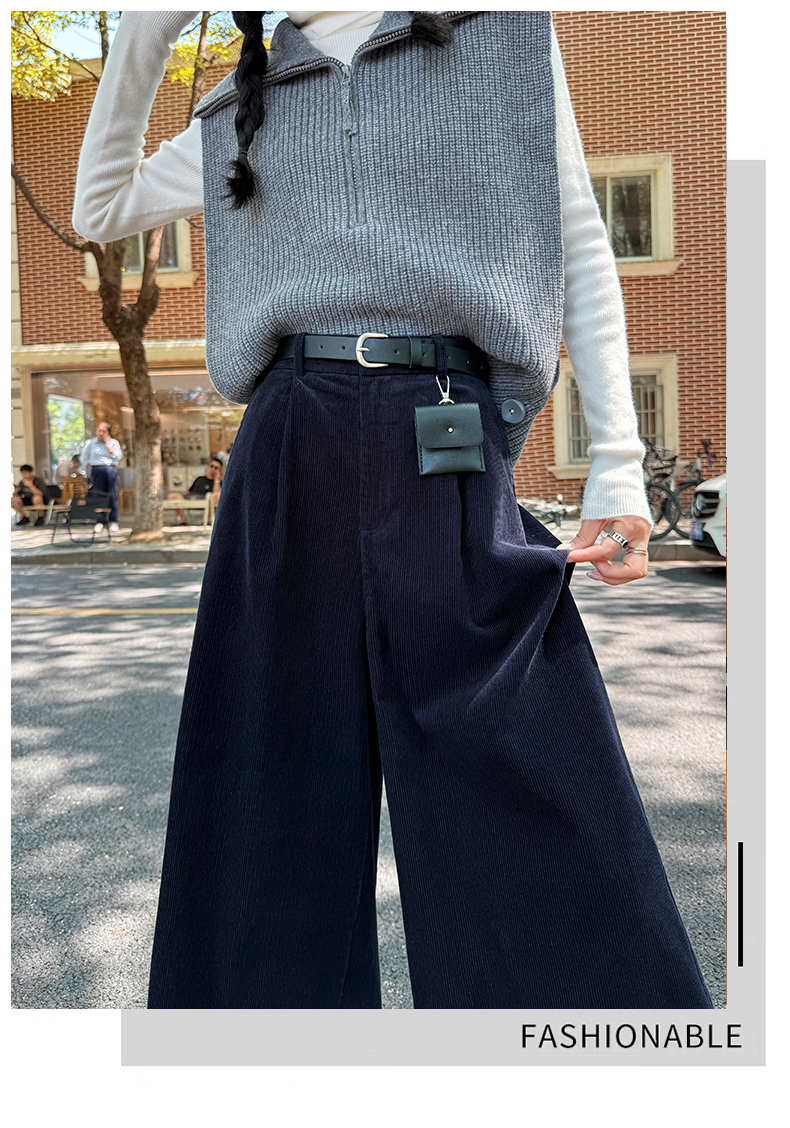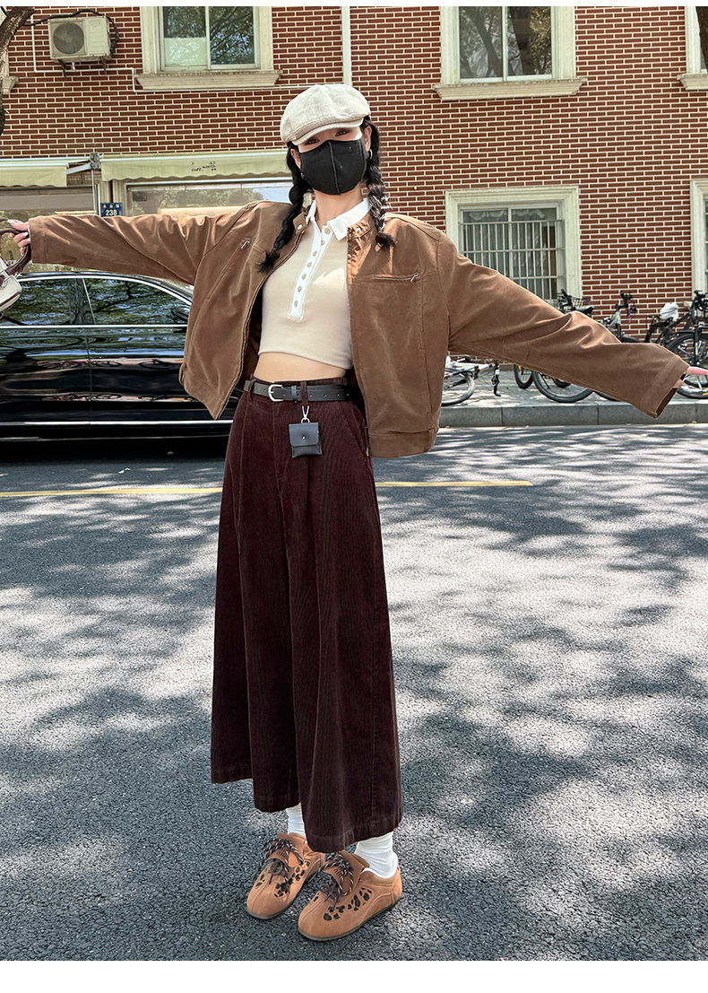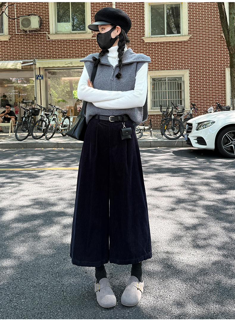 实拍复古灯芯绒阔腿八分裤2025秋季纯色百搭半松紧腰头显瘦休闲裤