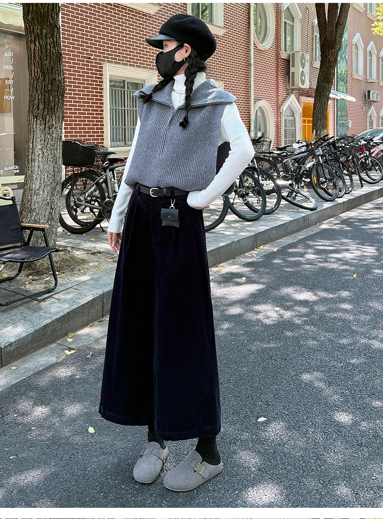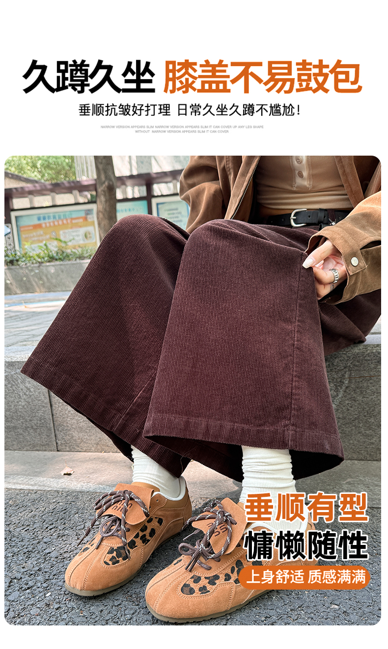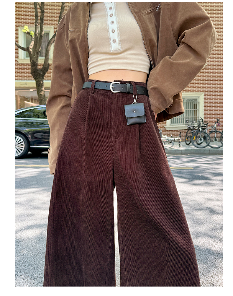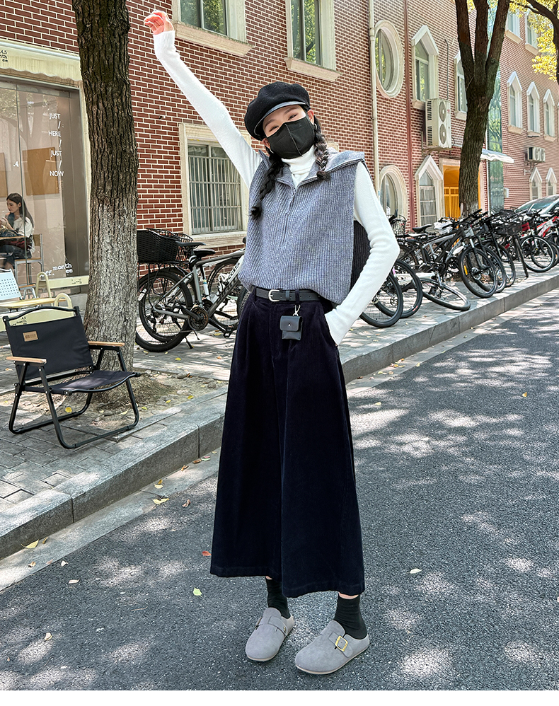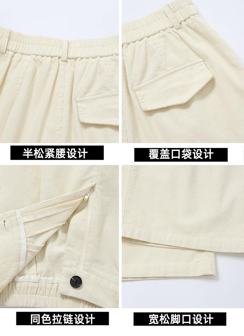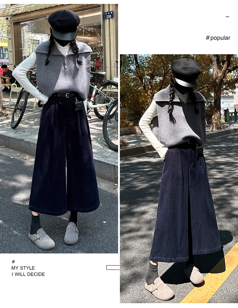 实拍复古灯芯绒阔腿八分裤2025秋季纯色百搭半松紧腰头显瘦休闲裤