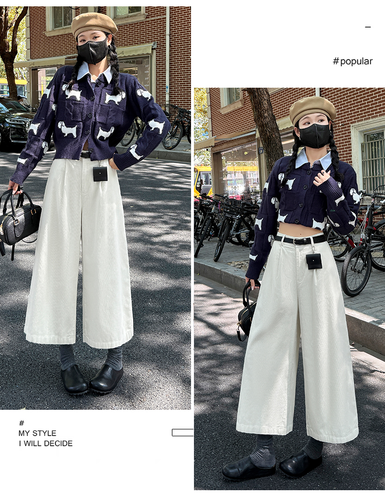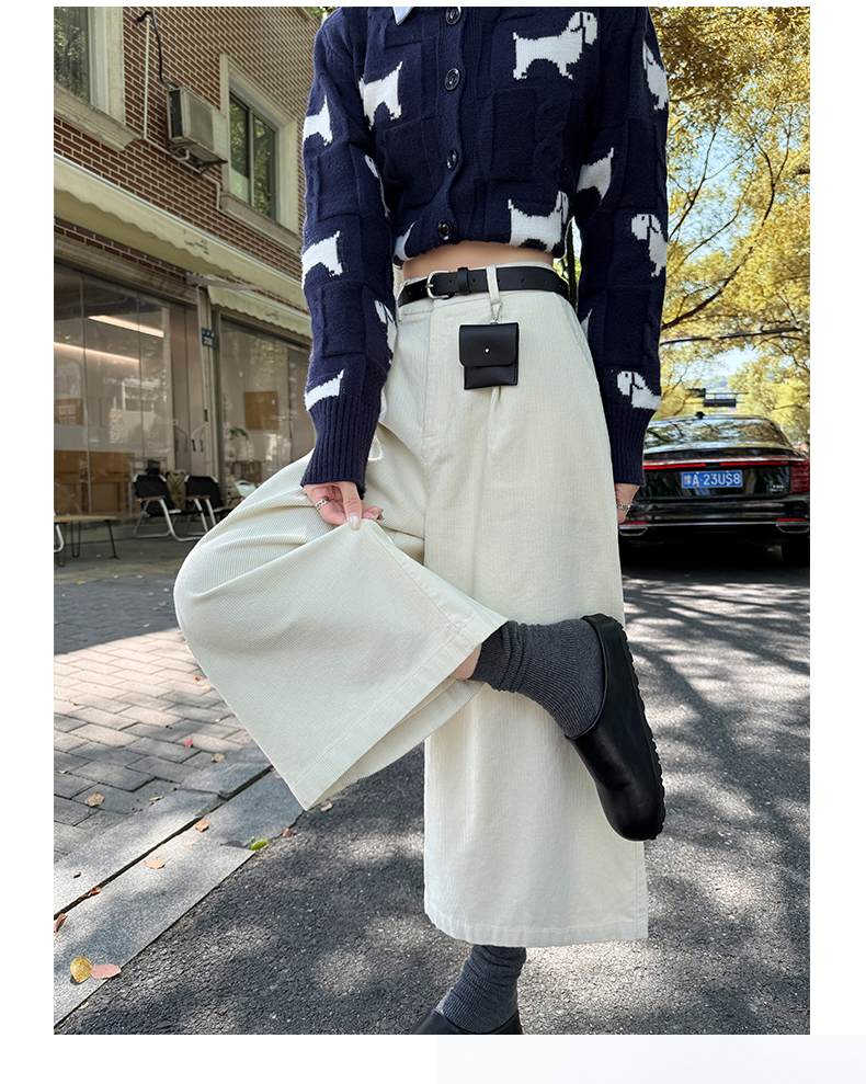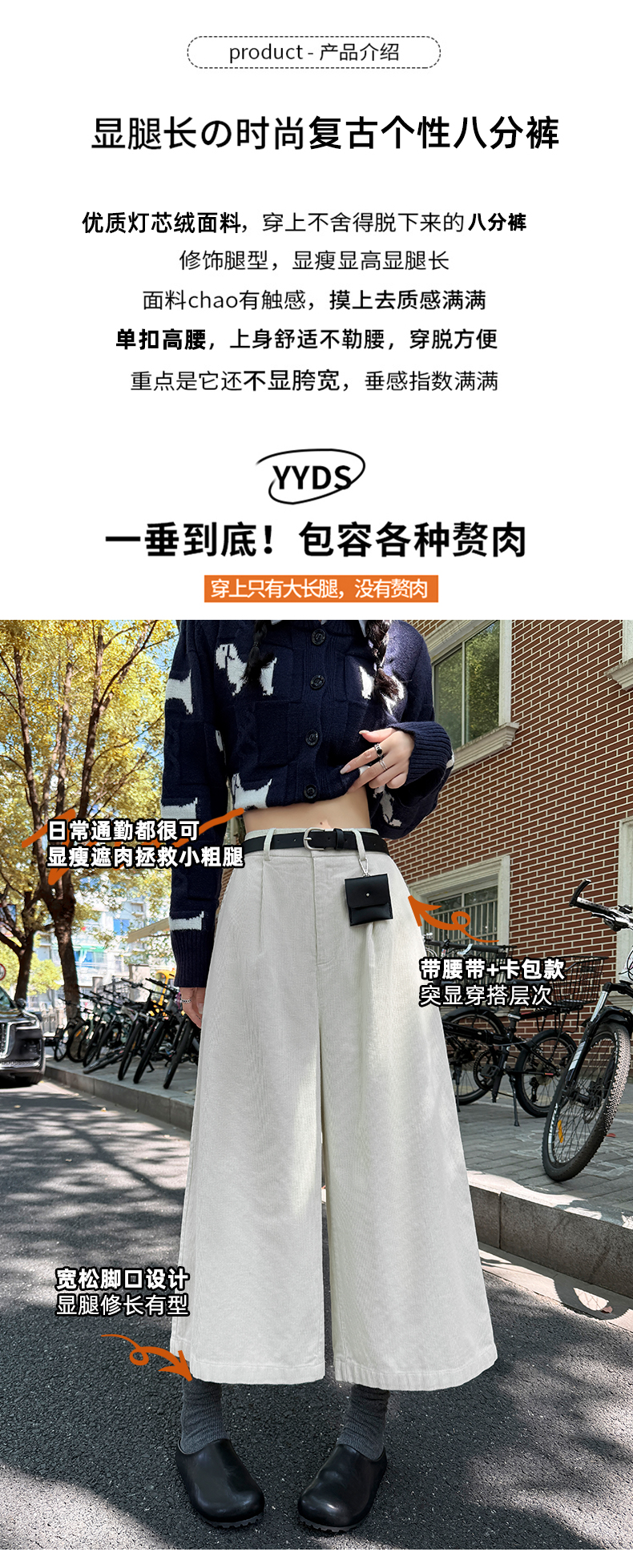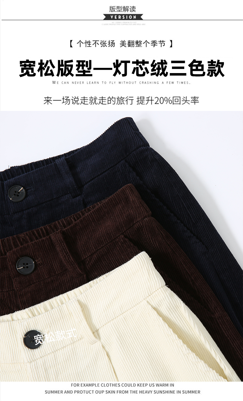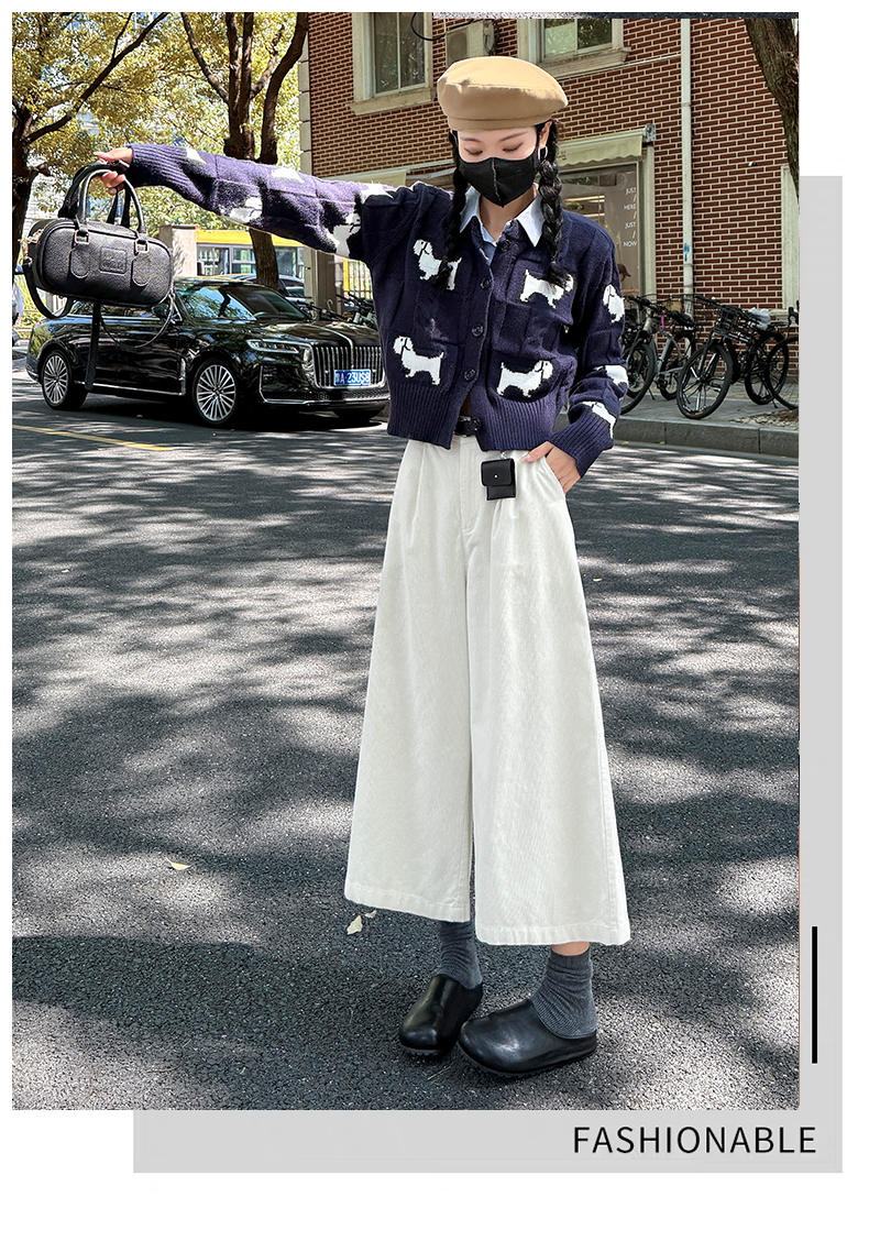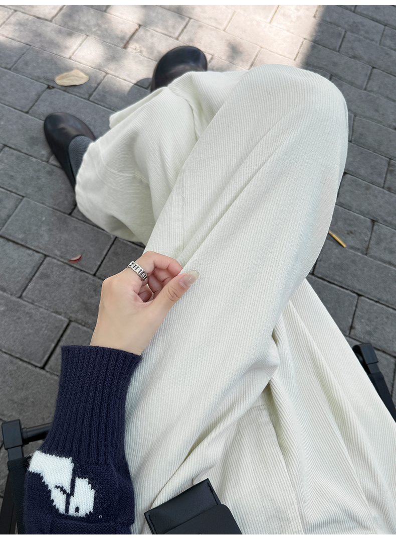 实拍复古灯芯绒阔腿八分裤2025秋季纯色百搭半松紧腰头显瘦休闲裤