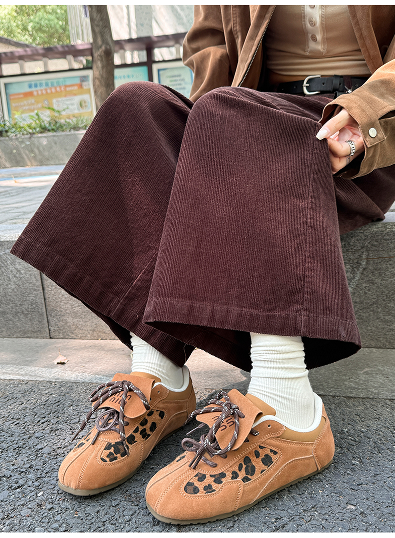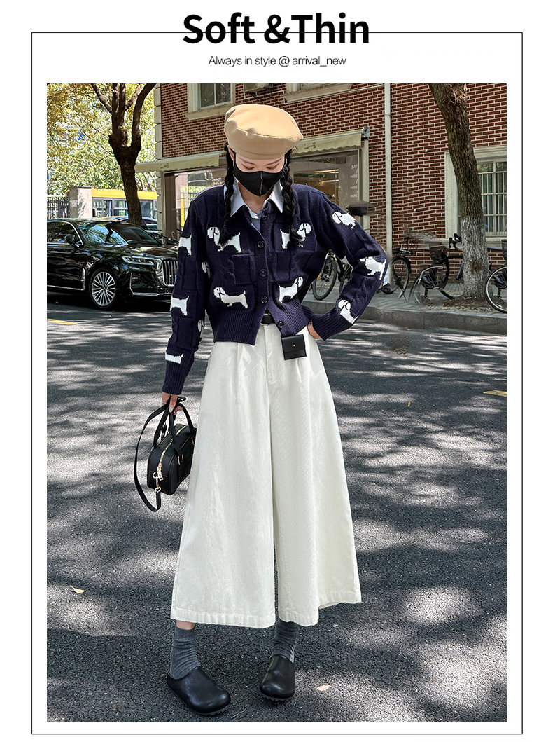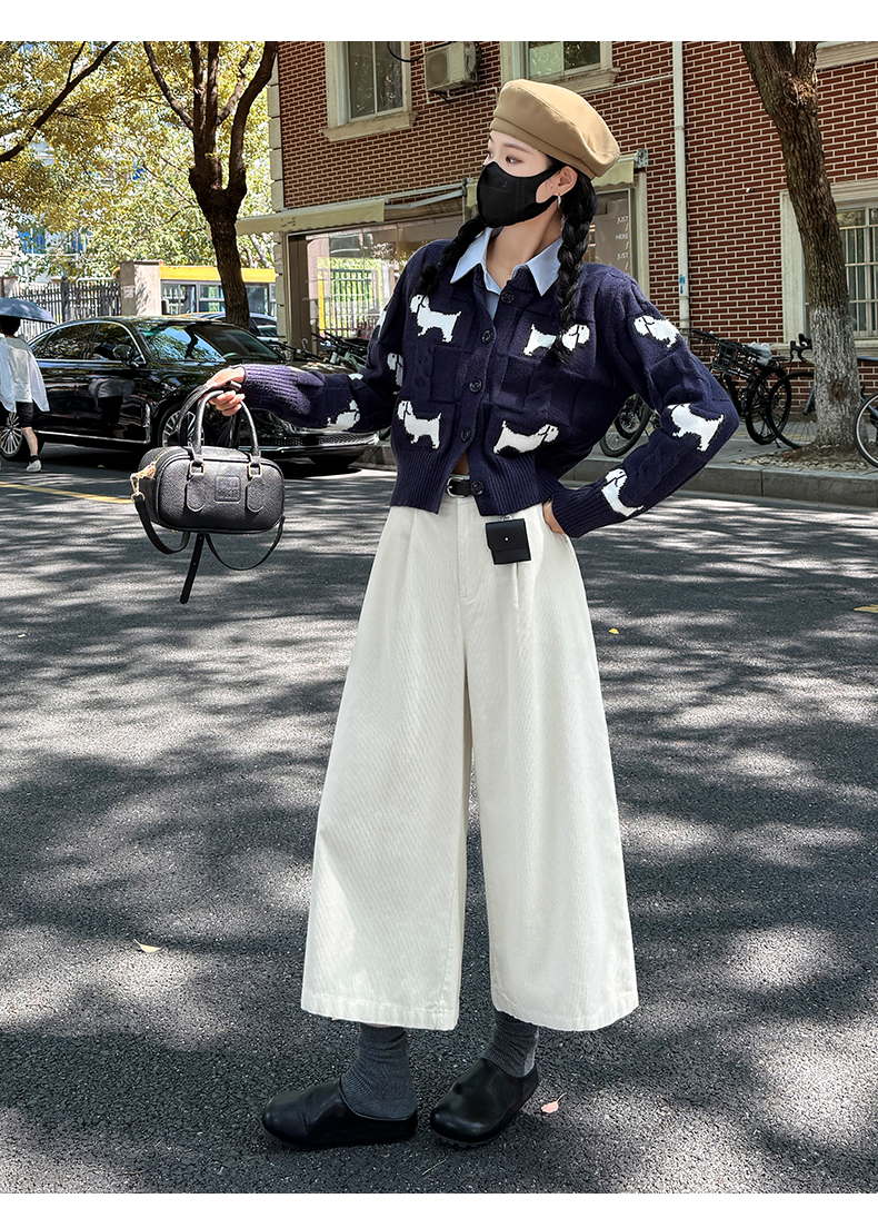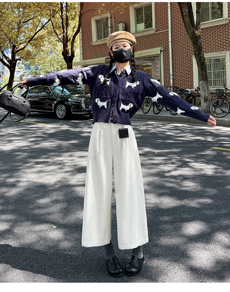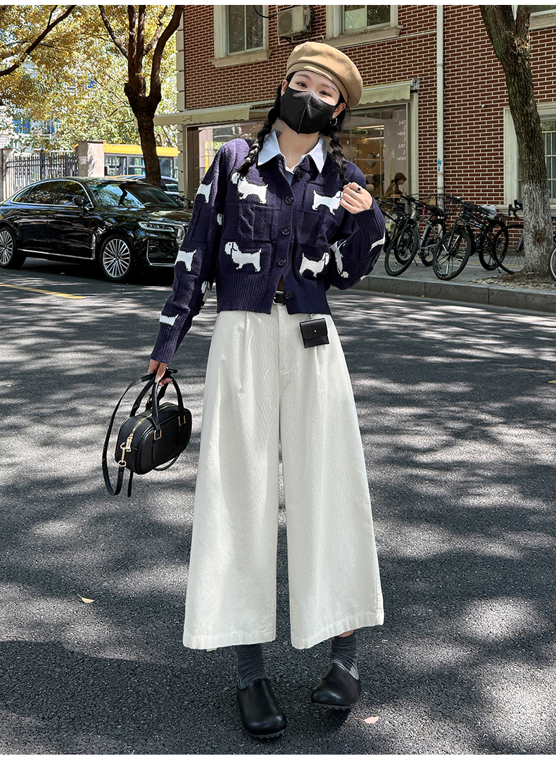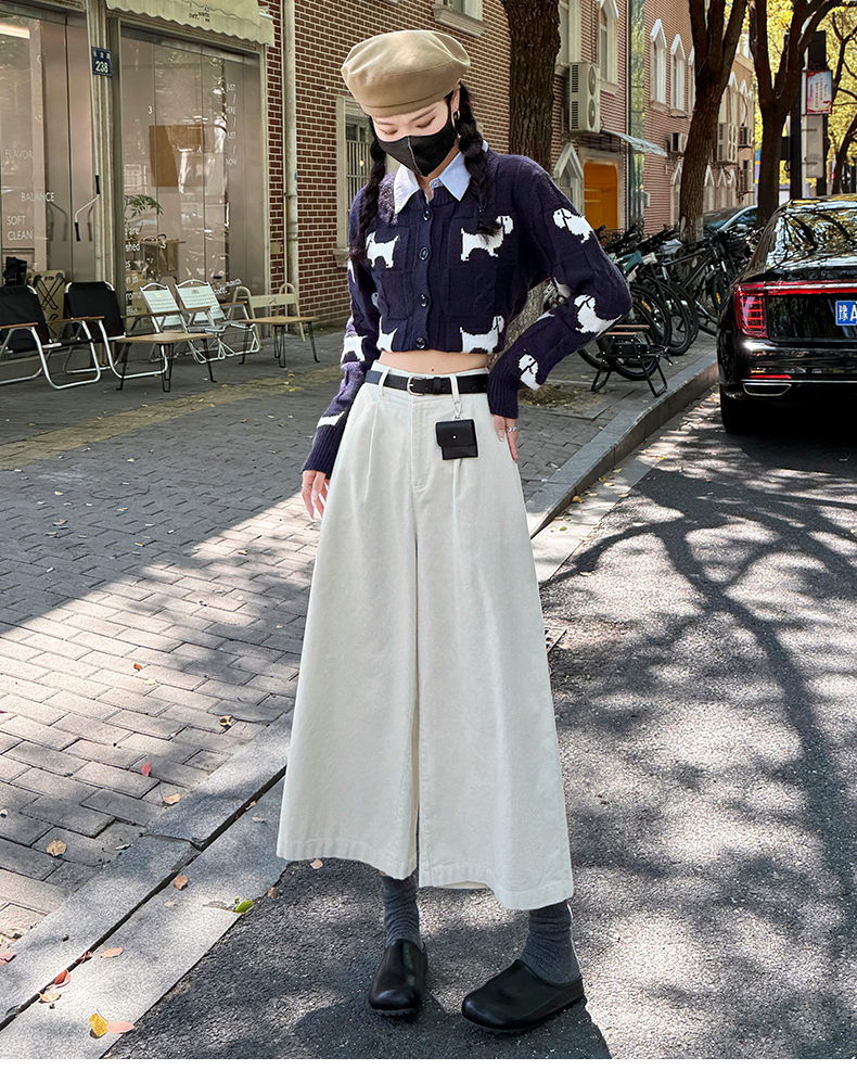 实拍复古灯芯绒阔腿八分裤2025秋季纯色百搭半松紧腰头显瘦休闲裤