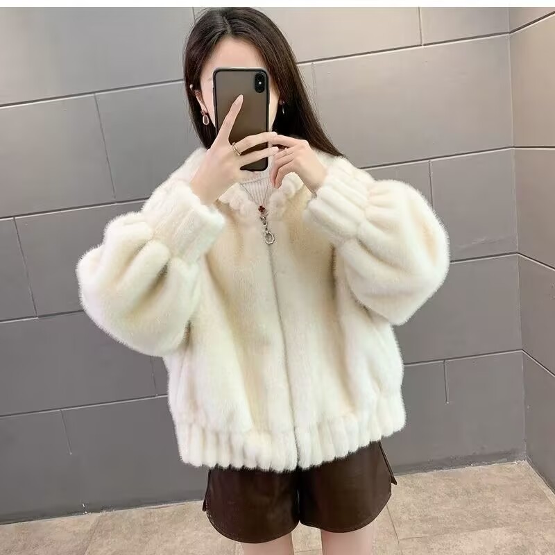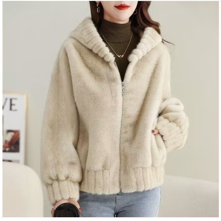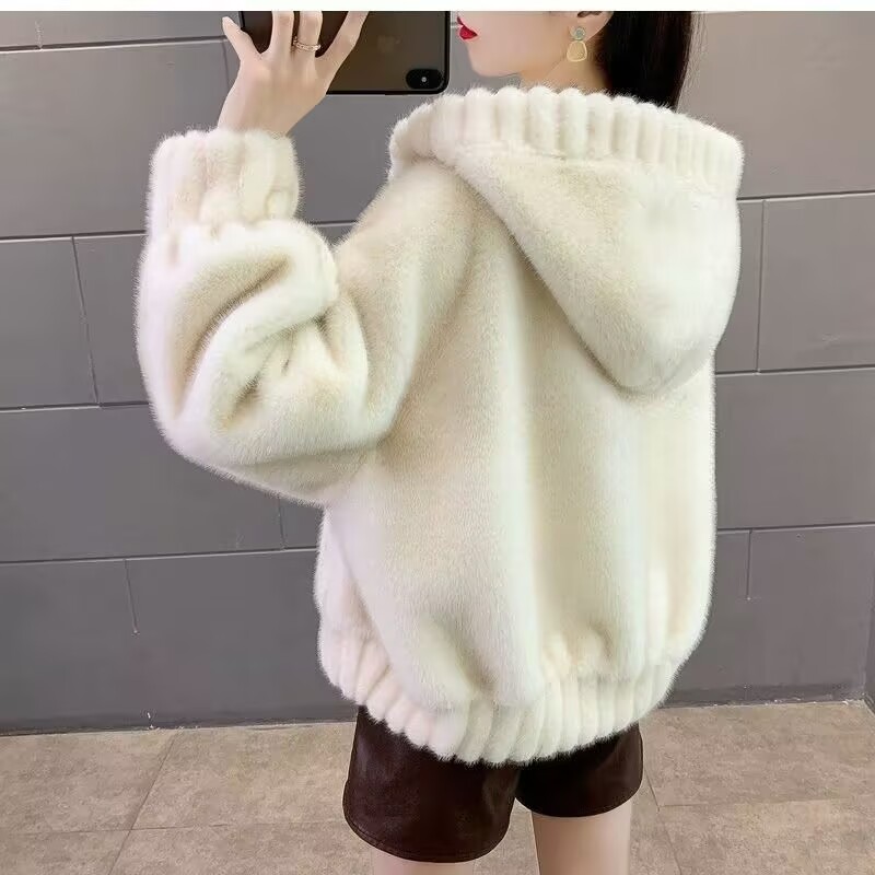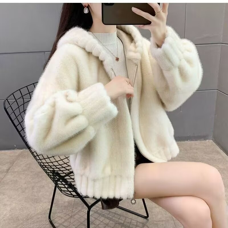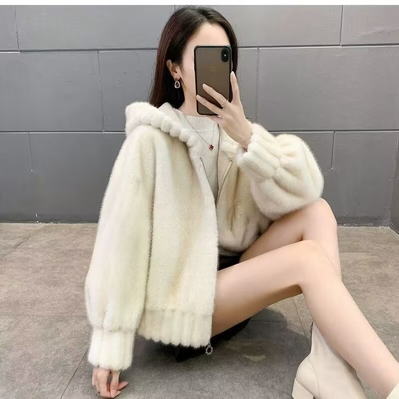 冬季新款皮草2025外套短款水貂皮毛一体连帽加厚小个子时尚毛毛