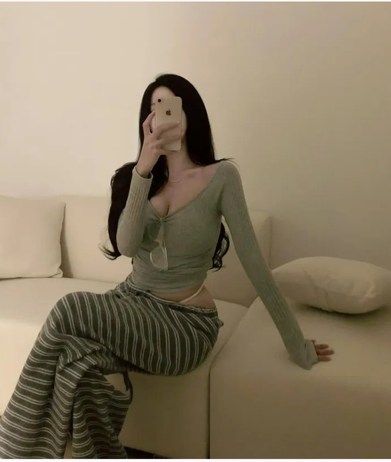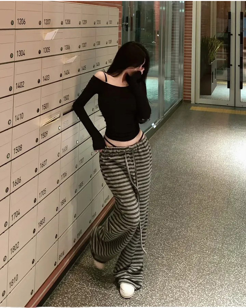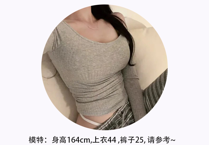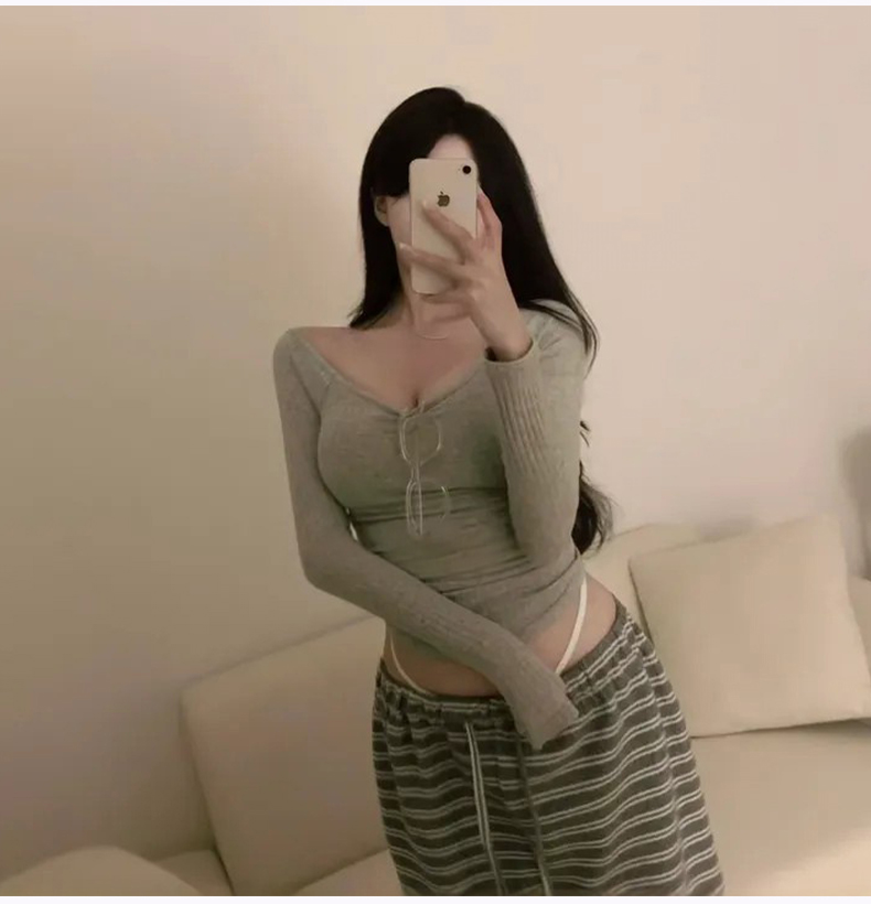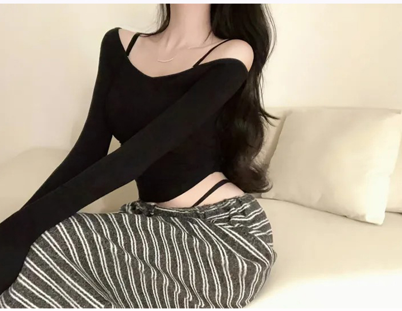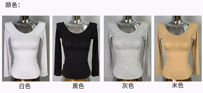 韩国东大门新品 纯欲显身材 性感女人味露肩长袖T恤上衣