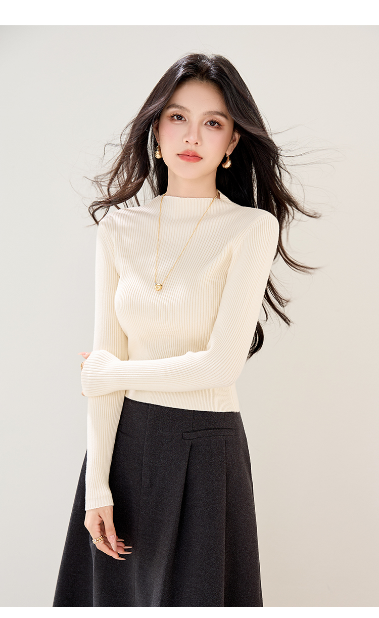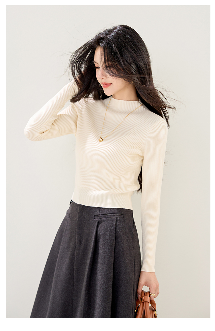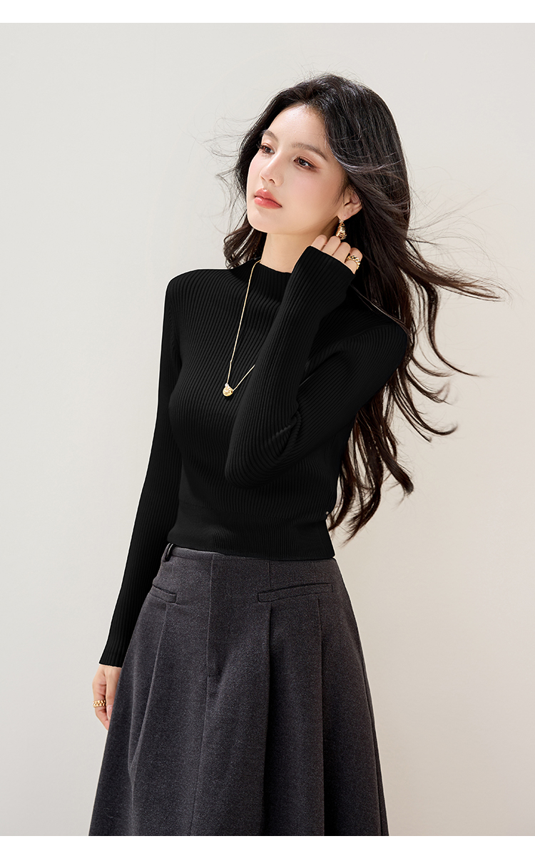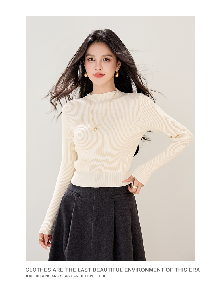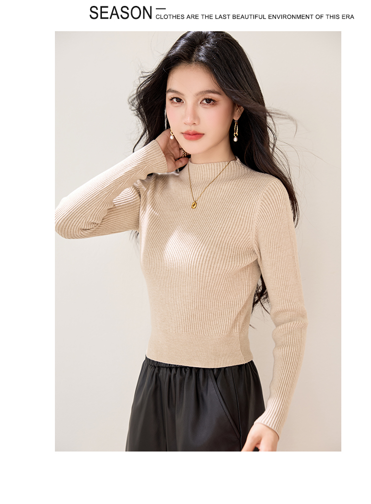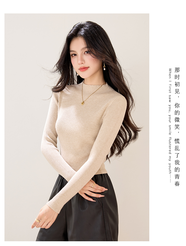 实拍新款针织衫女内搭套头半高领修身打底衫韩版长袖纯色紧身毛衣
