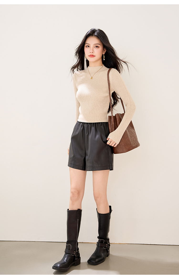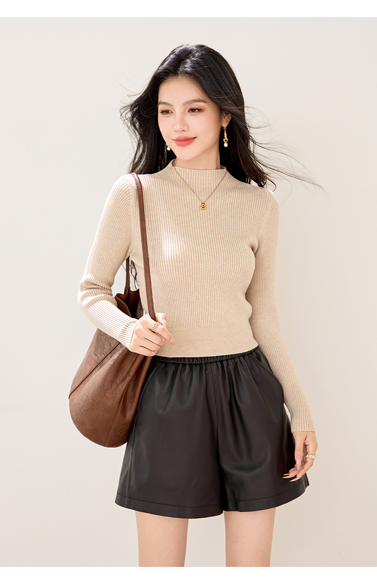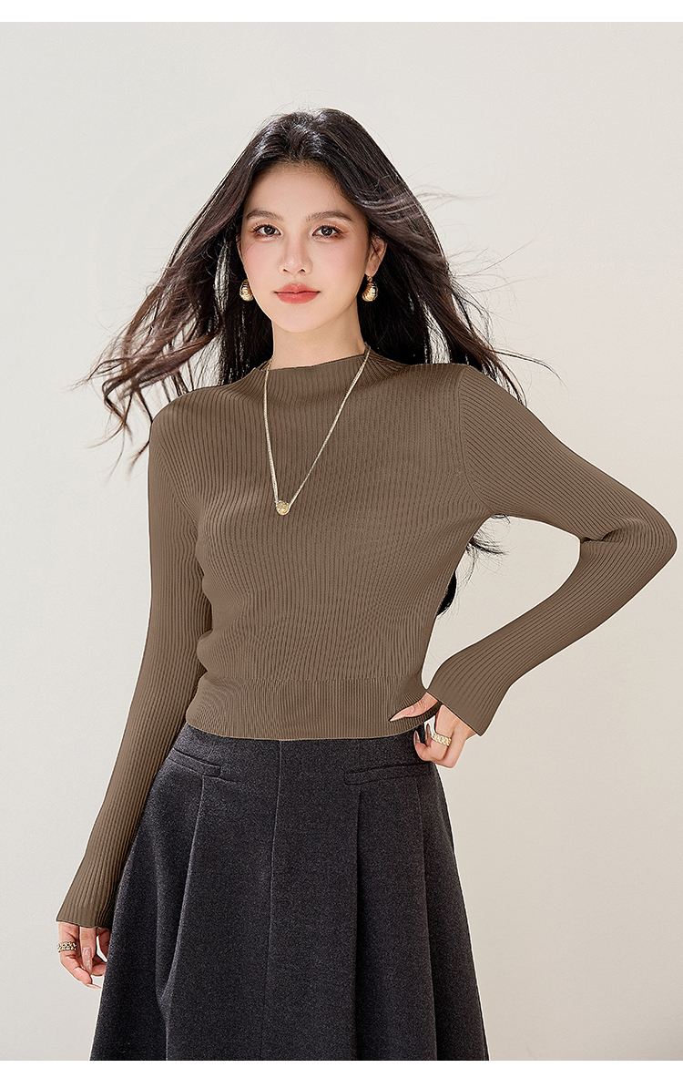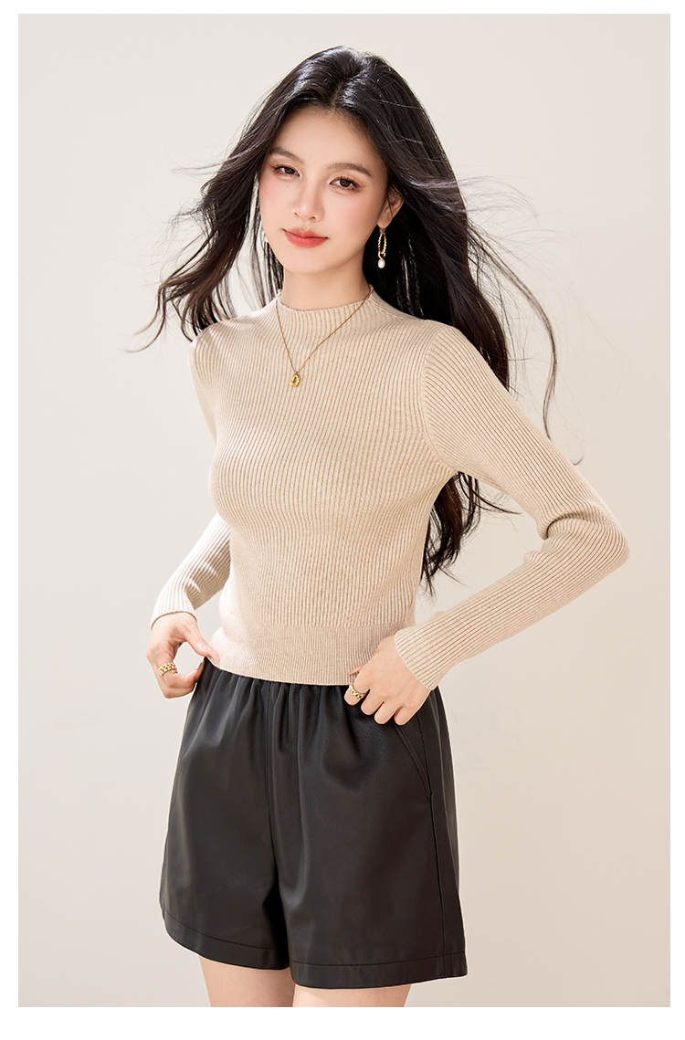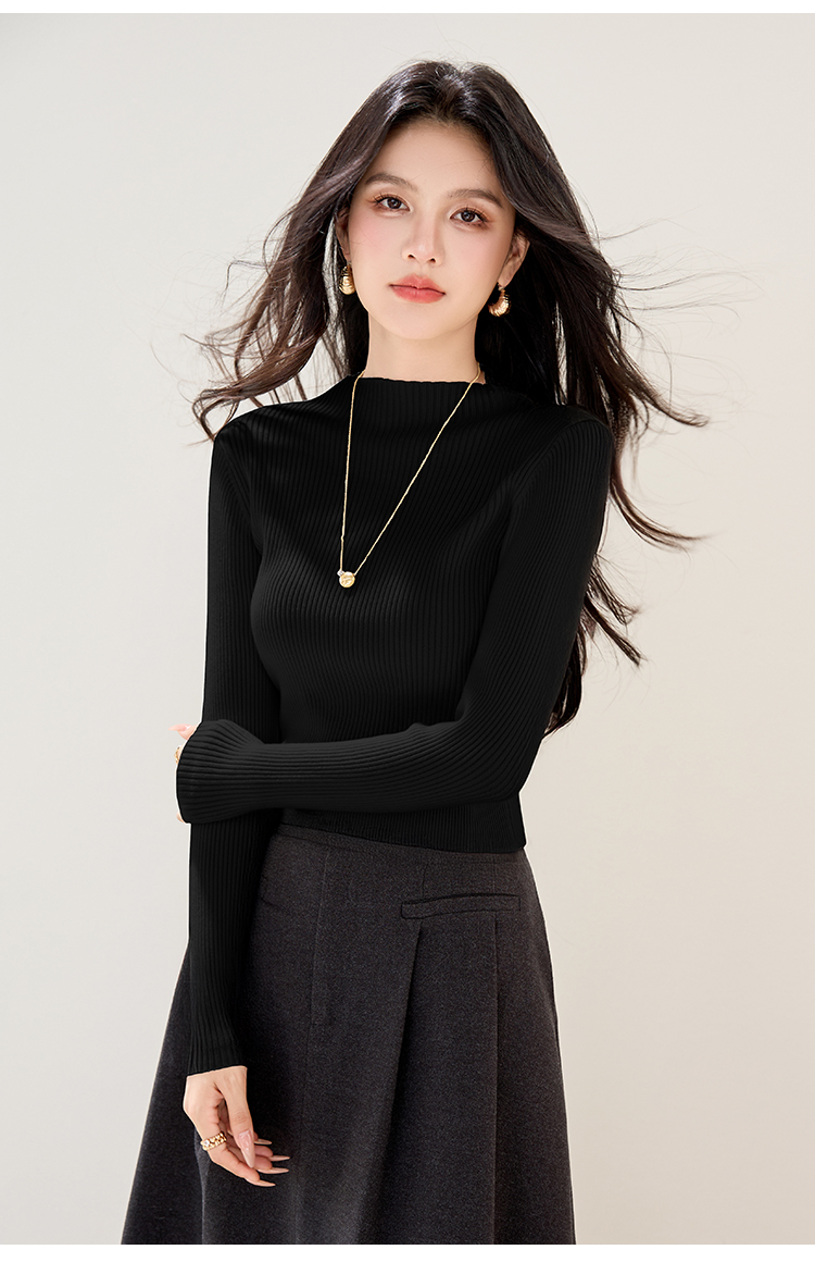 实拍新款针织衫女内搭套头半高领修身打底衫韩版长袖纯色紧身毛衣
