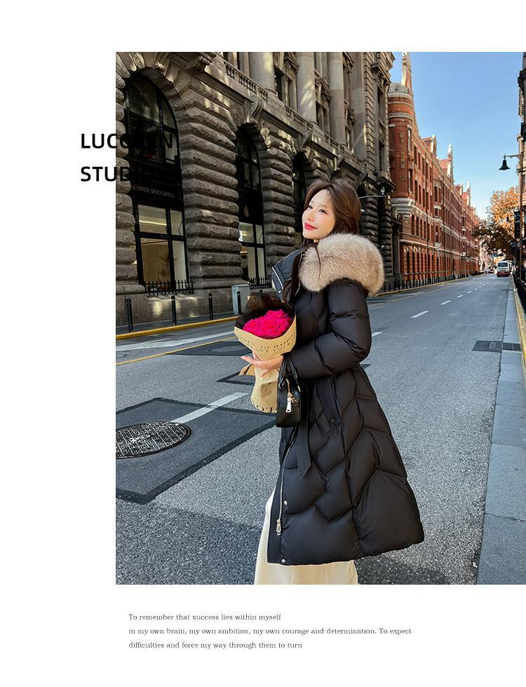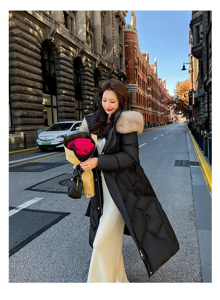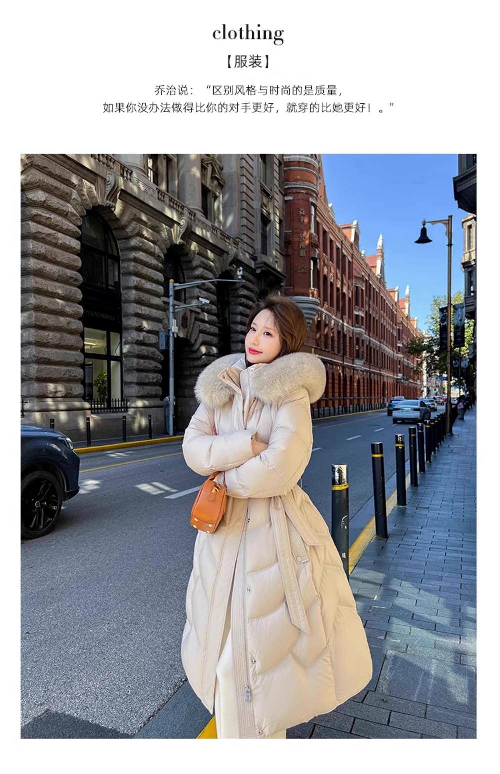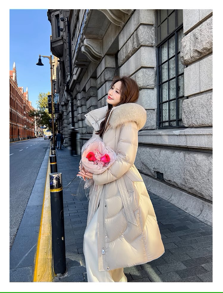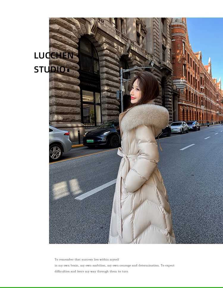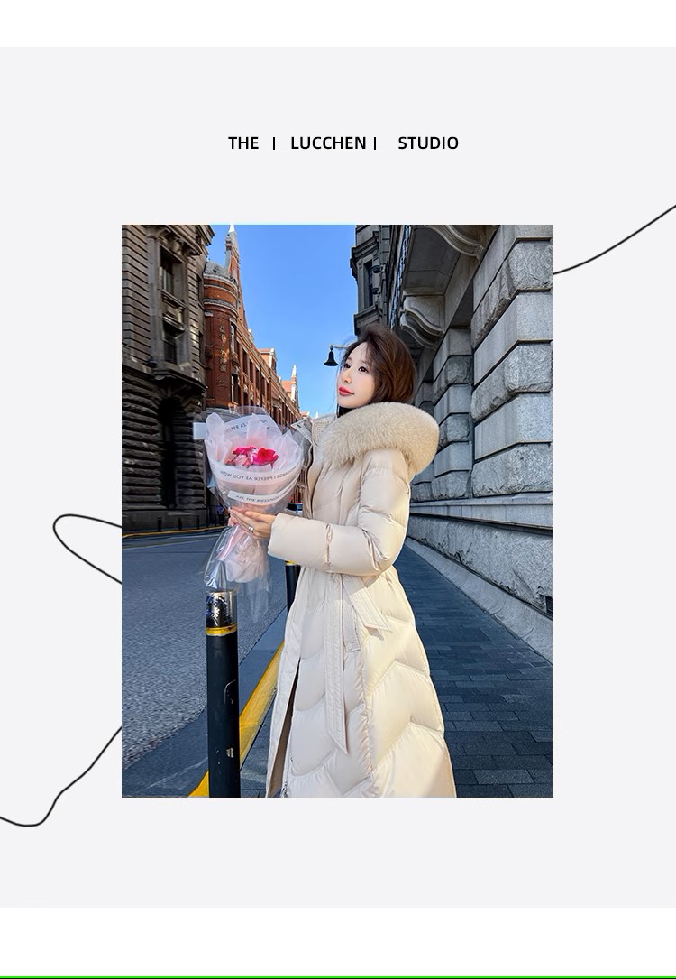 白鸭绒2025冬季新款羽绒服女收腰高端过膝毛领长款冬季外套厚