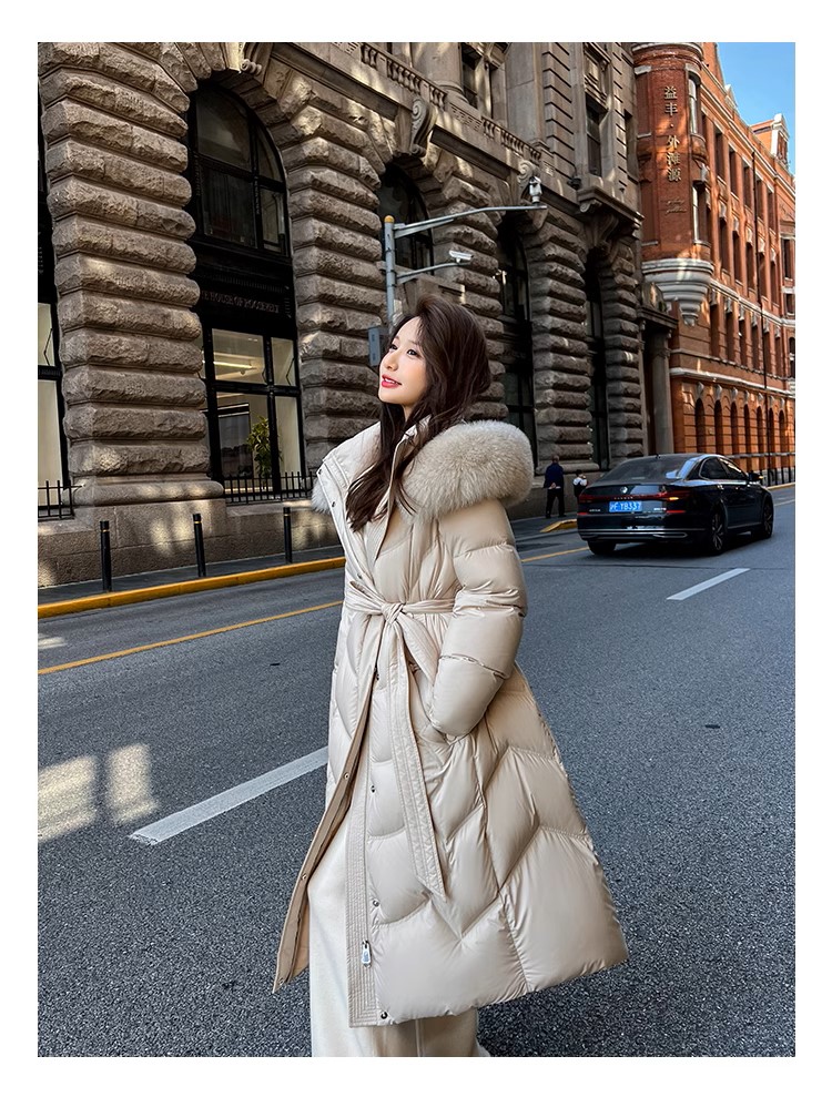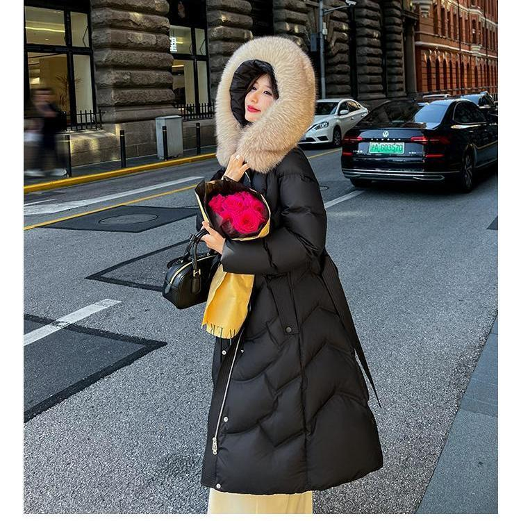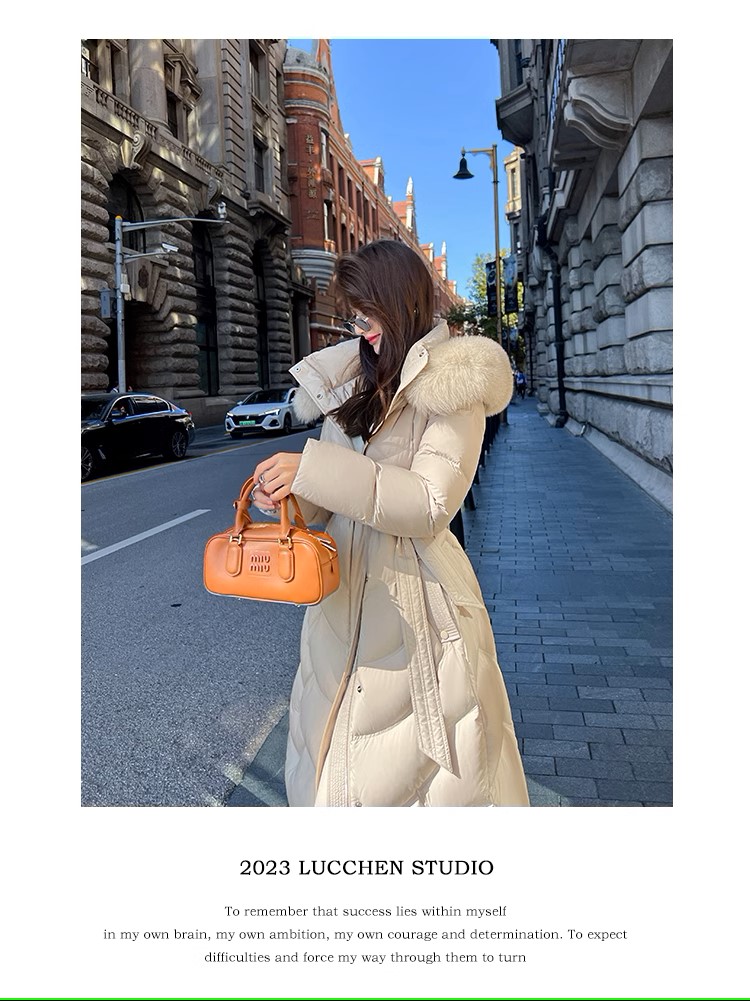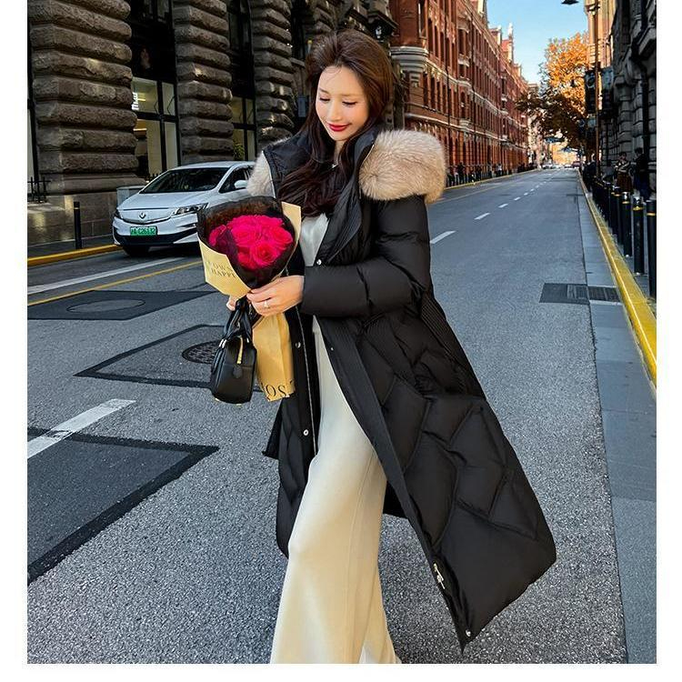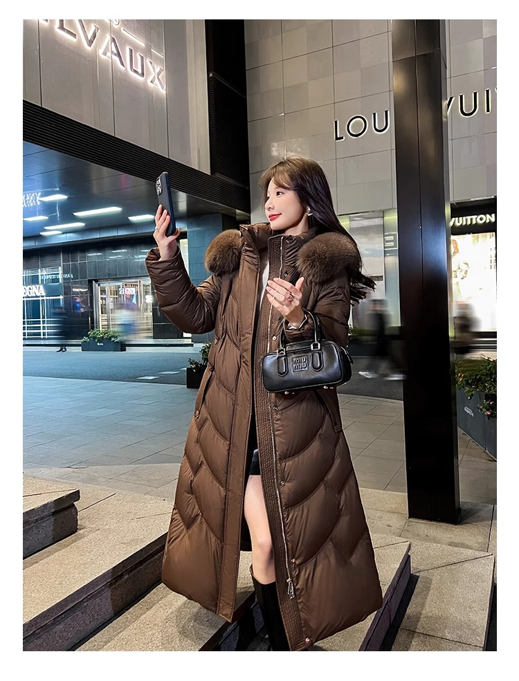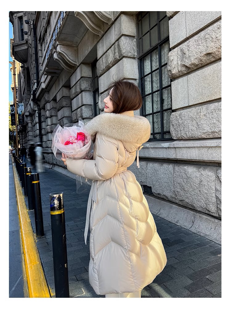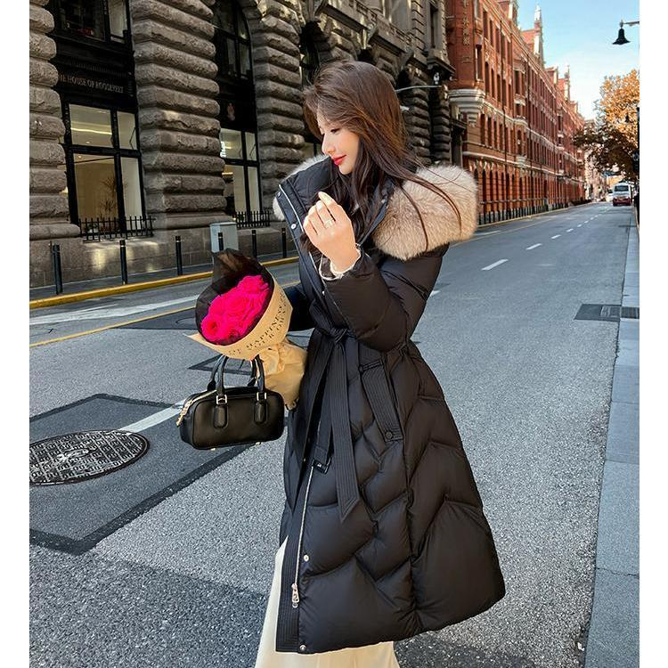 白鸭绒2025冬季新款羽绒服女收腰高端过膝毛领长款冬季外套厚