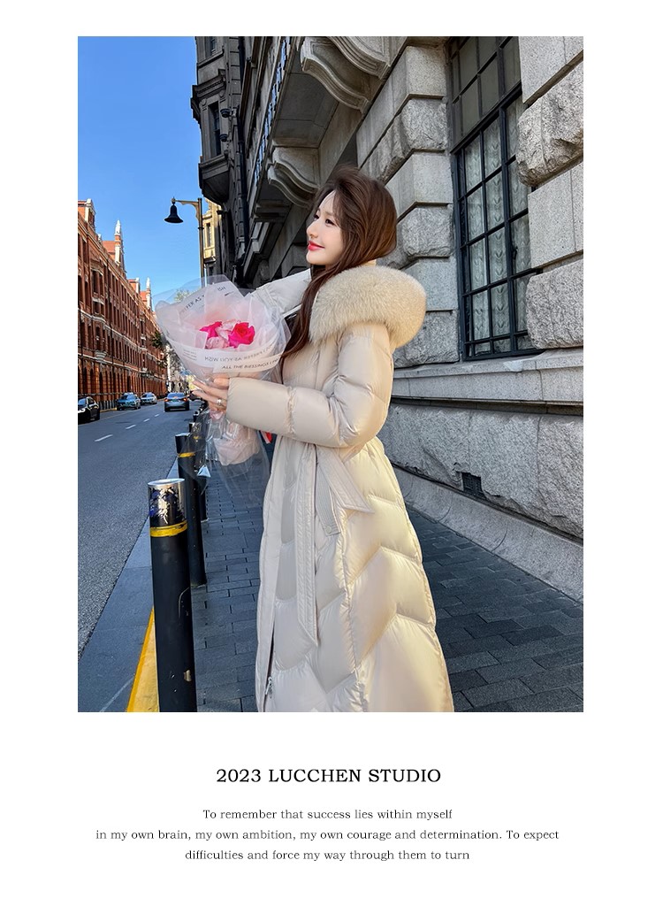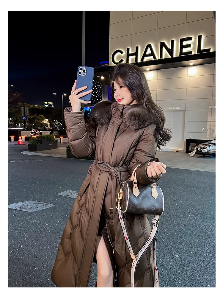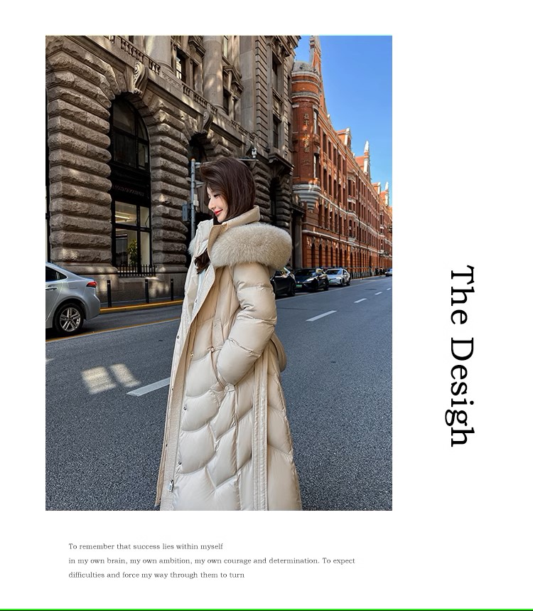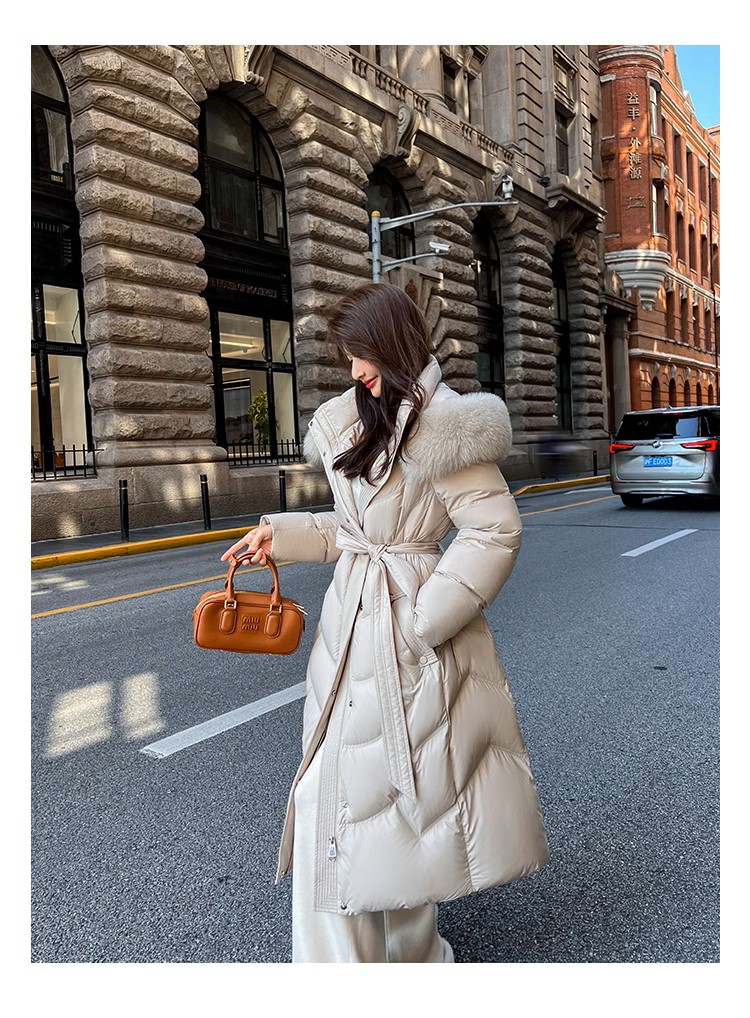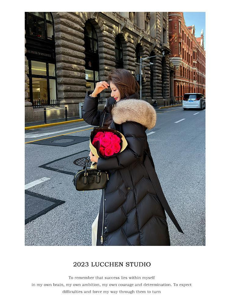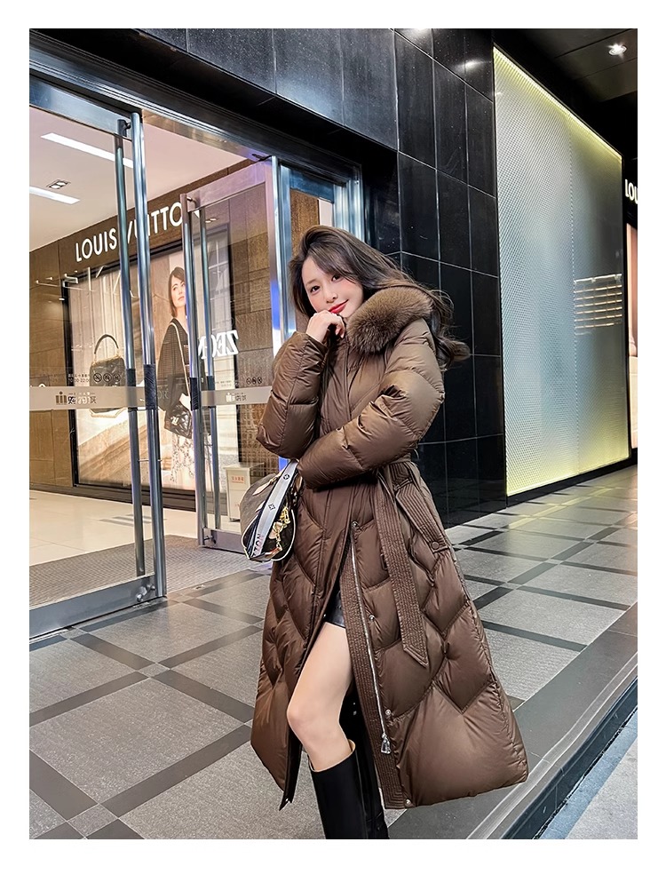白鸭绒2025冬季新款羽绒服女收腰高端过膝毛领长款冬季外套厚