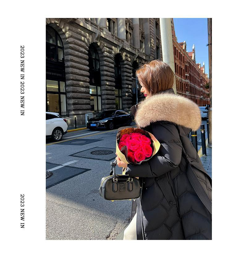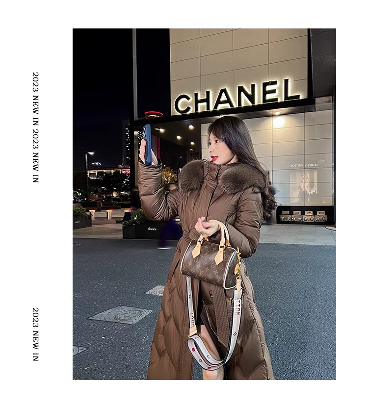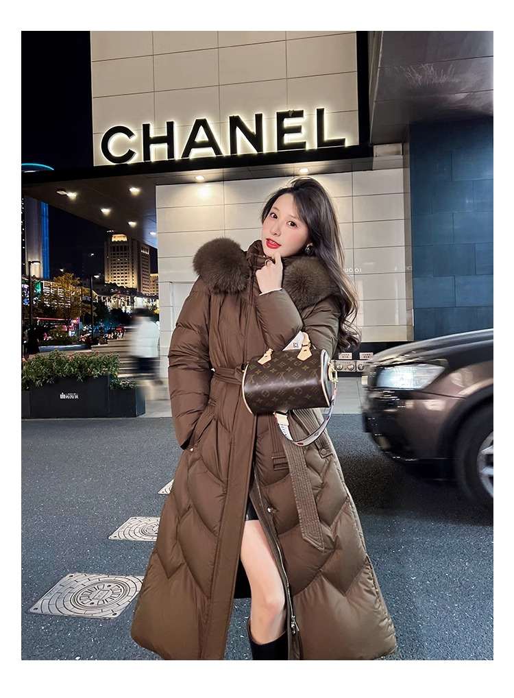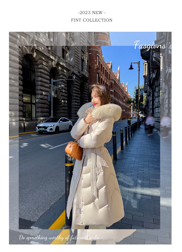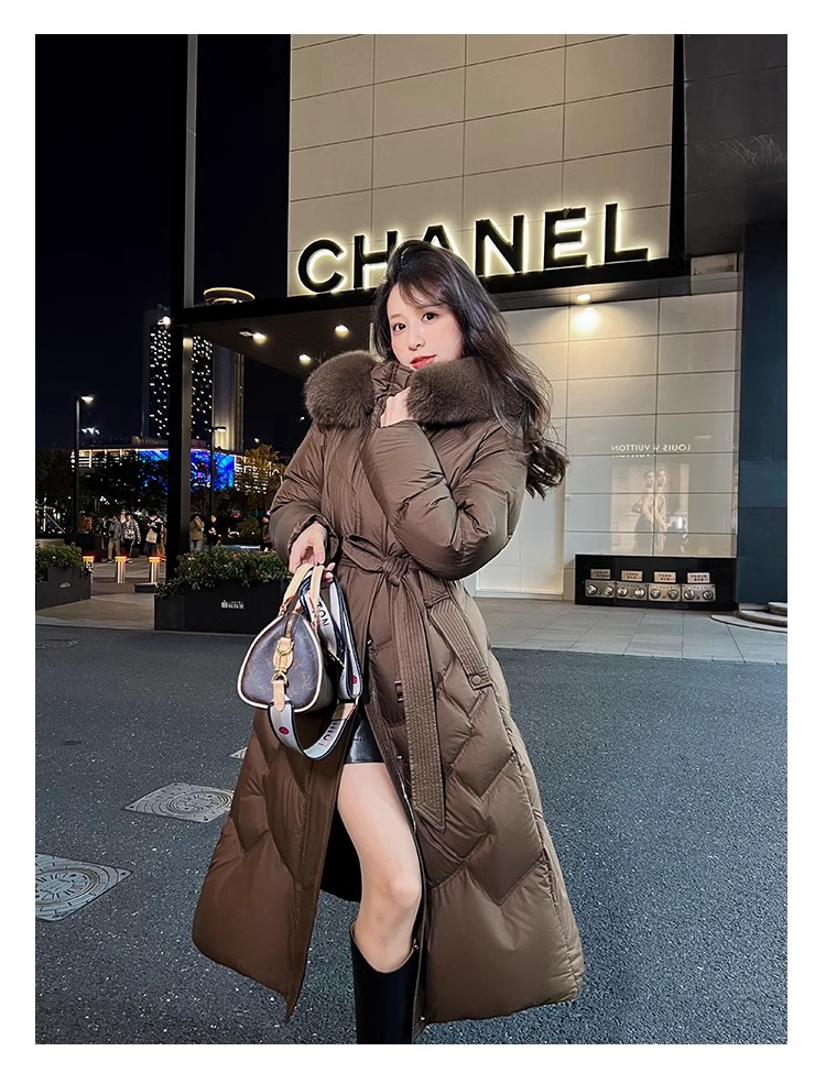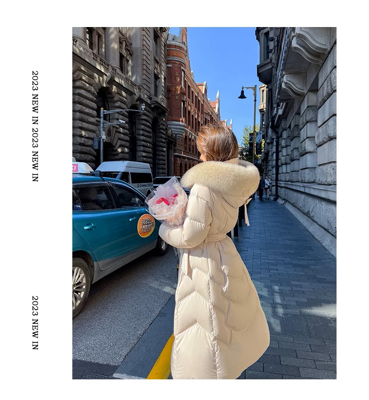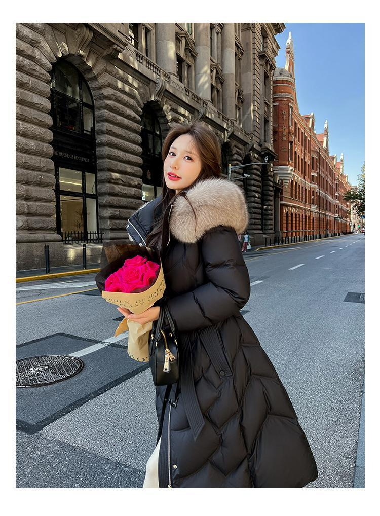 白鸭绒2025冬季新款羽绒服女收腰高端过膝毛领长款冬季外套厚