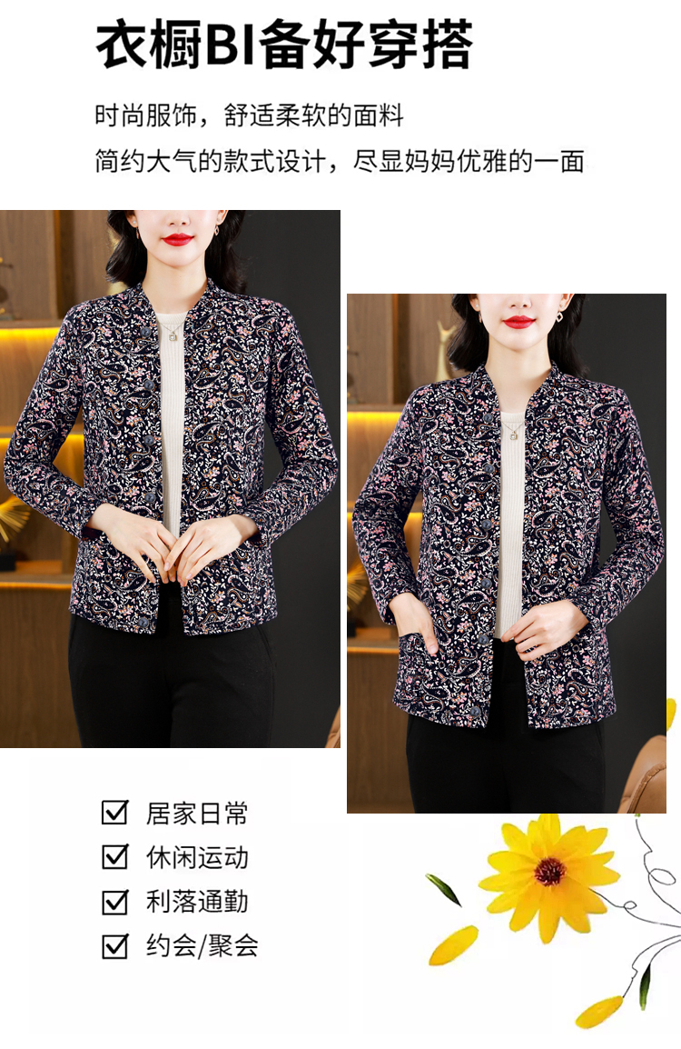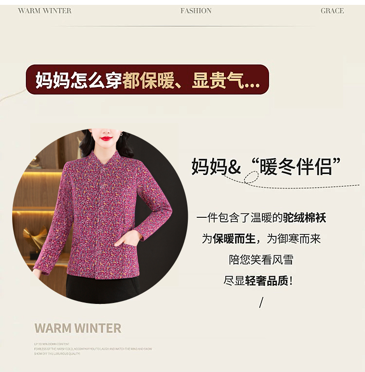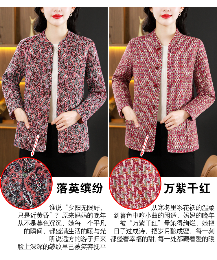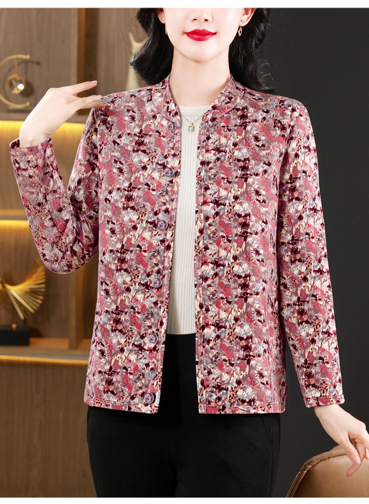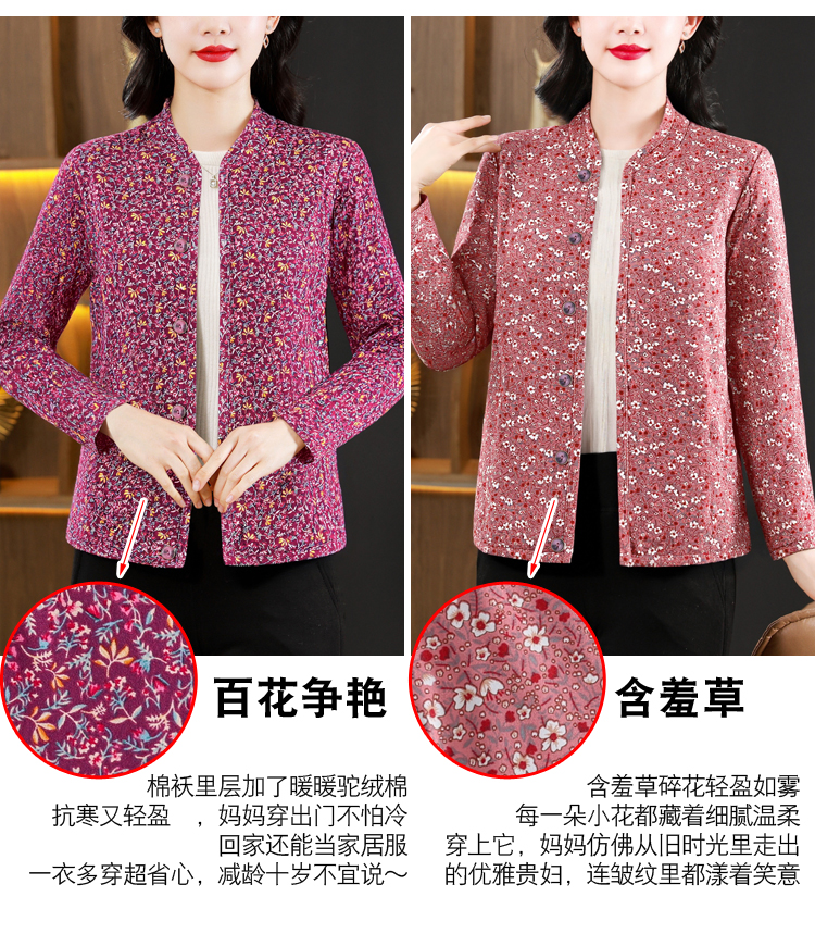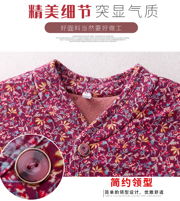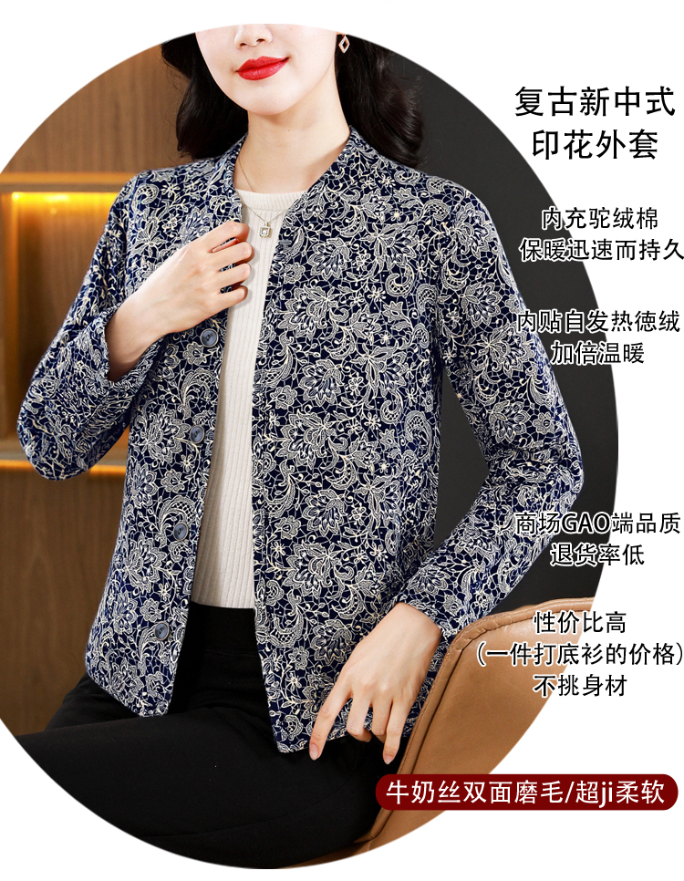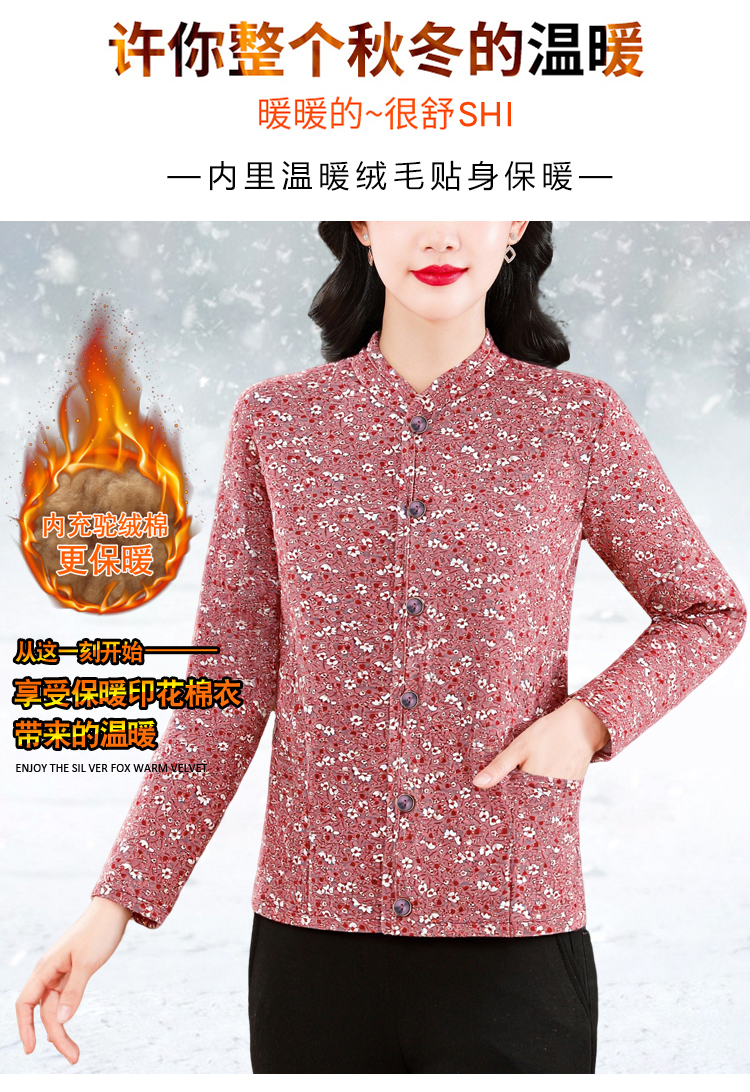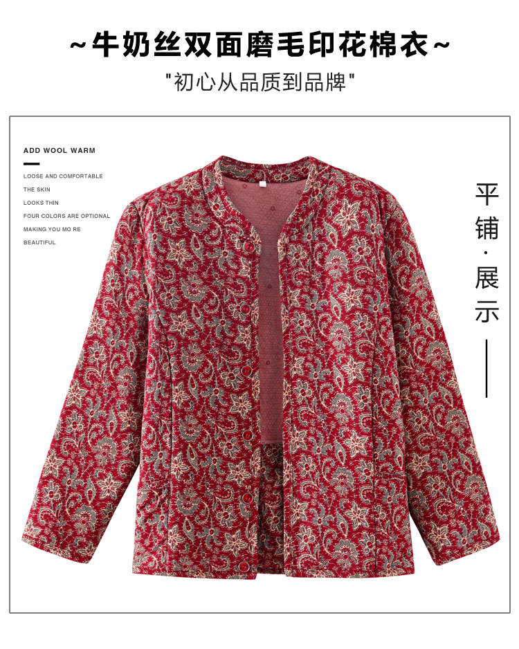 实拍2025秋冬牛奶丝双面磨毛印花中老年打底棉衣保暖妈妈装居家服