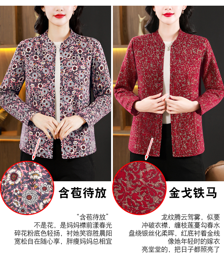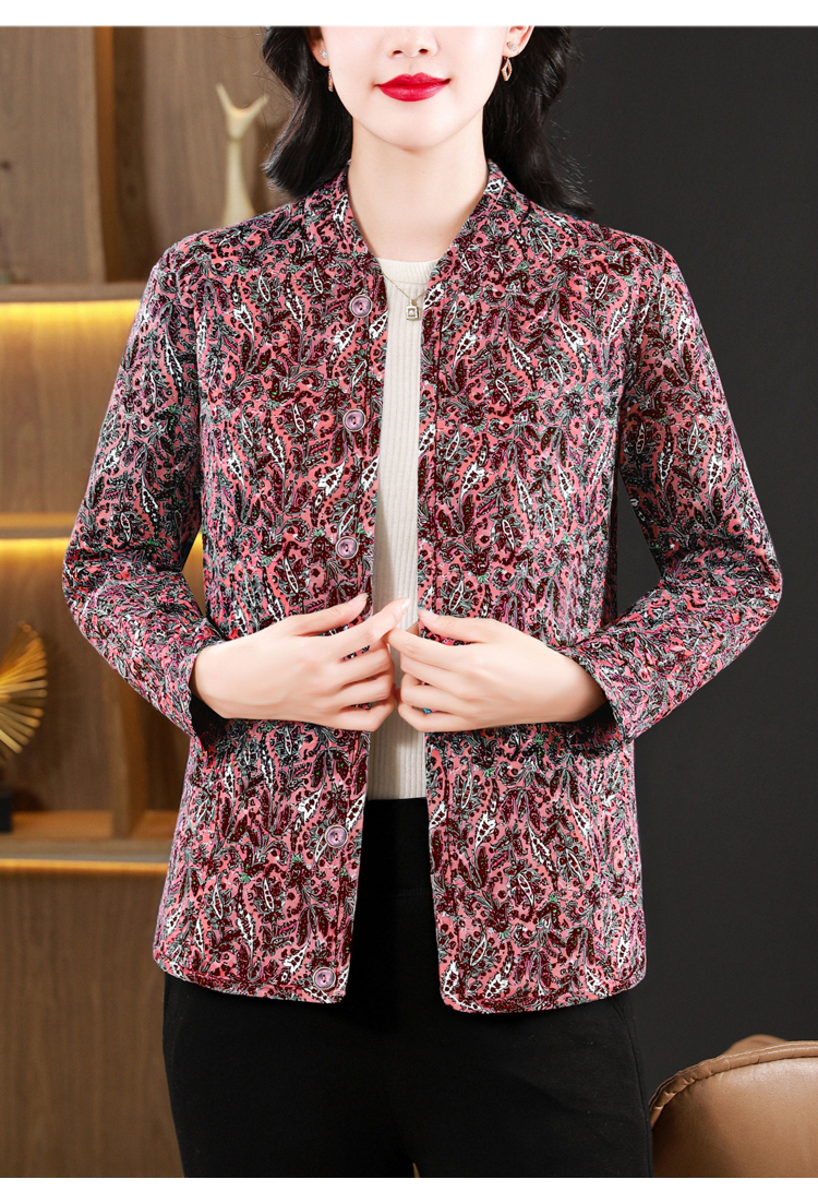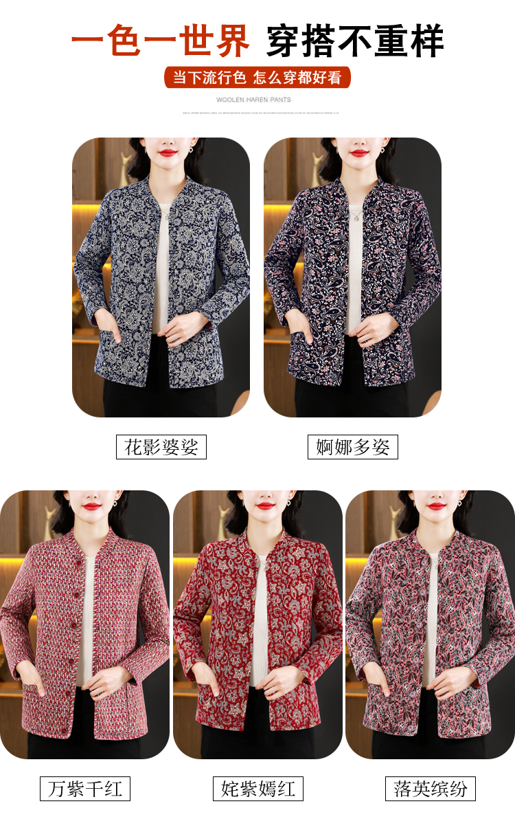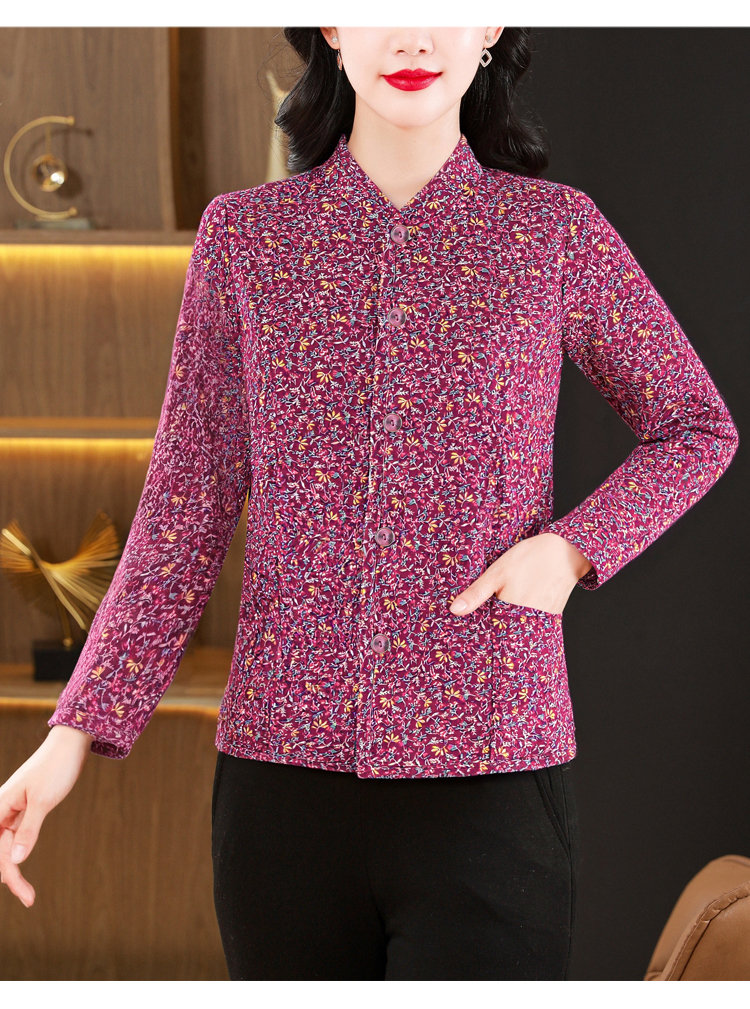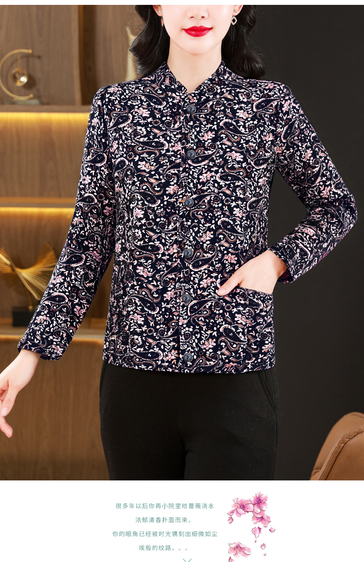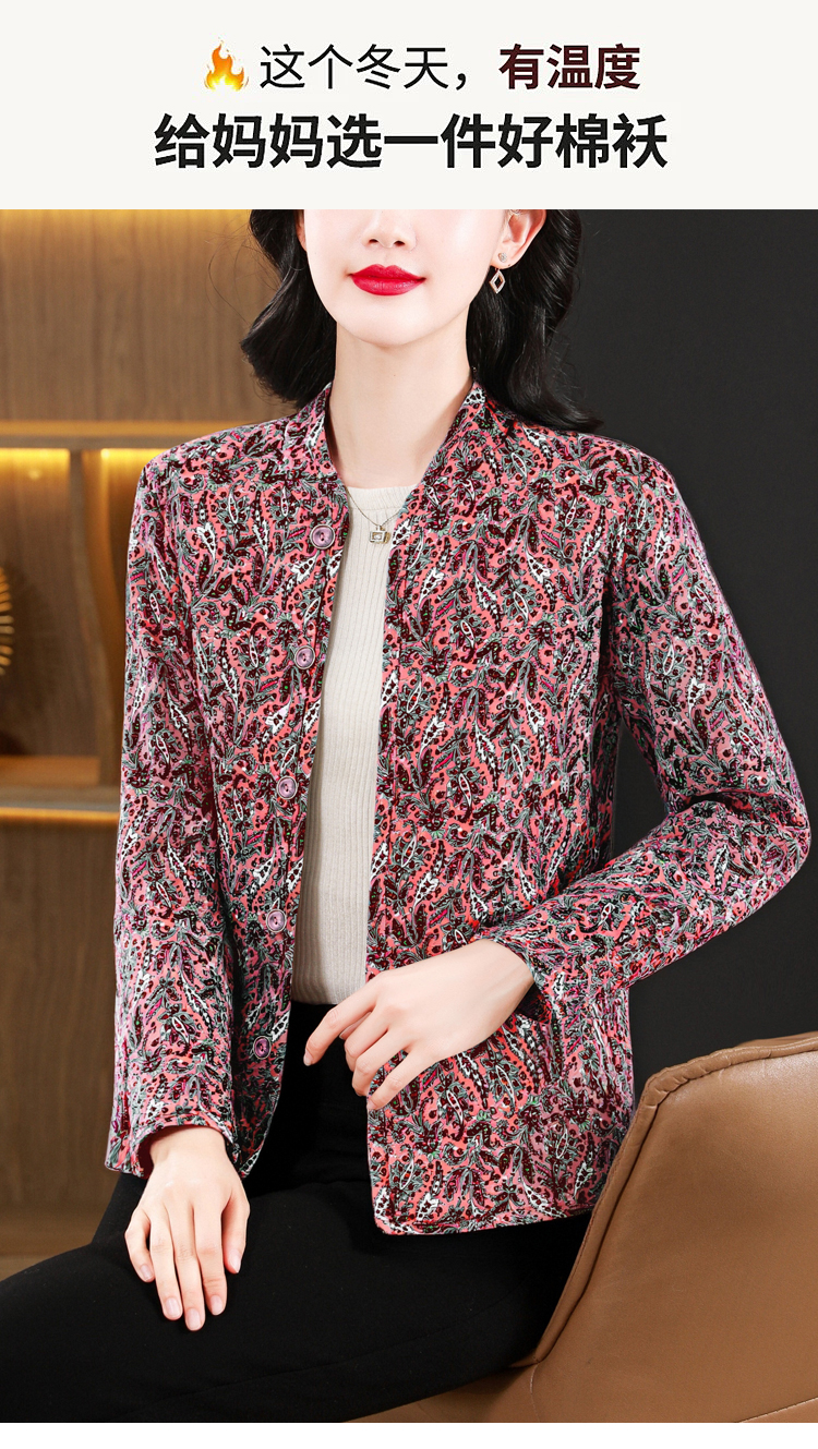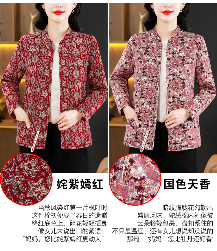 实拍2025秋冬牛奶丝双面磨毛印花中老年打底棉衣保暖妈妈装居家服