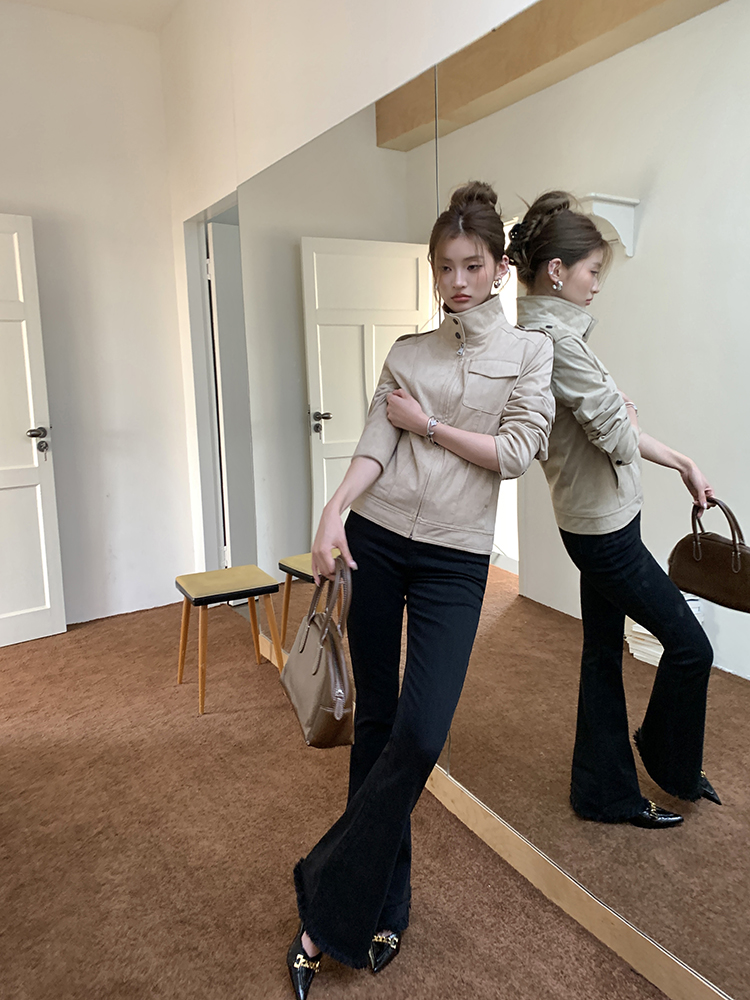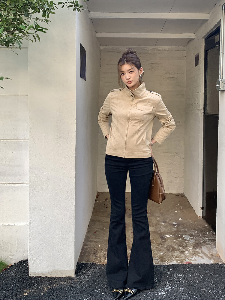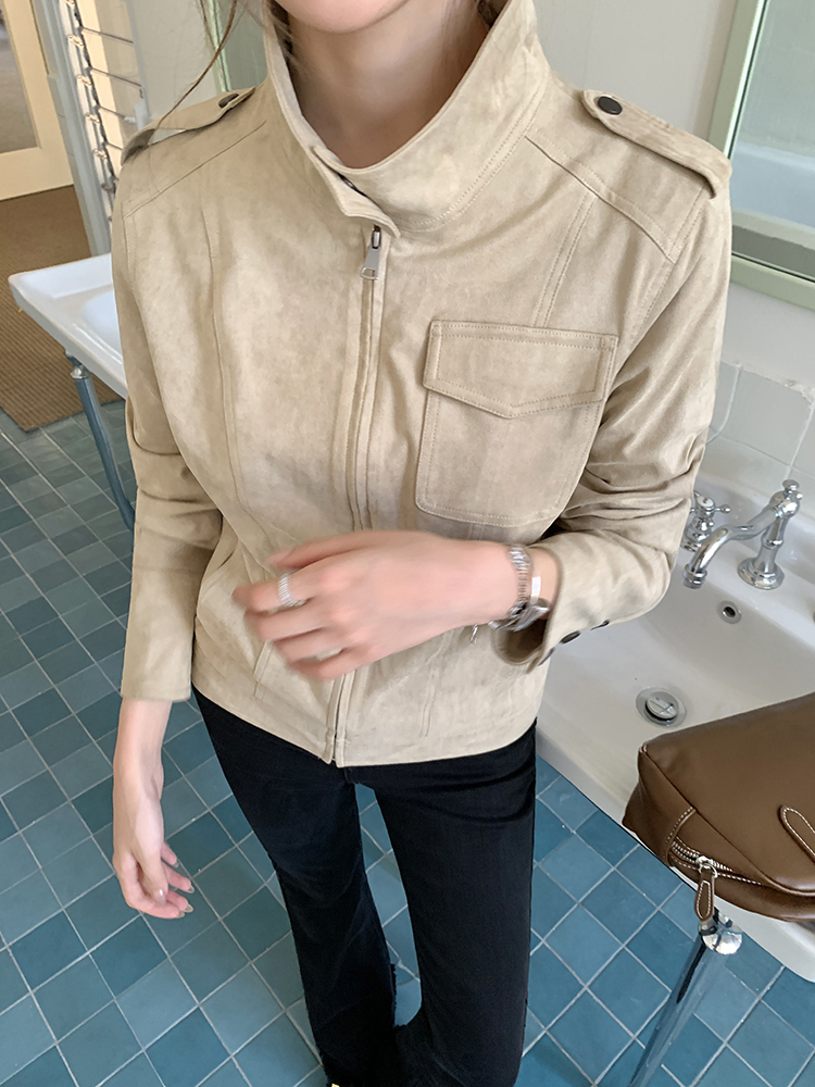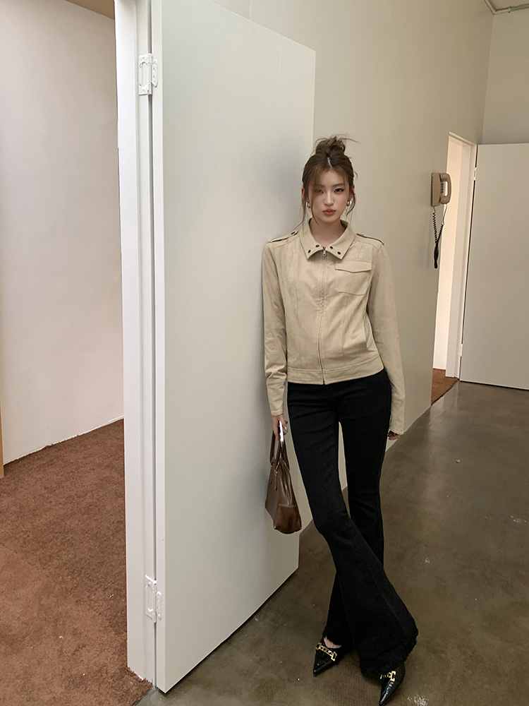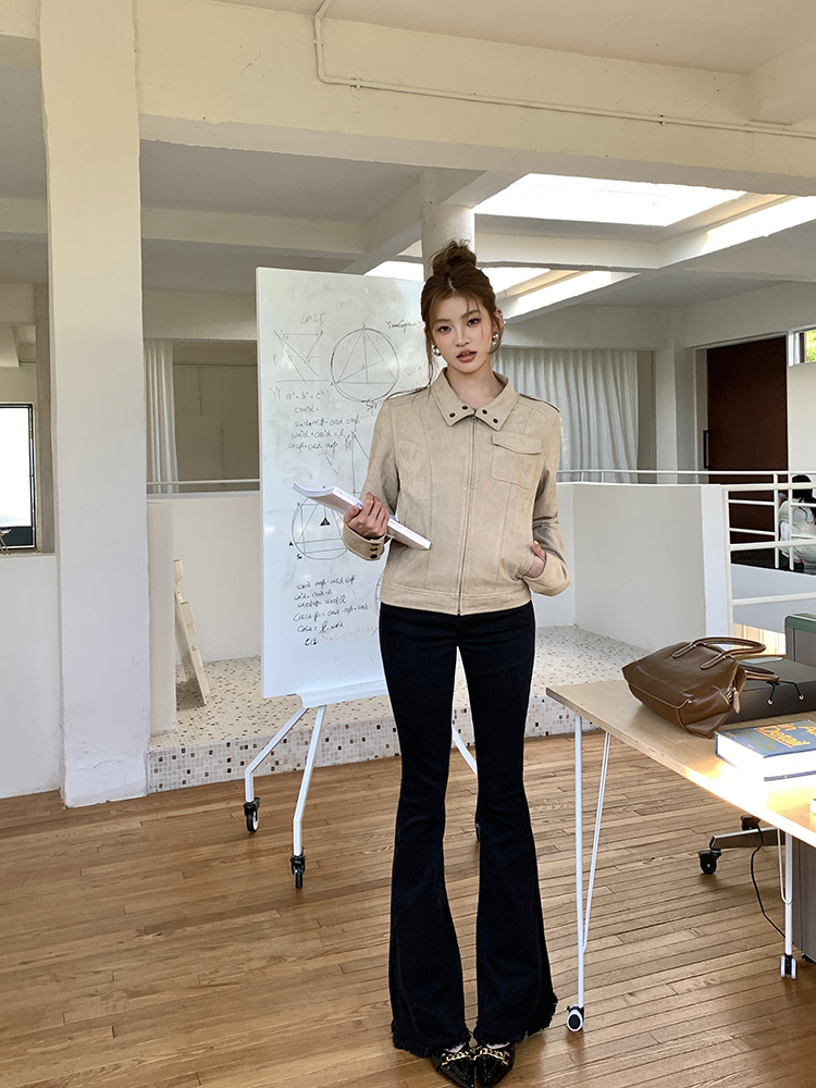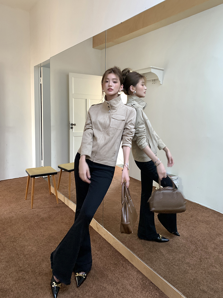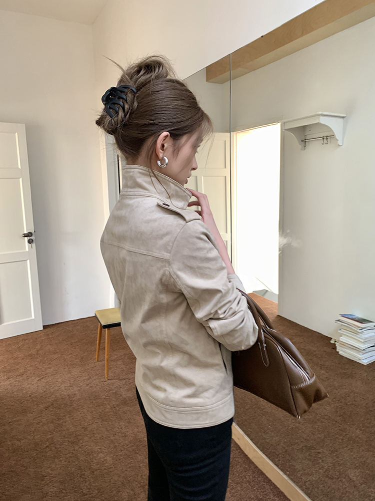实拍2025秋冬新款美式复古牛皮绒短款夹克外套女休闲百搭长袖上衣