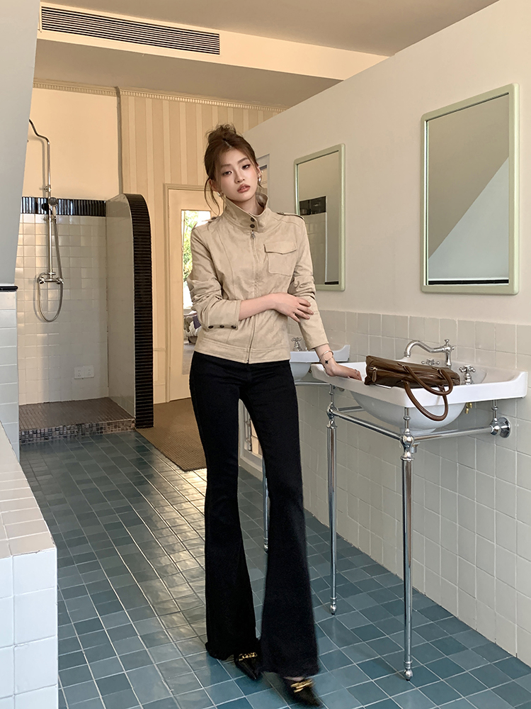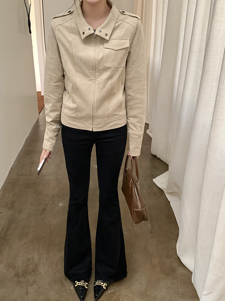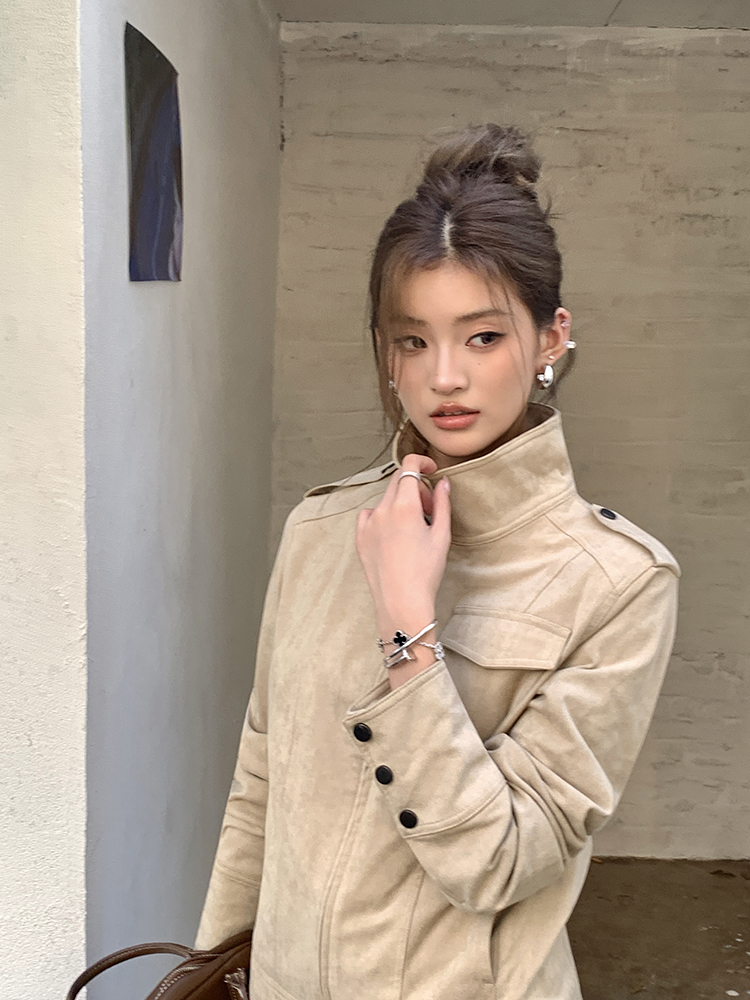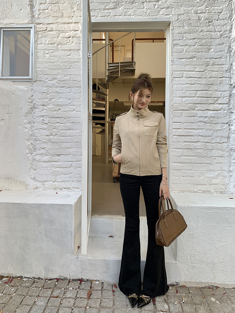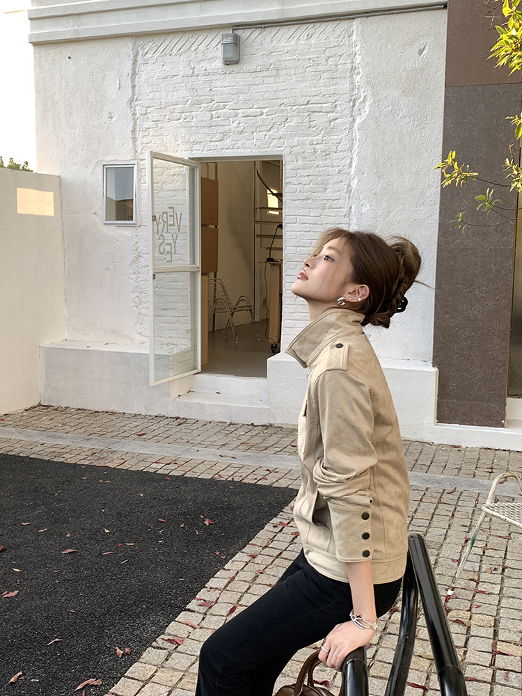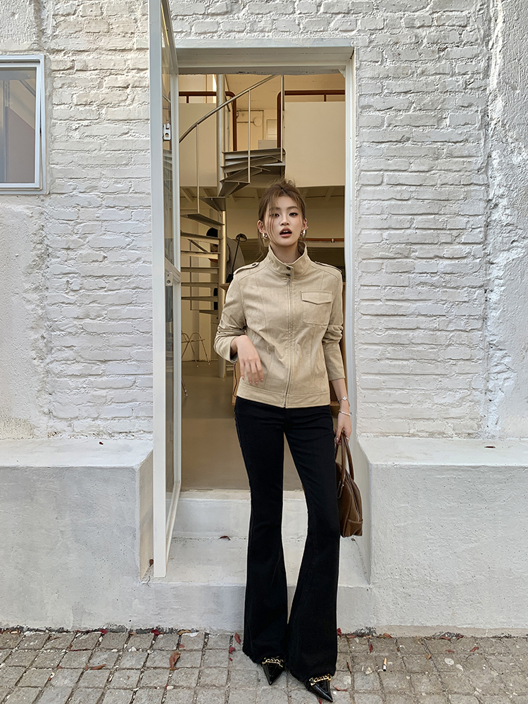 实拍2025秋冬新款美式复古牛皮绒短款夹克外套女休闲百搭长袖上衣