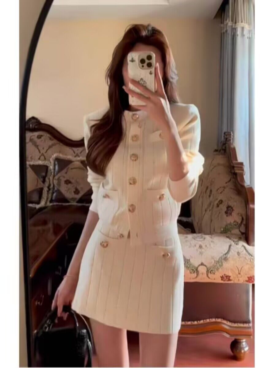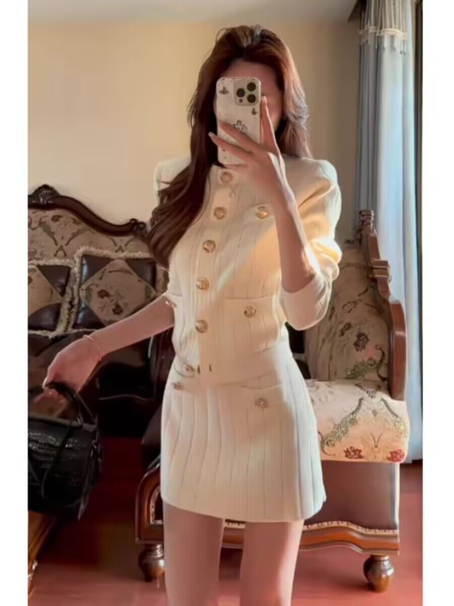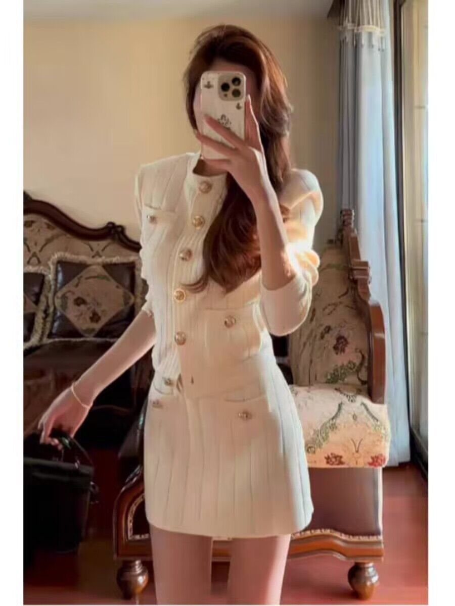 2025秋季新款女富家千金显高显瘦长袖针织上衣时尚气质高腰半身裙