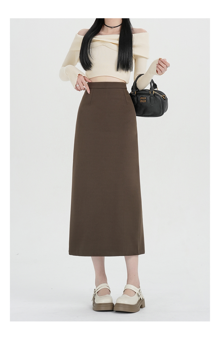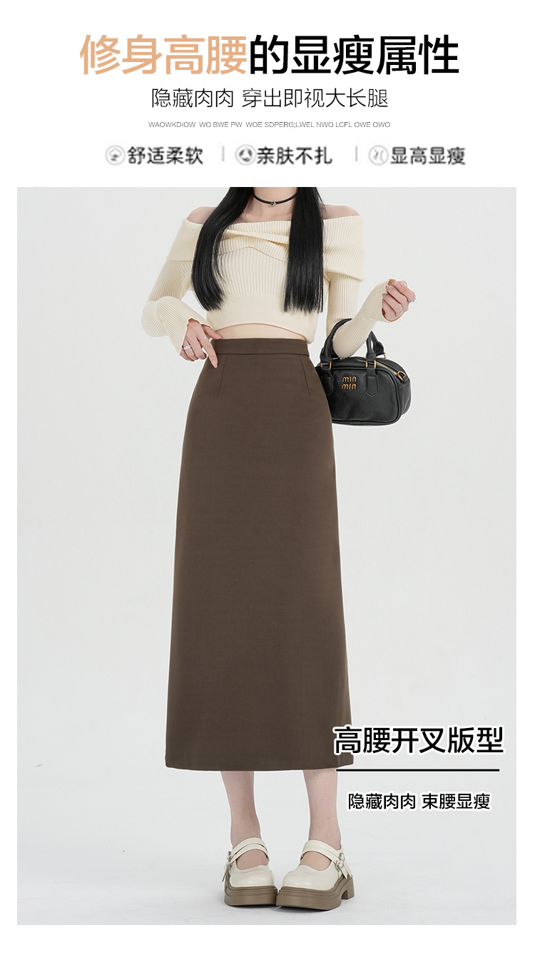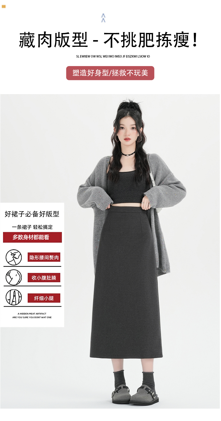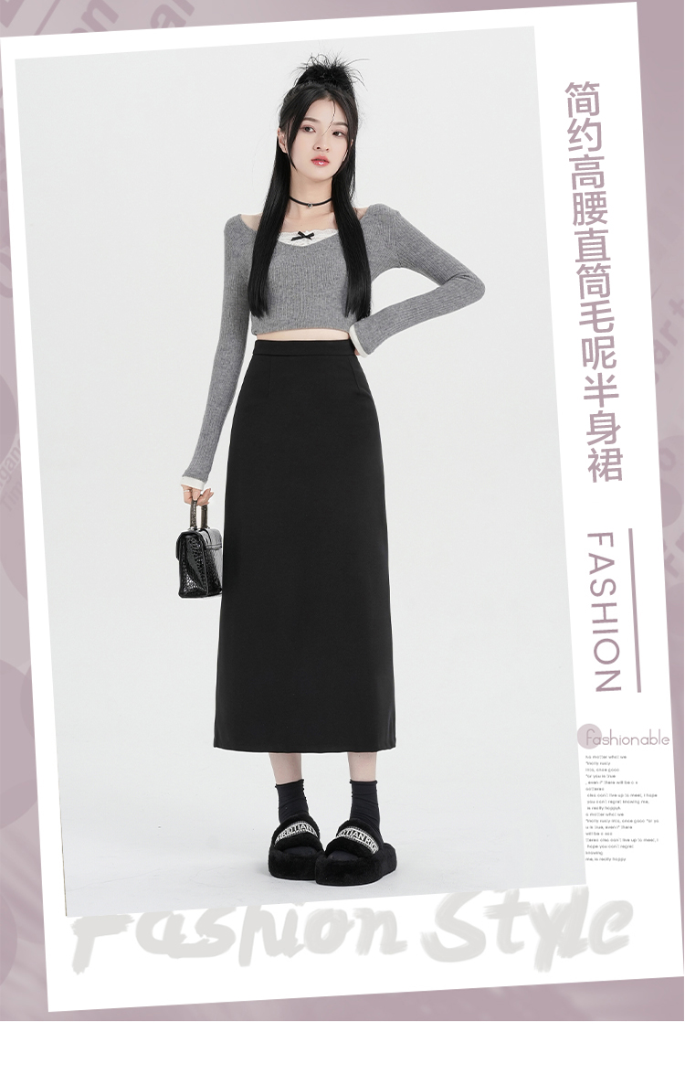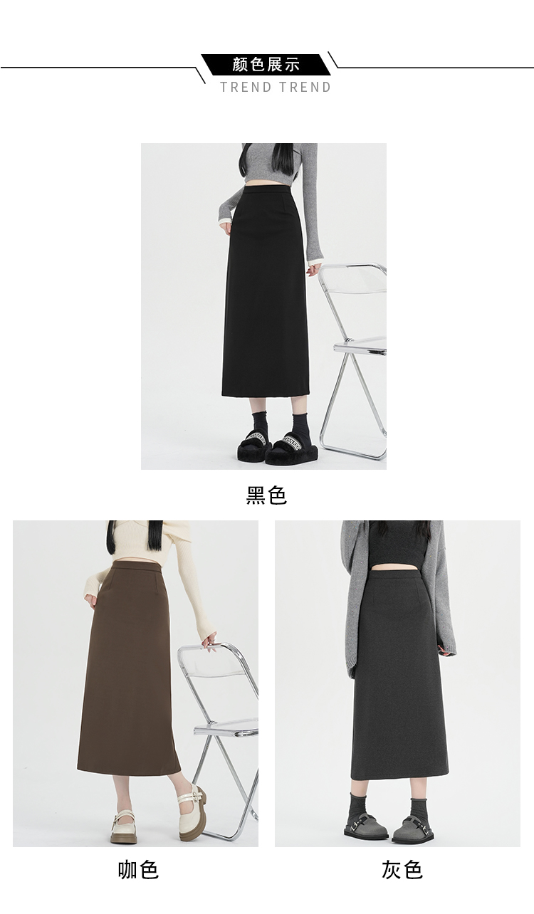 实拍毛呢半身裙女2025新款a字高腰显瘦中长款直筒一步裙开叉裙子