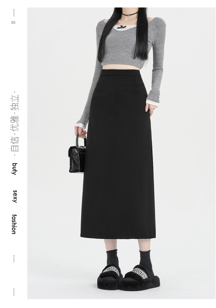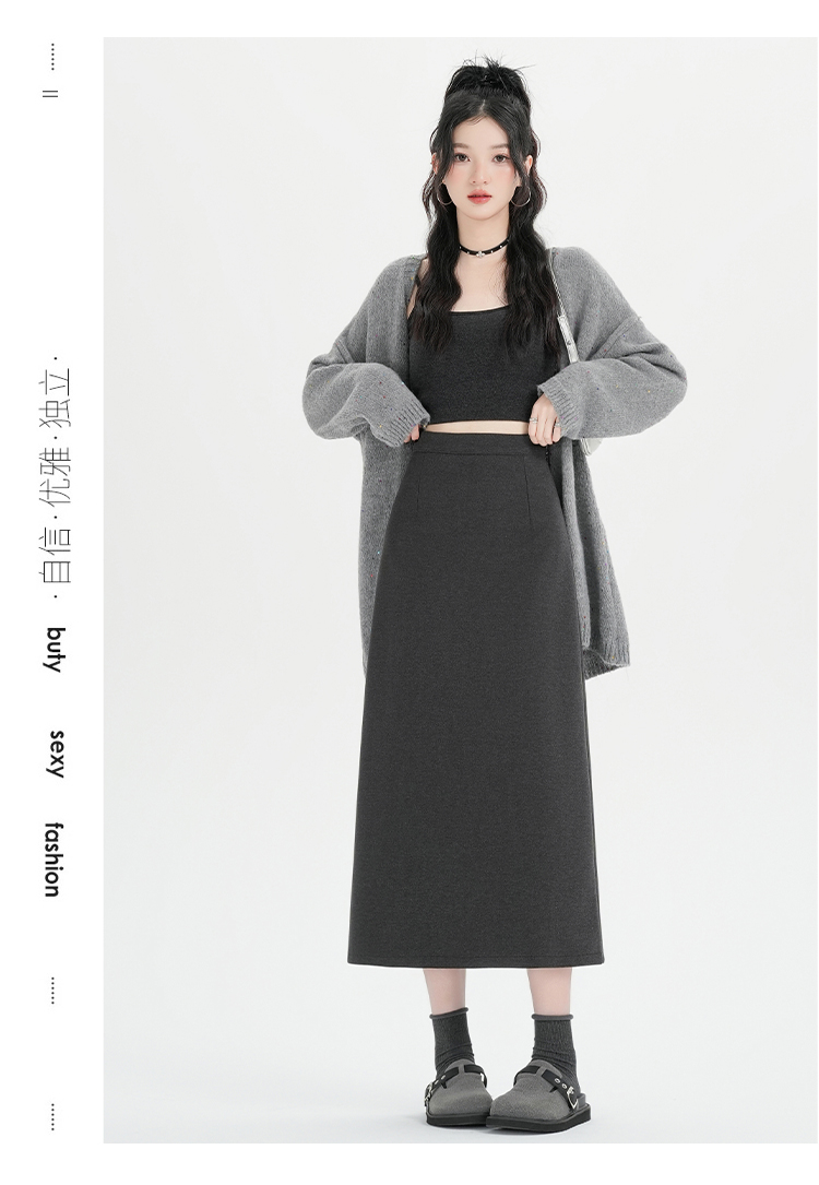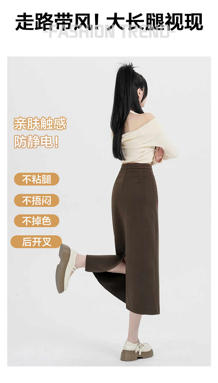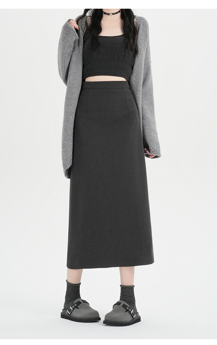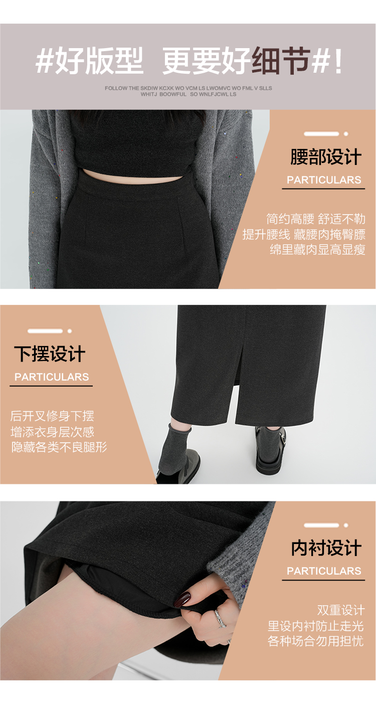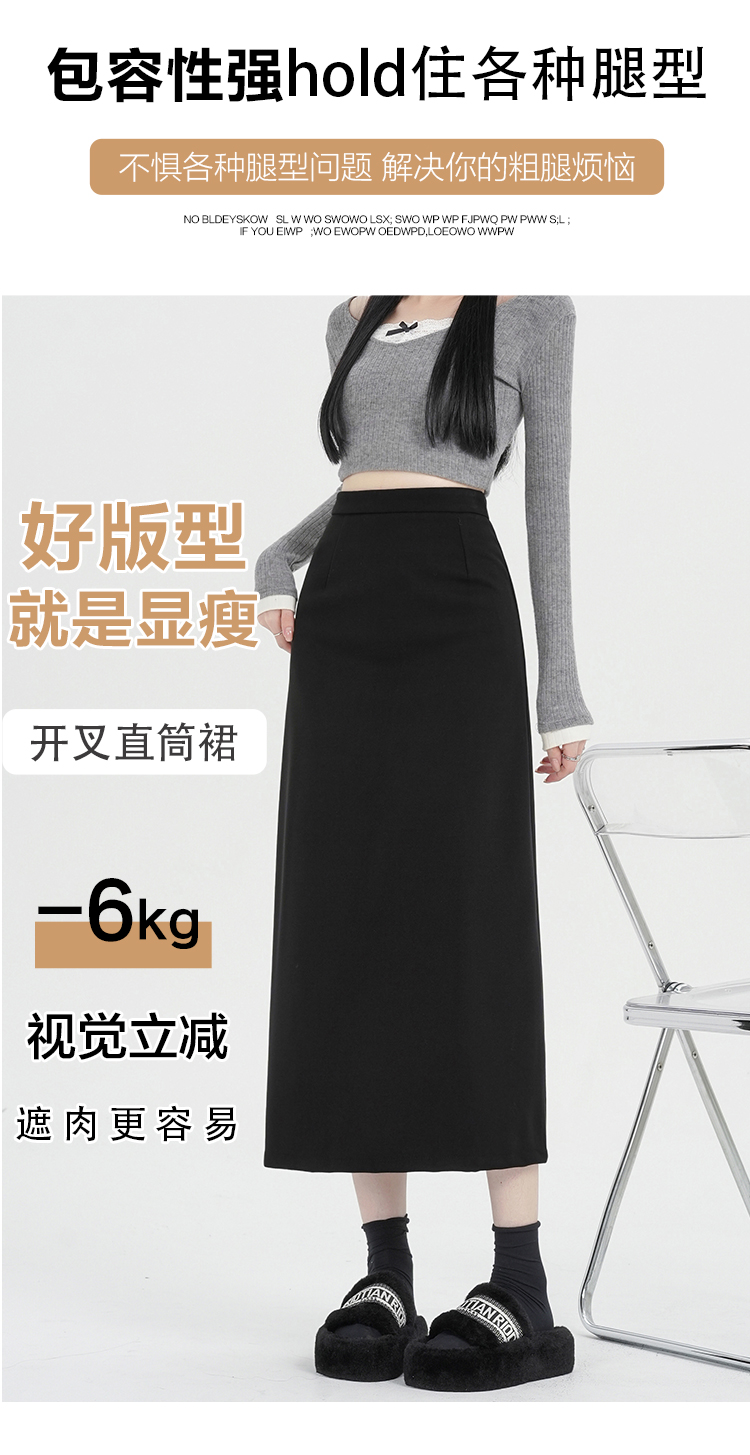 实拍毛呢半身裙女2025新款a字高腰显瘦中长款直筒一步裙开叉裙子