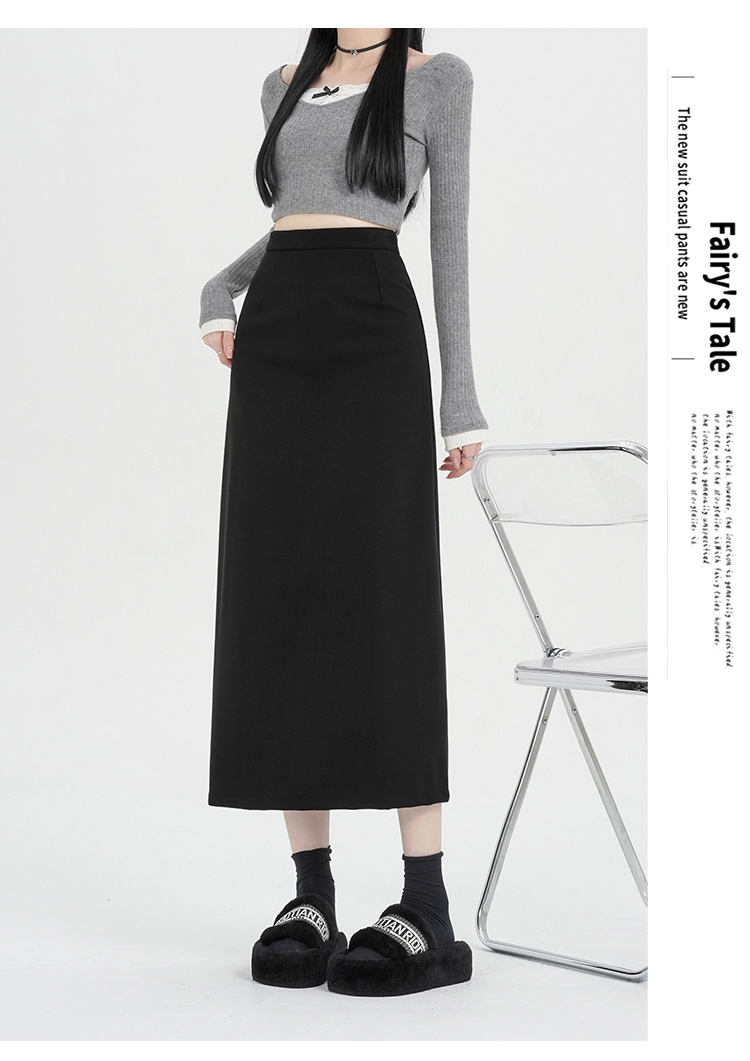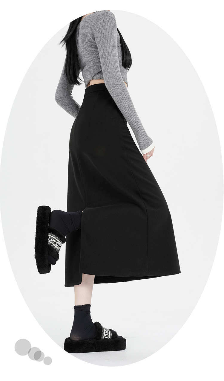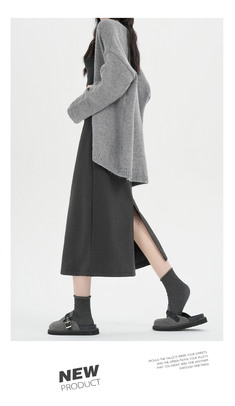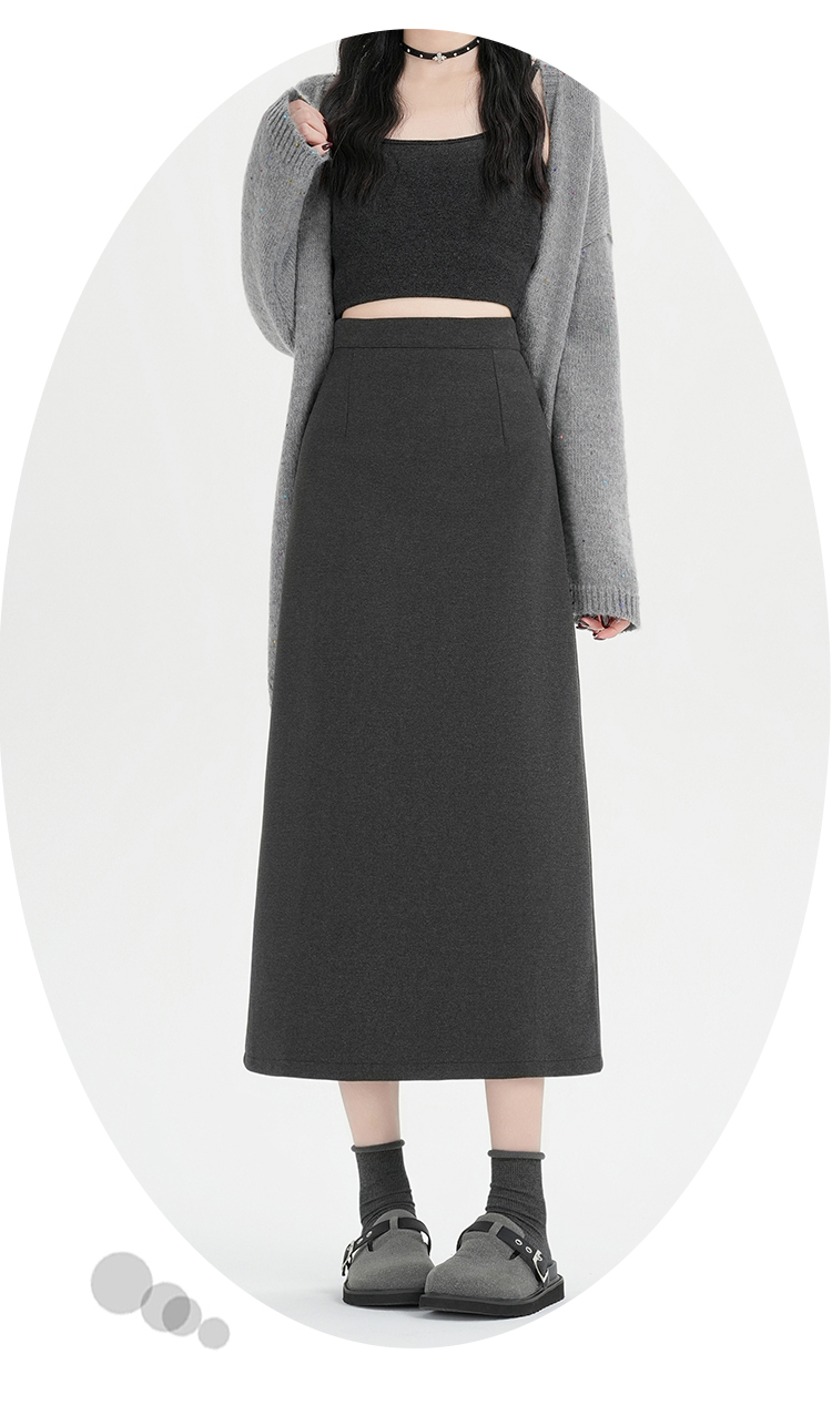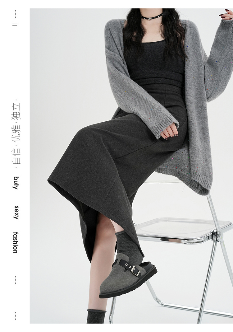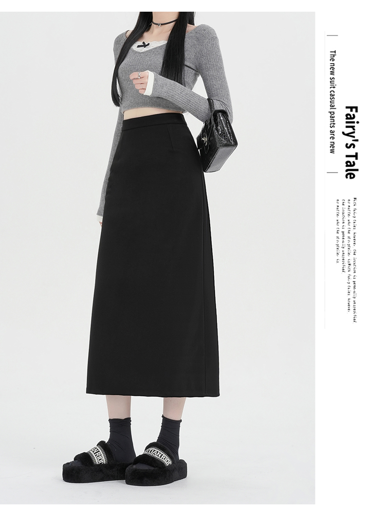 实拍毛呢半身裙女2025新款a字高腰显瘦中长款直筒一步裙开叉裙子