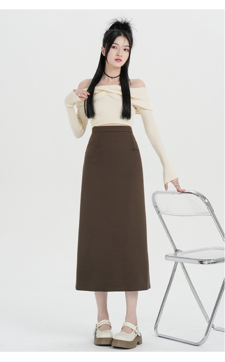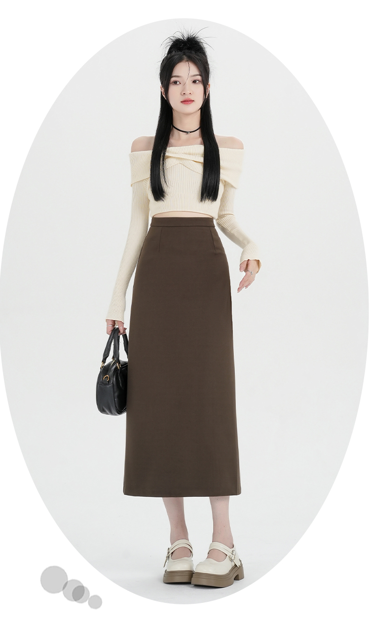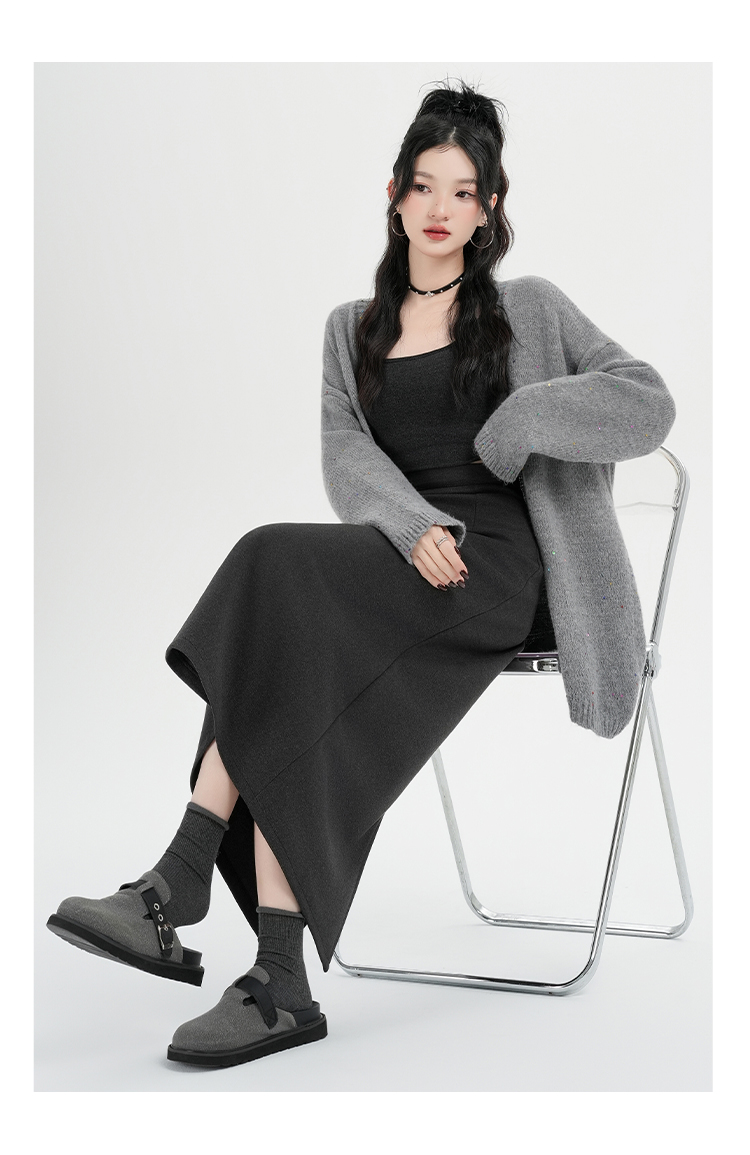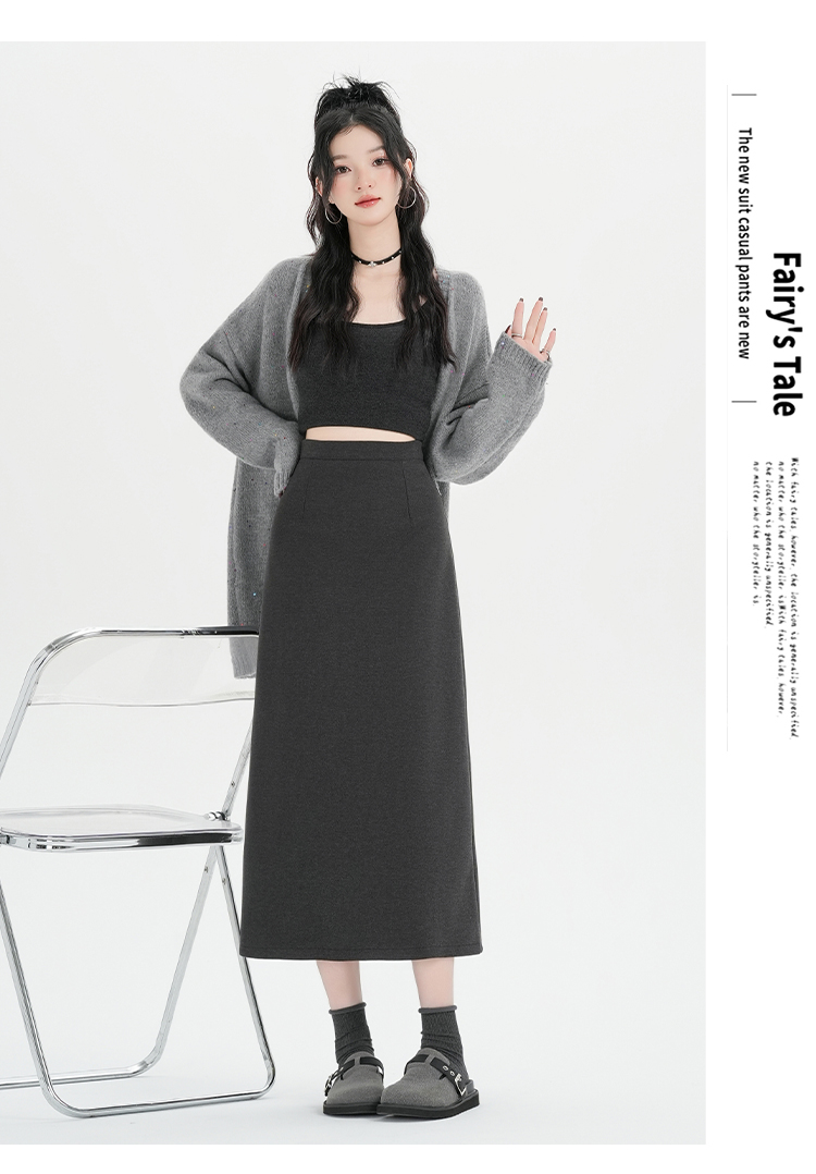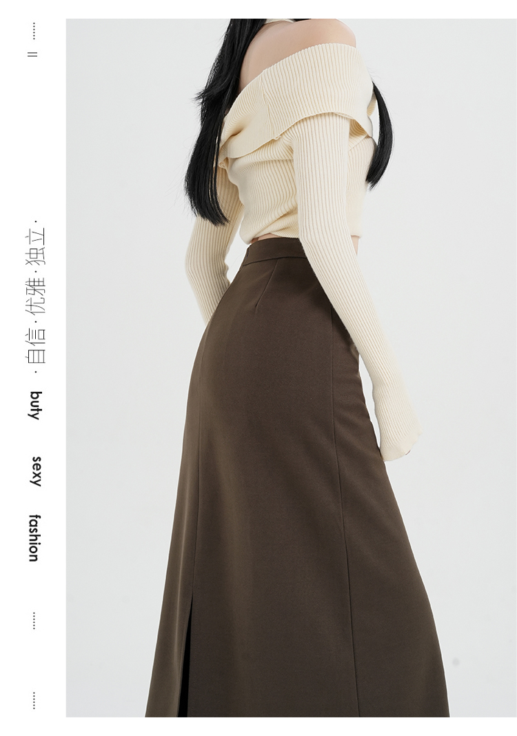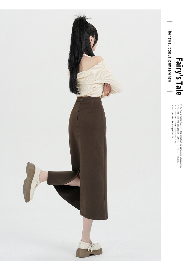 实拍毛呢半身裙女2025新款a字高腰显瘦中长款直筒一步裙开叉裙子