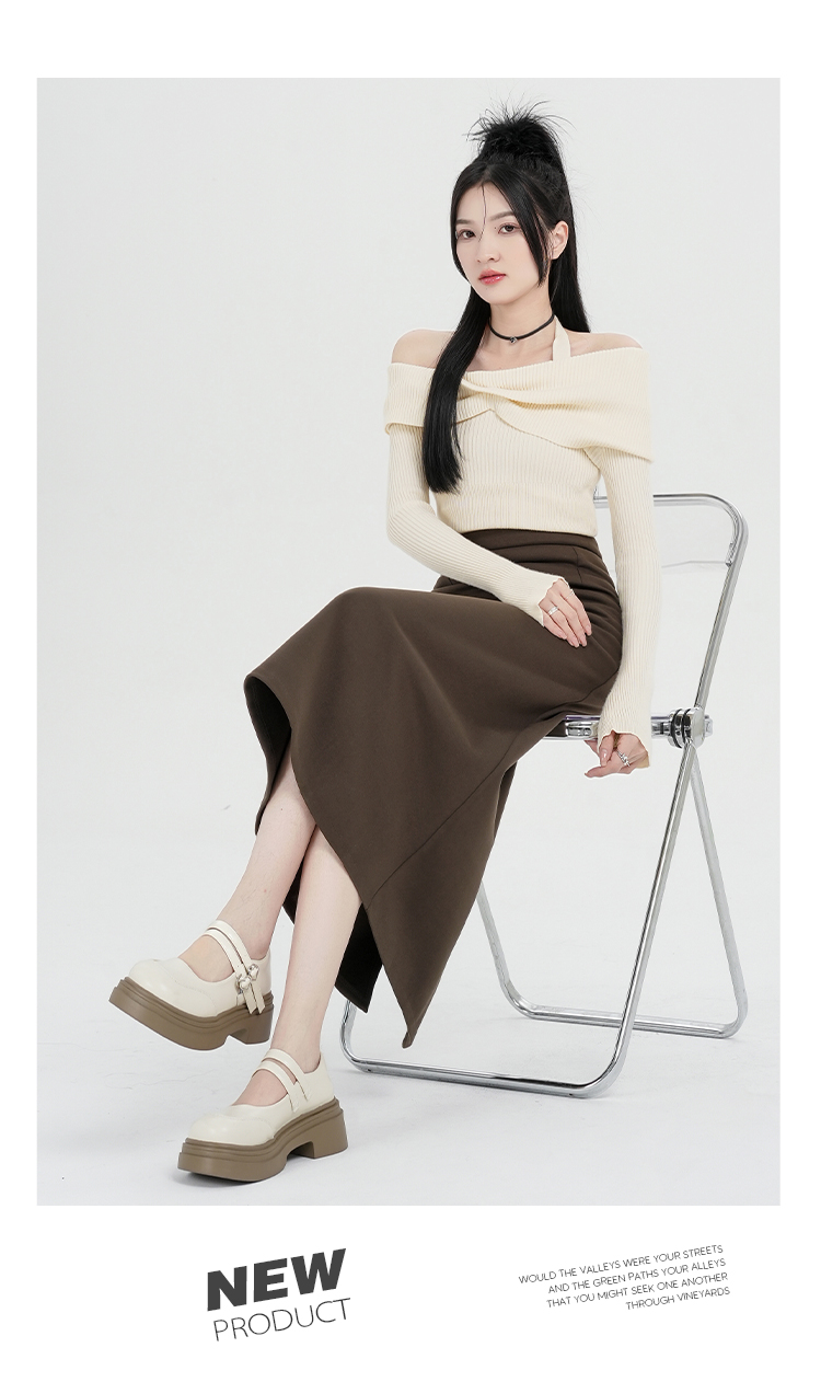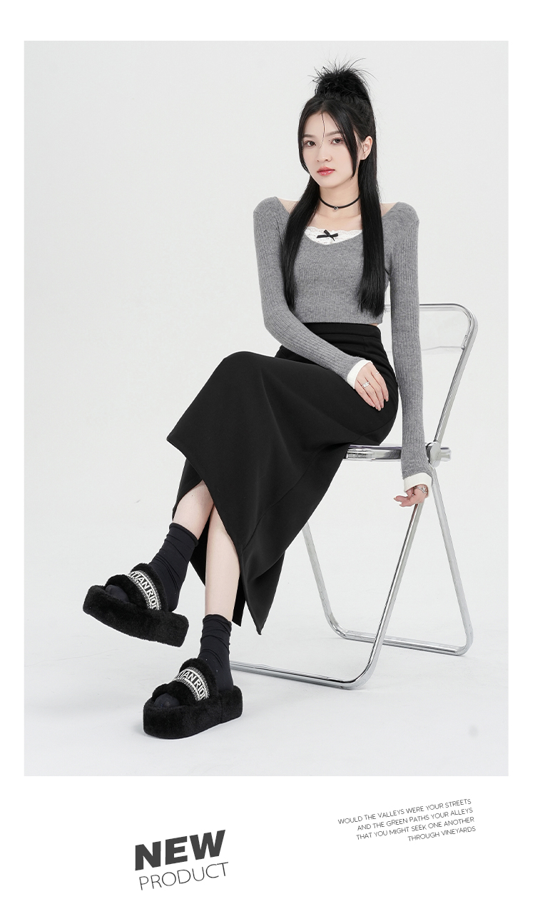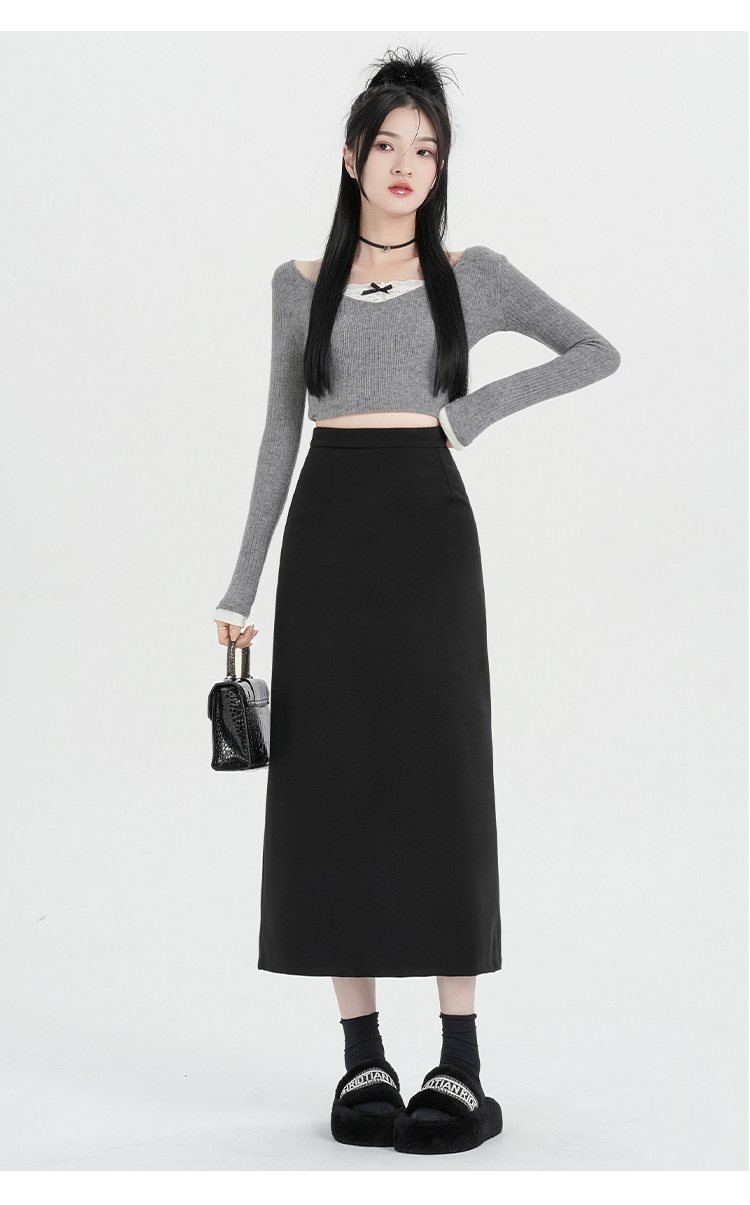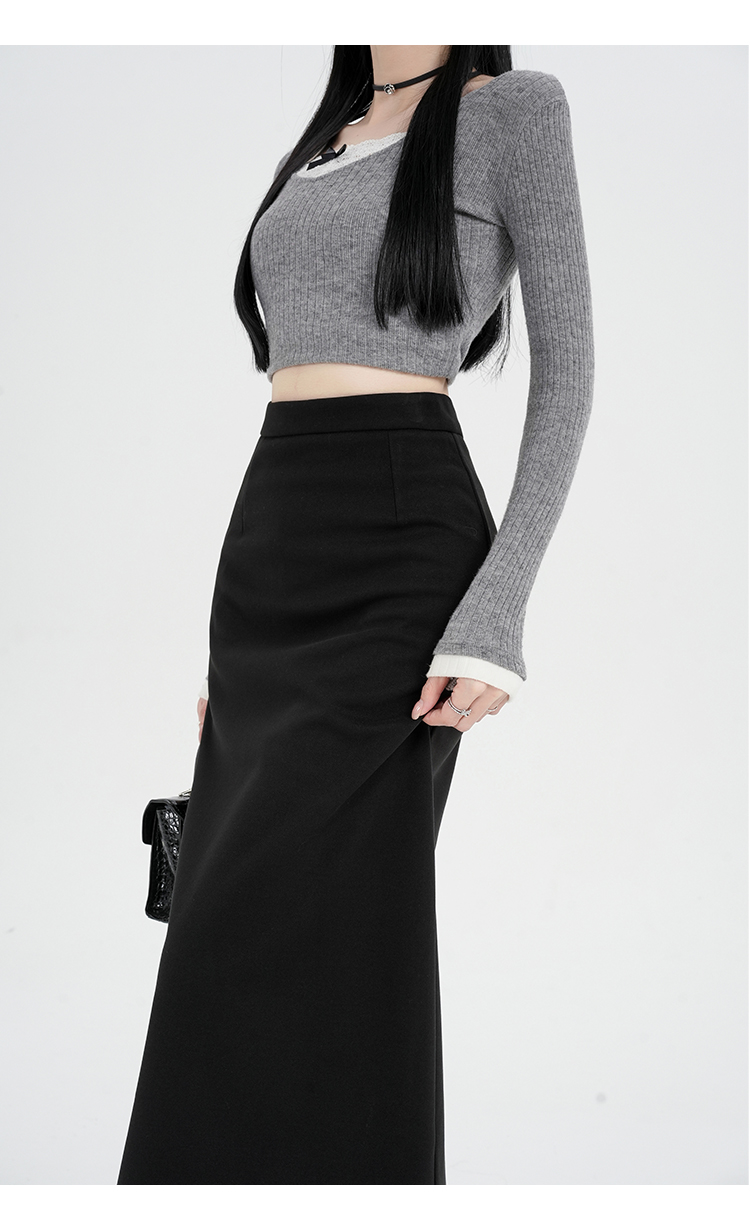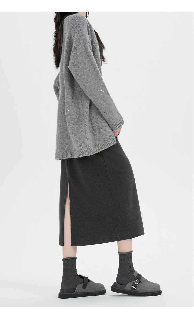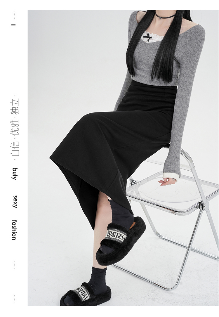 实拍毛呢半身裙女2025新款a字高腰显瘦中长款直筒一步裙开叉裙子