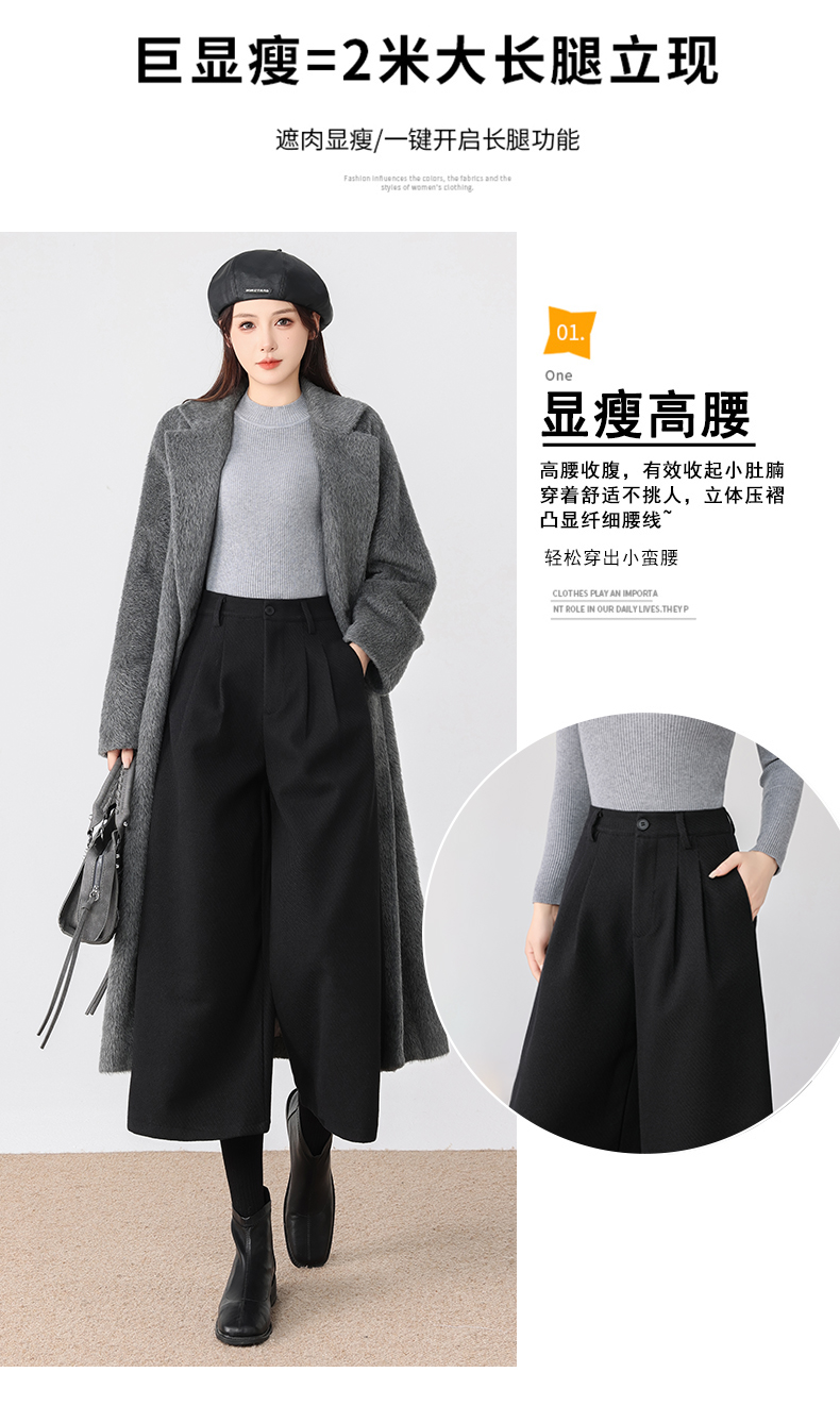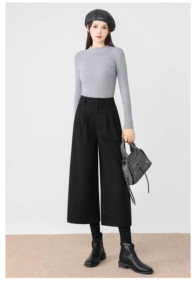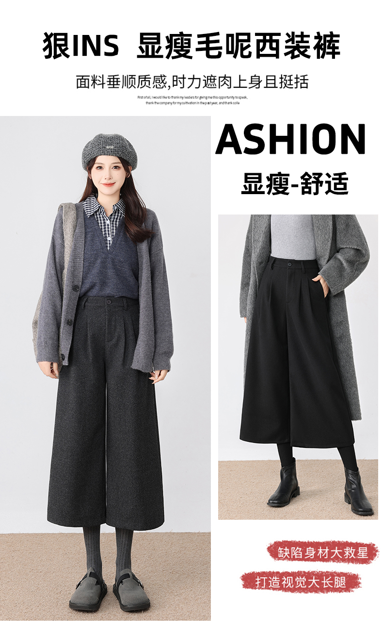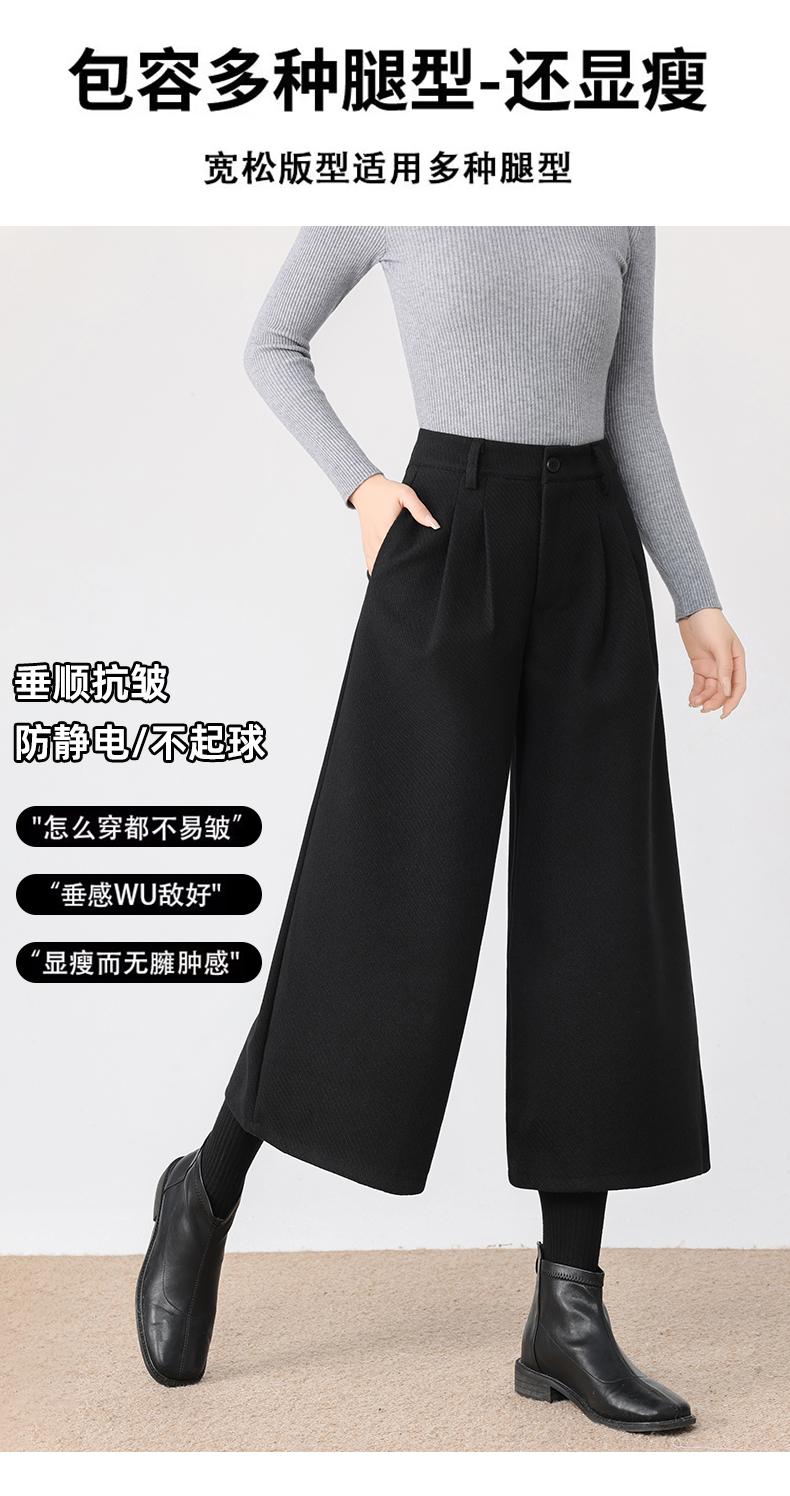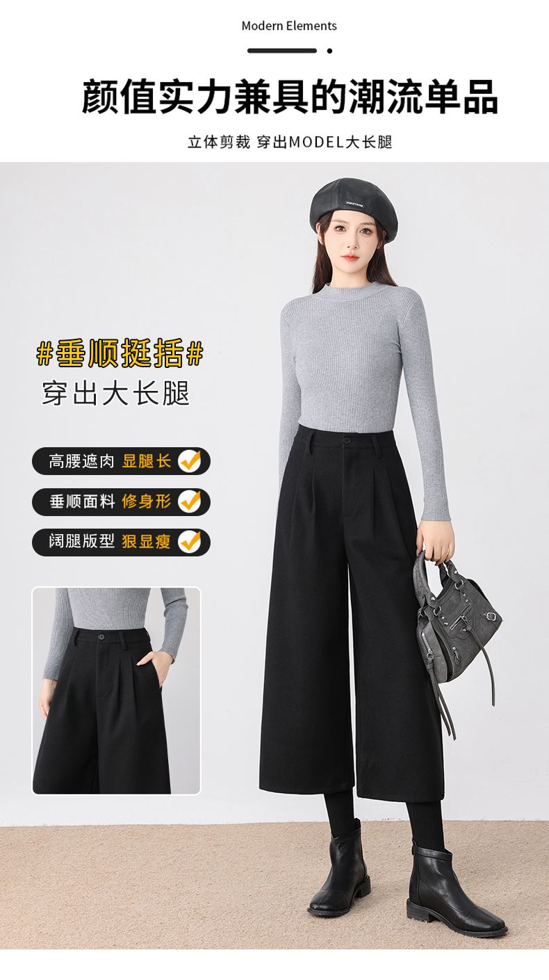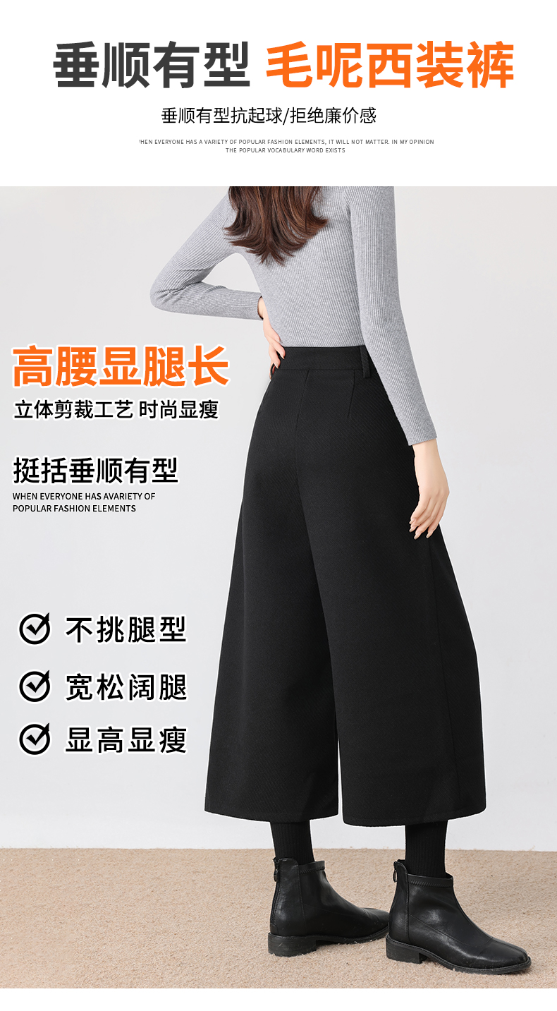 秋冬新款软糯毛呢阔腿裤高腰七分休闲裤高端斜纹毛呢靴裤百搭女裤